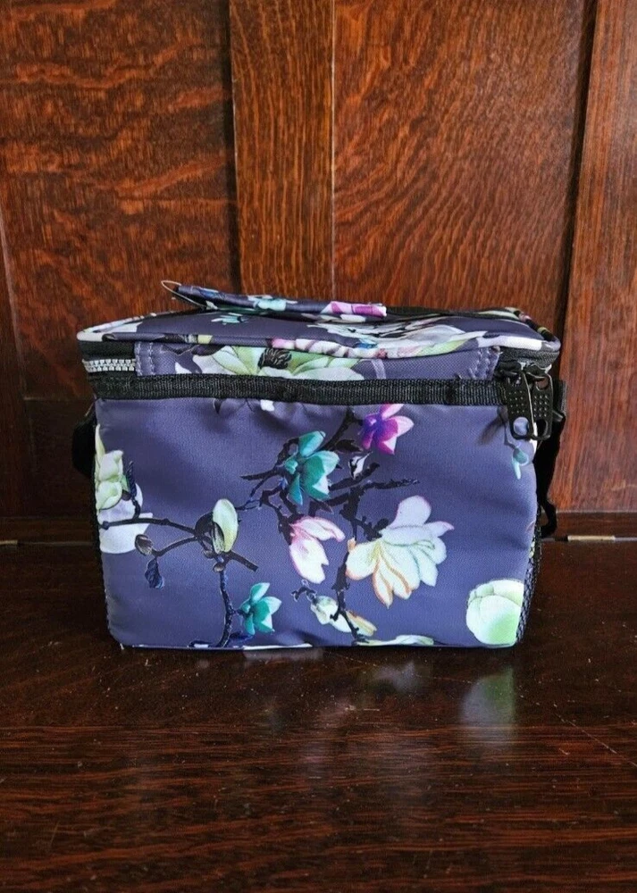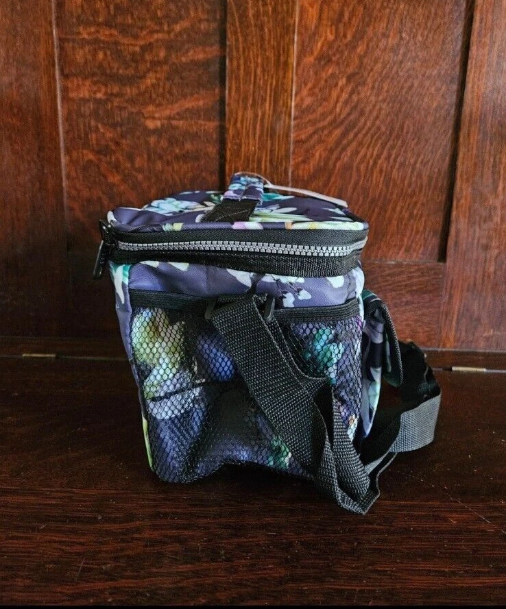 Brand new Opux classic insulated lunch box with pouches. It is 10" x 7" x 7.75" and made of polyester. It is said to hold up to 14 cans of soda in it.