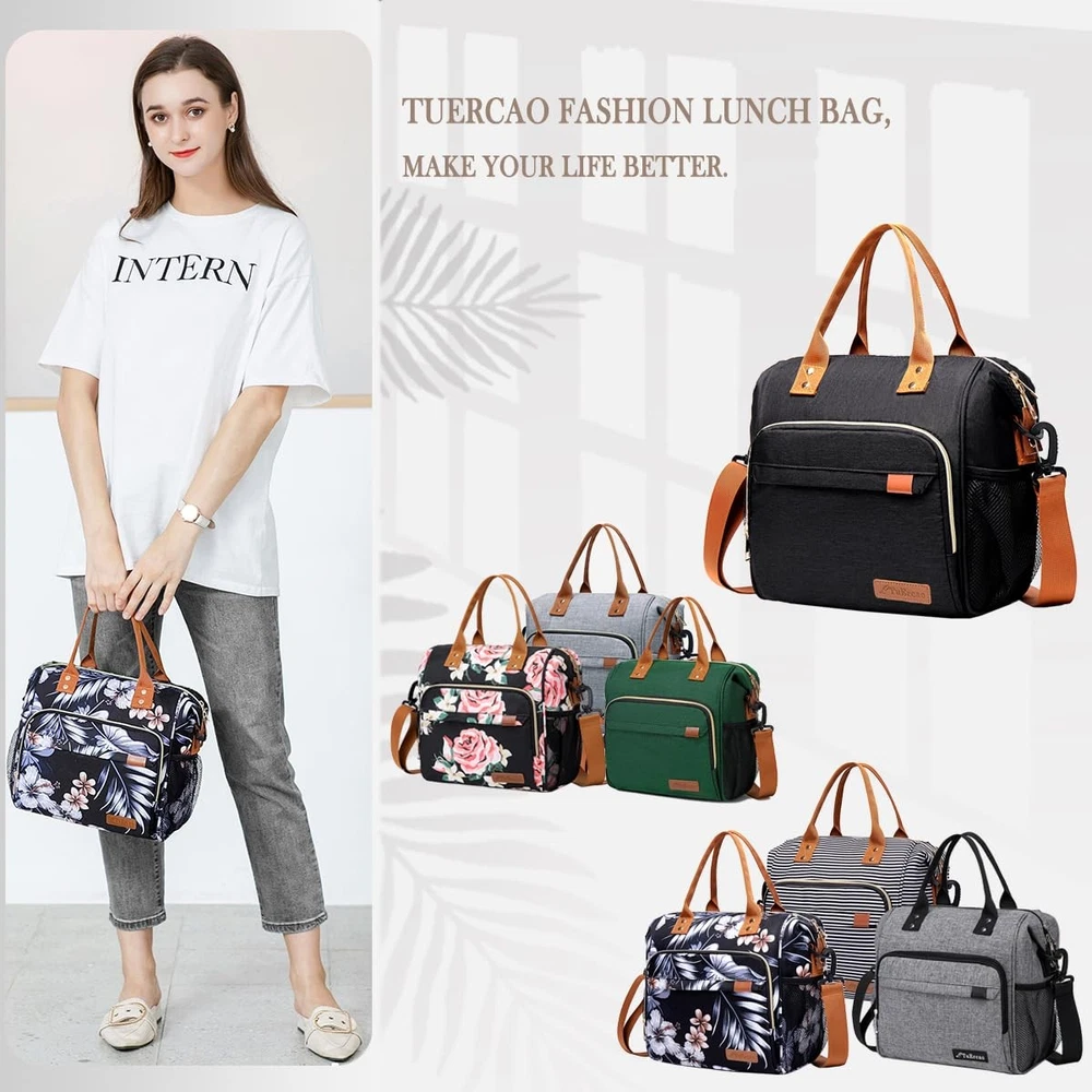 MULTIPLE POCKETS: TuErcao insulated lunch bag: 1, Features one main zippered compartment to keep your food and fruits warm or fresh. 2, The front zipper pocket great for your headphones, data cable. 3, The velcro pocket suitable for holding cutlery or your snacks. 4, The back privacy zippered pocket is for your necessities like keys, credit cards, and small change. 5, Two mesh pockets are for drinks, beer, cola, water bottles, shoulder strap or tissues LEAKPROOF & THERMAL INSULATED: TuErcao reusable lunch bags are equipped with waterproof ethylene vinyl acetate lining, which is soft, leakproof, and easy to clean. Padded with 6mm EPE foam and 900d polyester & composite tarpaulin outer fabric will keep your food fresh or warm when you're on the go DIMENSIONS & CAPACITY: TuErcao lunch bag dimensions are 10.25" x 6.3" x 10.5" (L x W x H). The main compartment has large capacity and can fit 16 cans 330ml colas. It can hold all of your food like sandwiches, salad, snacks, drinks, and fruits for the entire day PORTABLE & CONVENIENCE: TuErcao insulated lunch box features one reinforced handle on top for carrying as a handbag or tote bag. And comes with a detachable & adjustable shoulder strap which can be adjusted from 15" to 27" for carrying as a shoulder bag or crossbody bag DURABLE MATERIALS: Premium reinforced metal dual zippers, secure zipper closure, and sturdy buckle ensure smooth open and maximum durability. Our Insulated lunch box follows a strict set of specifications and quality standards WIDE USAGE: This lunch bag can use as a cooler bag, small ice chest, tote bag, work bag, travel bag, picnic bag, beach bag, sundry bag, food delivery bag, reusable grocery bags, reusable shopping bags. This insulated lunch tote is perfect for a family time, house warming, birthday party, picnic and more