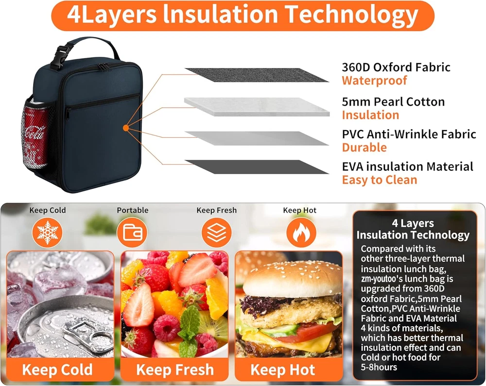 This lunch bag is a game-changer! It's lightweight yet spacious, easily fitting meals and snacks while keeping everything fresh. Perfect for work or outings, the insulation works great, and the size is ideal for one person. Love how durable and easy to carry it is—definitely worth it!