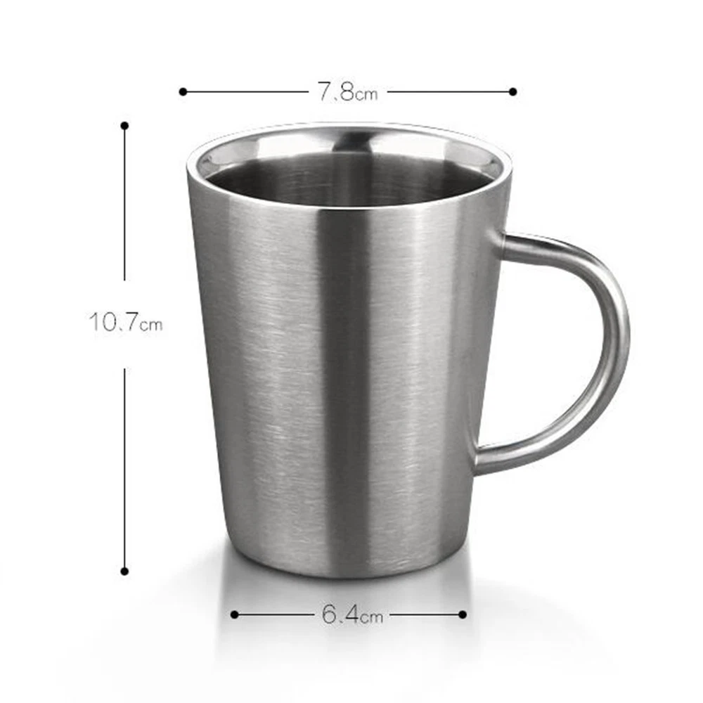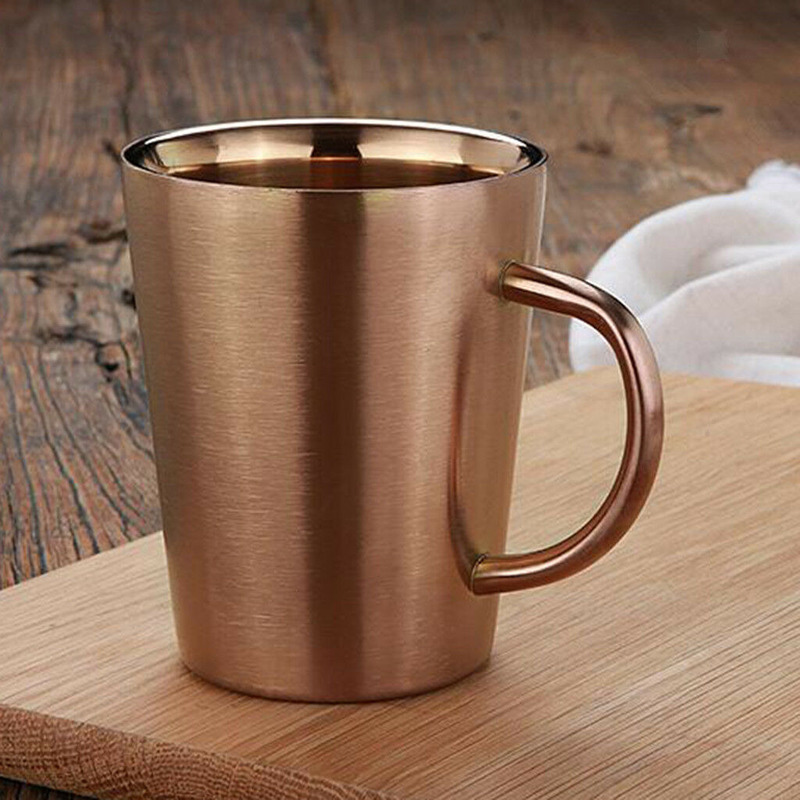 Creative Coffee Mug Stainless Steel Tumbler Double Wall Insulated Water Cup Description: Comfortable grip handle. Double wall insulated durable stainless steel coffee cold drink juice mug. Smooth surface design make the mug do not hurt your hand in accident.non-slip bottom,simple and fashion. Perfect for travel or camping, this lightweight stainless steel mug has many uses. Also can be used as coffee or tea cup for home office. It is a great personalized gift for you and your friends. Specification: Material: Stainless Steel Color: as picture show Size: open diametre Approx.7.8cm/3.07inch Bottom Diametre Approx.6.4cm/2.52inch Height Approx.10.7cm/4.21inch Package Includes: 1 Piece Mug Note: Pls allow an error of 1-3mm due to the difference of manual measurement. Shipping Policy .If this is your first deal with us or buying for an item which needs international shipping, we suggest you review our shipping terms in descriptions. International shipping usually takes longer time than domestic, since it?s based on shipping service provider and both countries Customs.Estimated delivery time varies by destination but usually take 20-30 business days(excluding holidays and weekends),or longer for certain countries. Payment Policy Payment must be received within 5 days of the auction close. We reserve the right to cancel the transaction and relist the item if payment has not been received within this time frame. Feedback Thank you for your purchase! If you are happy with items, please leave us positive feedback with five star. We would highly appreciate your kindly & encouraging approval. Leaving Negative feedback or Neutral Feedback is never a good way to resolve problem . If any questions or concern with your order, please us before you leaving Negative/Neutral feedback or opening disputes. We will offer help to resolve your problems as fast as possible .