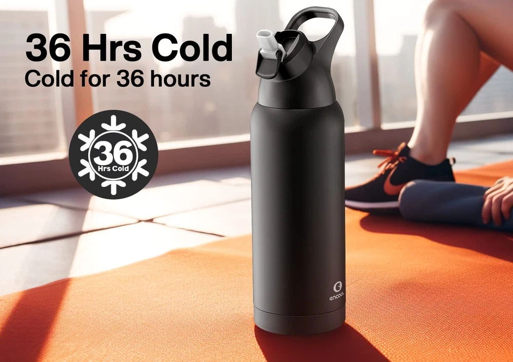 36 Hours Cold, No Sweat- Keep your beverages icy COLD for up to 36 hours with our stainless steel water bottle. Double-wall vacuum insulation, no sweat Leak-proof Tritan Straw Lid - With our extra-long straw that reaches the bottom of the bottle, enjoy every last drop of your beverage. Straw cap, keep the spout clean. NOT for hot or carbonated drinks Easy to Drink - With 150° drinking design, providing a comfortable grip and effortless sipping experience. The built-in carry loop enables you to carry it with ease 18/8 Food-Stainless Steel - BPA and phthalate-free. coating is more resistant to scratches. It can float in a pool, satisfy your thirst while you swim. Wide mouth, easy to clean and fill Easy to Grip- Non-slip silicone base is scratch-resistant and noise-free. Slim line, easy to grip and use