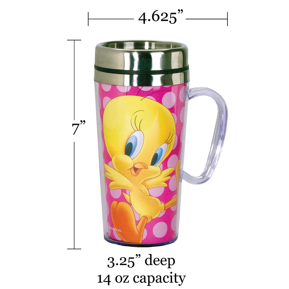 Whether you’re running errands or putting in a solid 8 at the office, you’ll need a strong cup of joe to help stay alert and oriented! This cute mug from is perfect for everyday use. Keep your favorite drink as warm or cool as you desire with unique insulation. A locking stainless-steel lid and skid-plated bottom help prevent spills and leaks when you’re on the move. Perfect For Your Commute - insulated travel mugs are perfect for your daily drive. Whether you’re headed on a road trip, a day at the office, or out running errands you can keep your favorite beverage handy on the go! Locking Lid - A secure locking lid with a skid-resistant bottom helps to prevent leaks and spills when you’re out on the road. mugs fit in most vehicle cup holders. Measurements - Each insulated travel mug stands 7” tall and holds 14 ounces of liquid. Mugs are microwave and dishwasher safe. Mugs with foil are not safe for the dishwasher or microwave. Darling Designs - insulated travel mugs come in a variety of colorful designs to choose from. Everything from motivational quotes to funny sentiments, your favorite characters and everything in between! Great Gifts - Whether you’re treating yourself or someone else, a mug makes a great stocking stuffer, secret Santa or a just because gift!