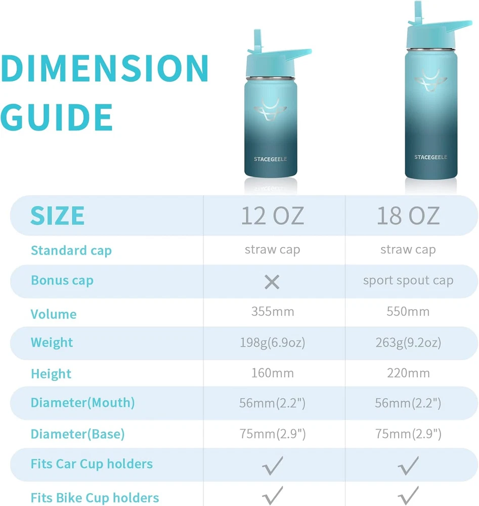 Store New Arrivals Add to Favorite View Feedback Contact Insulated Vacuum Water Bottle for Kids with Straw Lid Stainless Steel Flask Thermos for Boys and Girls Leak Proof Lightweight Eco Friendly 18Oz(550Ml), Hush Description Capacity 550 Milliliters Number of Items 1 Number of pieces 1 Country of Origin China Is Oven Safe No Theme Food With Lid Yes Is Microwaveable No Batteries required No Product Dimensions 3.1"W x 8.2"H Material Stainless Steel Age Range (Description) Kid Included Components Straw Brush, Straw Item Weight 9.3 ounces Special Feature Lightweight Color Hush Cap Type Straw Cap Recommended Uses For Product Water Base Diameter 75 Millimeters Product Care Instructions Hand Wash Only Size 18.6 Ounces 【18/8 FOOD GRADE STAINLESS STEEL】 double walled and vacuum insulated, which keeps your favorite beverage hot at least for 8 hours or cold for 18 hours, Tips:Not for use with very hot liquids, pressure problem will causing leaks or spills . 【WIDE MOUTH WITH ECO-FRIENDILY STRAW LIDS】 Mouth is wide enough for ice cubes and easy cleaning, Also each STACEGEELE insulated bottle comes with BPA FREE straw lid ,and each straw lid with soft silicon pad, perfect for kids’ drinking habits, make your kids drink happily. 【NEVER SWEAT】Double walled design stainless steel vacuum insulation and powder coated bottle body make sure it never sweat and 100% nontoxic and safe. 【SPECIAL GIFTS】When you buy 1 STACEGEELE insulated bottles , you could get 1pc transparent straw, 1pc colorful straw ,1set of sticker and 1pc straw brush as gifts . Product Description ABOUT US We offer the best prices around on high quality products. Our E-store includes media such as books, movies, music and games while offering electronics, toys, sporting apparel, clothing, tools, general home, garden items and more. SHIPPING We are always working hard to ensure your package arrives as soon as possible. Please understand that some factors like weather, high postal traffic, and the performance of shipping companies are outside of our control. We offer free shipping to the lower 48 states and ship within 2 business days of payment, usually sooner. We do not accept P.O. Boxes. Please provide a physical address. For shipping outside of the continental USA, we only use eBay's Global Shipping Program.The item is shipped to KY and then sent to the rest of the world. International customers are responsible for all duties and taxes. Continue to check out in order to calculate costs for shipping the item to your country. Messages regarding eBay's Global Shipping Program MUST be directed at eBay EXCLUSIVELY. RETURNS We offer a 30-Day Return Policy on items which you are not completely satisfied with. You have the option for a full-refund or an exchange of the item. No returns are available on items shipped outside of the USA. PAYMENT We accept PayPal. CONTACT US This page content is yet to come Please ad us to your favorite seller and visit again later Thank You CUSTOMER SATISFACTION We try our very best to make sure every customer is completely satisfied. If there's a problem, message us! We're happy to help. WE ACCEPT Copyright © 2021 AutoDS. | All Rights Reserved