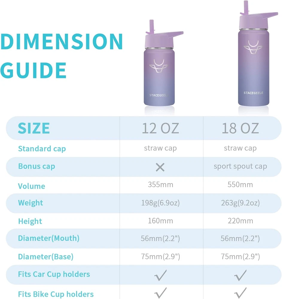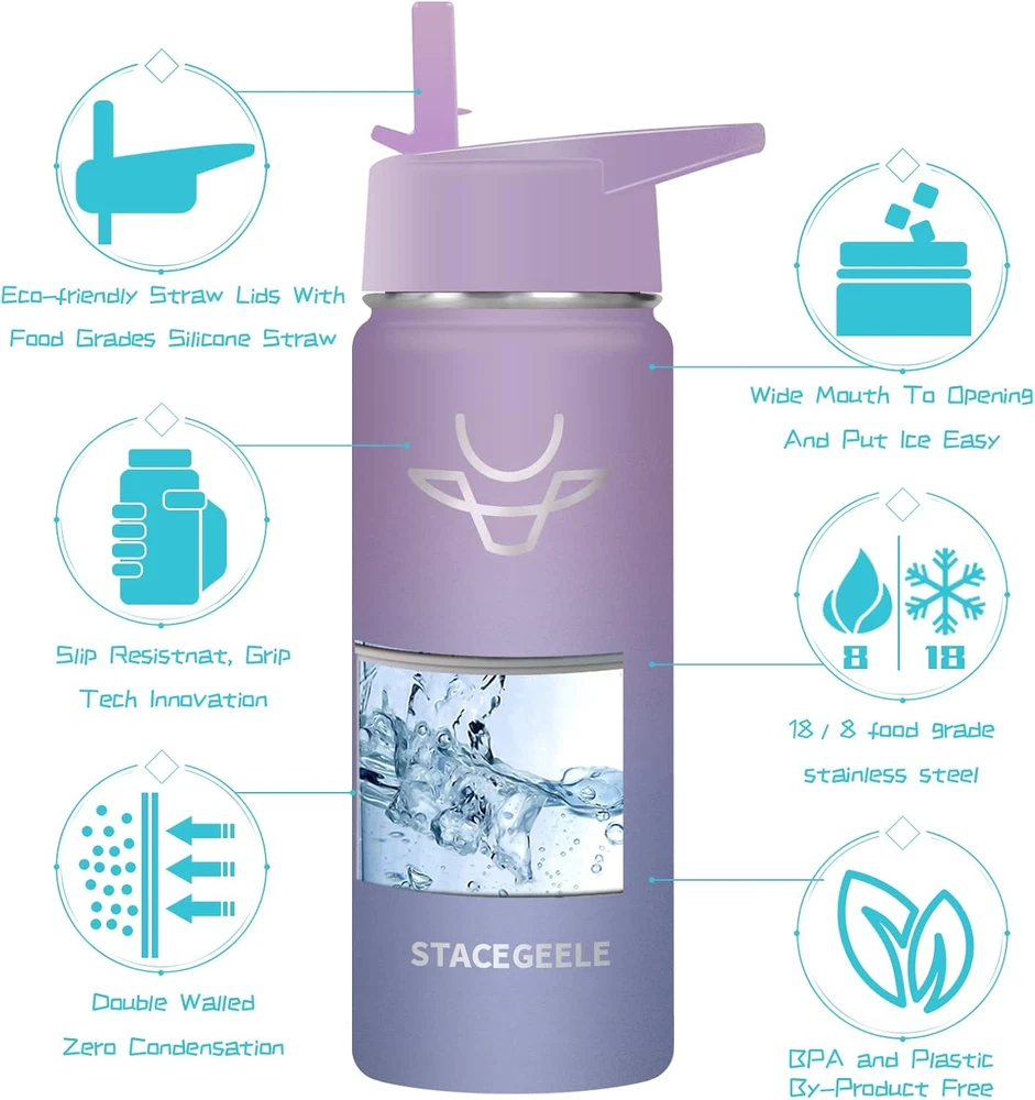 Store New Arrivals Add to Favorite View Feedback Contact Insulated Vacuum Water Bottle for Kids with Straw Lid Stainless Steel Flask Thermos for Boys and Girls Leak Proof Lightweight Eco Friendly 18Oz(550Ml),Lavender Description Item model number FD-MS-230223-333 Capacity 550 Milliliters Number of Items 1 Number of pieces 1 Country of Origin China Theme Food With Lid Yes Is Microwaveable No Cap Type Straw Cap Product Dimensions 3.15"W x 8.27"H Material Stainless Steel Age Range (Description) Kid Included Components Straw Brush, Straw Is Dishwasher Safe Yes Item Weight 9.3 ounces Special Feature Lightweight Color Lavender Batteries required No Recommended Uses For Product Water Base Diameter 2.9 Inches Product Care Instructions Hand Wash Only Size 18.6 Ounces 【18/8 FOOD GRADE STAINLESS STEEL】 Double walled and vacuum insulated, which keeps your favorite beverage hot at least for 8 hours or cold for 18 hours. Tips: NOT for using with very hot liquids, pressure problem will cause leaks or spills. 【WIDE MOUTH WITH ECO-FRIENDILY STRAW LIDS】 Mouth is wide enough for ice cubes and easy cleaning. Also each STACEGEELE insulated bottle comes with BPA FREE straw lid, and each straw mouth has a bite-resistant design, perfect for kids' drinking habits , make your kids drink happily. 【NEVER SWEAT】Double walled design stainless steel vacuum insulation and powder coated bottle body make sure it never sweat and 100% nontoxic and safe. 【SPECIAL GIFTS】When you buy 1 STACEGEELE insulated bottle, you could get 1pc transparent straw, 1pc colorful straw, 1set of sticker and 1pc straw brush as gifts. Product Description ABOUT US We offer the best prices around on high quality products. Our E-store includes media such as books, movies, music and games while offering electronics, toys, sporting apparel, clothing, tools, general home, garden items and more. SHIPPING We are always working hard to ensure your package arrives as soon as possible. Please understand that some factors like weather, high postal traffic, and the performance of shipping companies are outside of our control. We offer free shipping to the lower 48 states and ship within 2 business days of payment, usually sooner. We do not accept P.O. Boxes. Please provide a physical address. For shipping outside of the continental USA, we only use eBay's Global Shipping Program.The item is shipped to KY and then sent to the rest of the world. International customers are responsible for all duties and taxes. Continue to check out in order to calculate costs for shipping the item to your country. Messages regarding eBay's Global Shipping Program MUST be directed at eBay EXCLUSIVELY. RETURNS We offer a 30-Day Return Policy on items which you are not completely satisfied with. You have the option for a full-refund or an exchange of the item. No returns are available on items shipped outside of the USA. PAYMENT We accept PayPal. CONTACT US This page content is yet to come Please ad us to your favorite seller and visit again later Thank You CUSTOMER SATISFACTION We try our very best to make sure every customer is completely satisfied. If there's a problem, message us! We're happy to help. WE ACCEPT Copyright © 2021 AutoDS. | All Rights Reserved