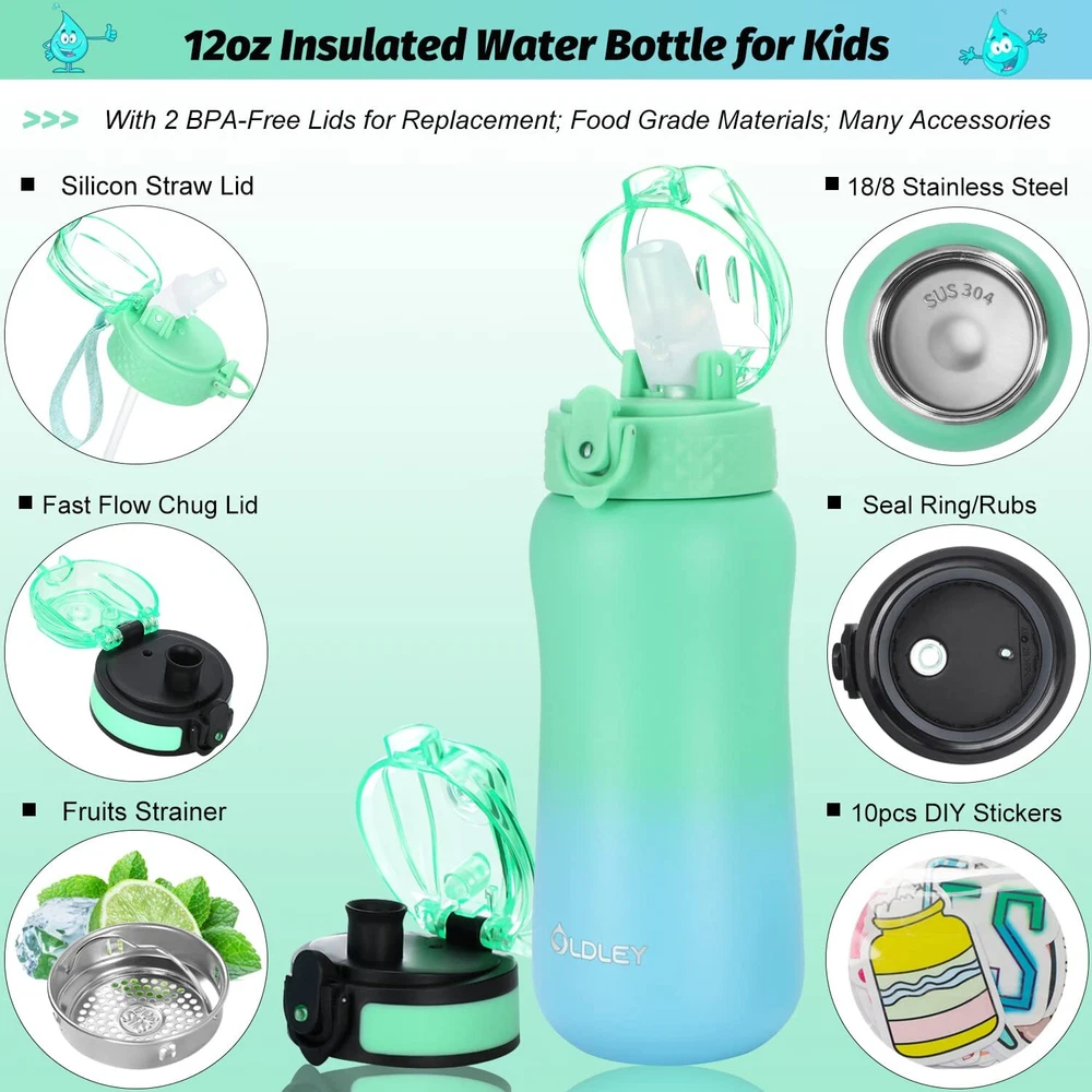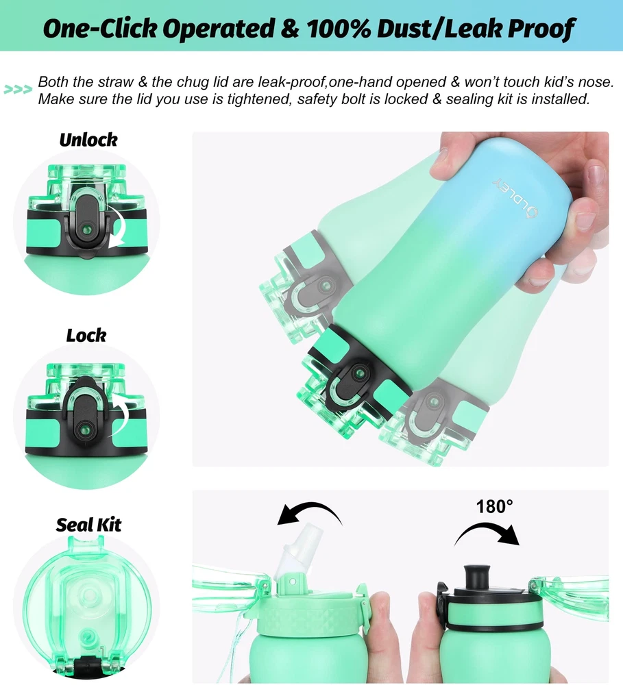 【By 】: We provide a for all the lids. Any lids can be requested for a new no matter if you do not like them or defective reason. Please us through the platform if any questions, we will be at your service anytime. 【Food-Materials】Our insulated water bottle is made of 18/8 Stainless steel that is 100% non-/Rust free/Odor free/slip-resistant. Perfectly vacuum sealed with double wall insulation, our water bottle can keep beverages cold or hot for a long time. 【2 Different Lids】The bottle mouth is wide to fit ice cubes and is easy to clean. Comes with a smooth flow straw lid & a fast flow chug lid, which are dust-proof & and designed with a secure lock/seal ring, the bottle is 100% leak-proof. can simply open with hand and enjoy spill-proof sipping. 【Convenient to Carry】Unique Bottle body is designed with a small curvature for to hold. Fits with most school bag/car cup holders/bike cages, easy to take anywhere. Besides, the straw lid is designed with a nylon handle; the chug lid has a built-in finger loop attached. Perfect for school, camping, biking & so on. 【Dishwasher Safe】Our metal water bottles can be easily cleaned by hand or in a dishwasher, ensuring effortless and convenient maintenance. Please note that the lid should not be placed in the dishwasher.