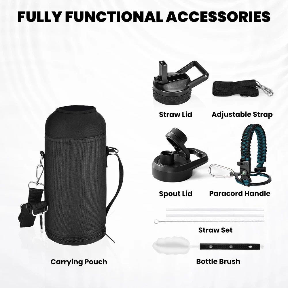 Store New Arrivals Add to Favorite View Feedback Contact Insulated Water Bottle 32 Oz, Triple Wall Vacuum Stainless Steel (Cold for 48 Description Item model number IWB-32 Warranty Description Worry-free Lifetime Warranty Capacity 32 Fluid Ounces Number of Items 1 Assembly required No Country of Origin China Is Oven Safe No Theme Sport With Lid Yes Is Microwaveable No Cap Type Straw Cap Product Dimensions 3.54"W x 8.66"H Material Stainless Steel Model Name Insulated Water Bottle Age Range (Description) Adult Is Dishwasher Safe No Item Weight 2 pounds Special Feature Sweatproof, Cold 48 Hours, Leakproof, Hot 24 Hours, Rust Resistant Color Indigo/Black Base Diameter 3.54 Inches Batteries required No Recommended Uses For Product Water, Tea, Coffee Included Components Paracord Handle, Straw Lid with 2 Straws & Straw Brush, Carrying Pouch, Bottle Brush, Spout Lids Product Care Instructions Hand Wash Only Size 32 Ounces brand Unbranded Triple Wall Insulation: Raymylo 32 oz Modern Insulated Water Bottle featuring copper plated triple wall vacuum insulation, is tested to keep your drinks icy cold for up to 48 hrs and reassuring warm 24 hrs. Get this iconic water bottle to up your fitness track, you'll fall for hydrating as every sip is absolutely cool Full Seal Leak-proof Lids: All scenario spout and straw lid with rubber seal ring ensures not a single drop leaks no matter how bumpy your journey gets.Straw lid allows for a quick refreshment without stopping you, while spout lid is great for proper hydration whenever you feel like a boost.Keeps your drinks fresh and spill-resistant on the go Iconic Paracord Handle: This insulated water bottle comes with a beautiful hand knit nylon paracord in coordinated color with the water bottle. Configured with a compass and carabiner, this paracord handle is a must-have as a full functional camping / hiking flask Made for Clean and Healthy Drinkers: Built with select 18/8 food-grade stainless steel that's Non-BPA and Unscented, making it a sustainable choice for you and the environment. This water jug has a wide mouth opening, making ice adding and washing super handy. Powder coating adds a sturdy and refined finish that won't sweat, condense, or slip in wet palms What You'll Get: We offer Continuous After-sales Service and 100% customer satisfaction against any leakage or insulation failure. You purchase contains: RAYMYLO Water Bottle, Carrying Pouch, Straw Lid with 2 Straws & Straw Brush, Spout Lid, Paracord Handle, Bottle Brush Product Description Adjustable Shoulder Strap Sling on the shoulder of any size user, hands-off carrying is ideal for hiking and camping Pouch with Zipper Opening Easily slip on and off the bottle Straw Brush Thoroughly clean the stain inside the straw, ensuring every sip is hygienic and original Cleaning Bottle Brush RAYMYLO water bottle is accessorized with a special made brush to keep the interior of the bottle clean and fresh ABOUT US We offer the best prices around on high quality products. Our E-store includes media such as books, movies, music and games while offering electronics, toys, sporting apparel, clothing, tools, general home, garden items and more. SHIPPING We are always working hard to ensure your package arrives as soon as possible. Please understand that some factors like weather, high postal traffic, and the performance of shipping companies are outside of our control. We offer free shipping to the lower 48 states and ship within 2 business days of payment, usually sooner. We do not accept P.O. Boxes. Please provide a physical address. For shipping outside of the continental USA, we only use eBay's Global Shipping Program.The item is shipped to KY and then sent to the rest of the world. International customers are responsible for all duties and taxes. Continue to check out in order to calculate costs for shipping the item to your country. Messages regarding eBay's Global Shipping Program MUST be directed at eBay EXCLUSIVELY. RETURNS We offer a 30-Day Return Policy on items which you are not completely satisfied with. You have the option for a full-refund or an exchange of the item. No returns are available on items shipped outside of the USA. PAYMENT We accept PayPal. CONTACT US This page content is yet to come Please ad us to your favorite seller and visit again later Thank You CUSTOMER SATISFACTION We try our very best to make sure every customer is completely satisfied. If there's a problem, message us! We're happy to help. WE ACCEPT Copyright © 2021 AutoDS. | All Rights Reserved