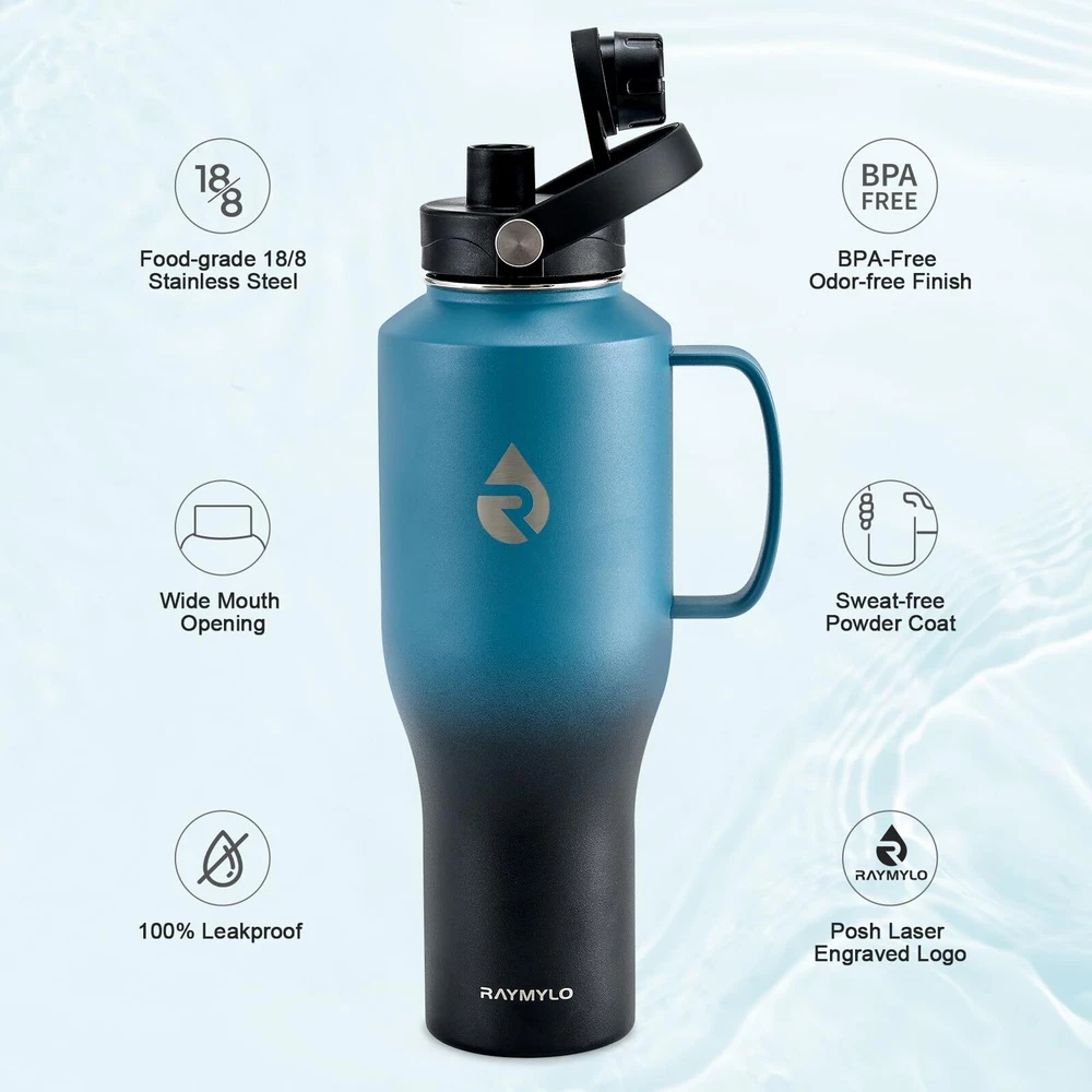 Brand: RAYMYLO Weight: 2.09 Pounds UPC: Does not apply Package Dimensions LxWxH: 13.74x5.16x4.88 Inches Size: 40 oz gtin13: Does not apply Type: Does not apply Color: Ombre: Indigo/Black