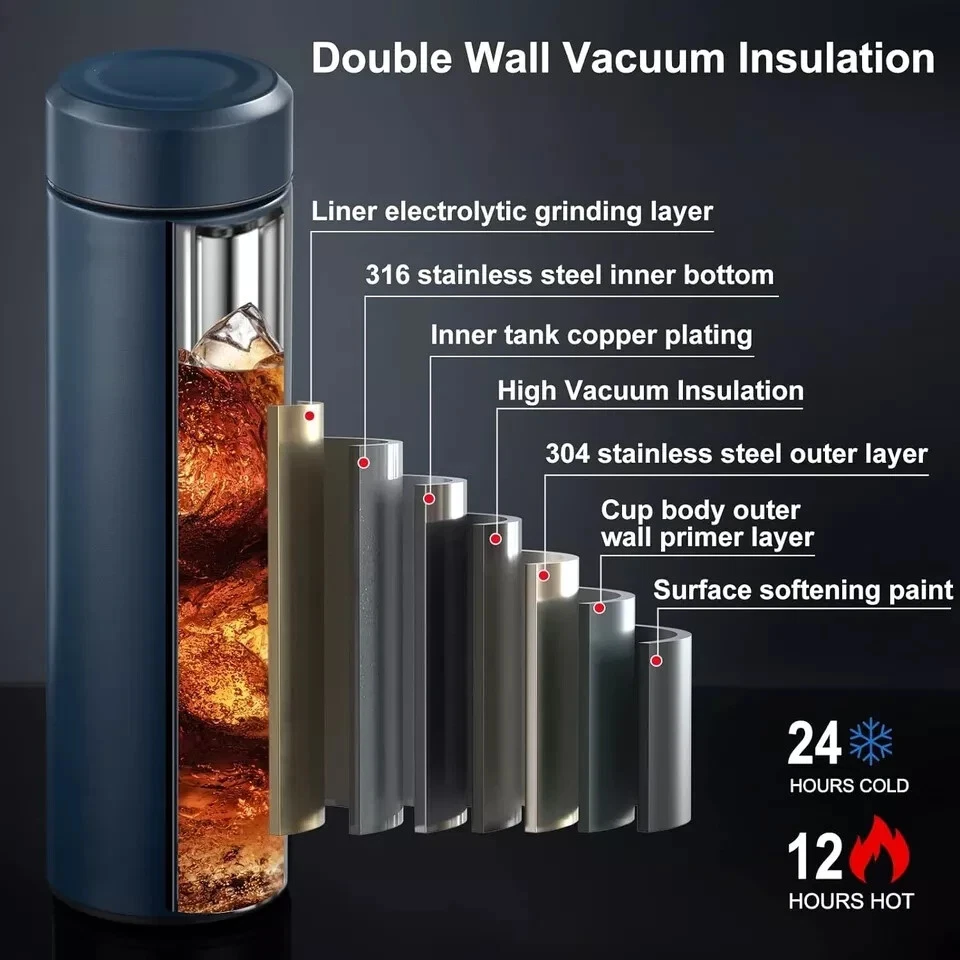 18/8 Stainless Steel Material: The insulated water bottle is made of food-grade stainless steel material, which is resistant to oxidation and corrosion, and will not have a metallic smell or rust. 100% safe for everyday use. Double Wall Vacuum Insulated: The water bottle is double walled with a premium coating on the outside of the inner wall for high performance insulation, keeping liquids hot for up to 12 hours and cold for up to 24 hours. IPX7 Waterproof: The water bottle reaches IPX7 waterproof level, which can be washed with confidence. The surface design of the water bottle is simple, the material is smooth, and it is very convenient to clean. Sealed and leak-proof: The lid of the water bottle contains a food-grade silicone ring, which is well-sealed and does not leak when shaken or inverted. Insulated water bottle is perfect for everyday use, running, hiking, camping and more.