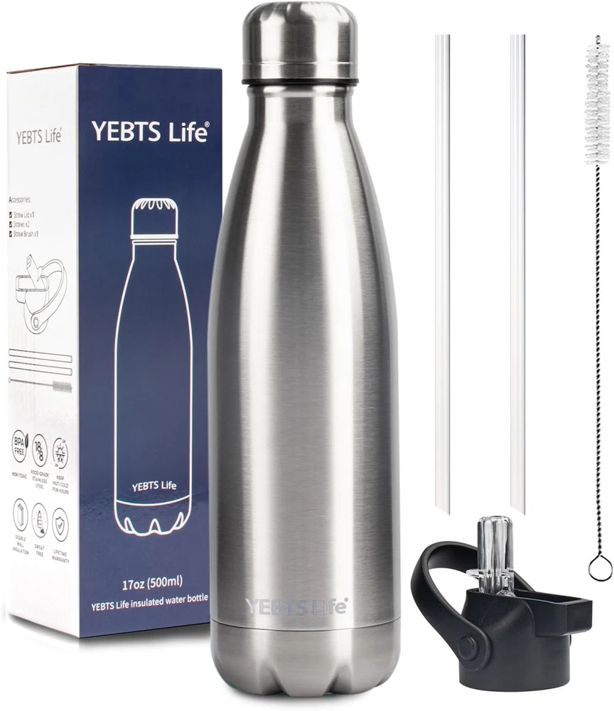 Insulated Water Bottle,17Oz Stainless Steel Water Bottles with Straw Lid,Metal Title: Cola-Style Insulated Water Bottle | Dual Lid System | 9/12/17oz | Kids & Adults | Stainless Steel Vacuum Flask Description: Meet the YEBTS life Premium Insulated Water Bottle! Featuring a unique cola-bottle design and dual lid system, this 18/8 food-grade stainless steel bottle combines style with functionality, perfect for both kids and adults. Key Features: ✓ Dual Leak-Proof Lid System - Straw Lid for Easy Sipping - Screw Lid for Hot Drinks ✓ 18/8 Food-Grade Stainless Steel ✓ Advanced Vacuum Insulation ✓ Premium Powder Coating ✓ Kid-Friendly Design ✓ BPA & Phthalate Free ✓ Non-Toxic Materials Product Specifications: • Available Sizes: 9oz, 12oz, 17oz • Cold Retention: 24 Hours • Hot Retention: 12 Hours • Material: 18/8 Stainless Steel • Finish: Powder Coated • Features: Sweat-Free Design Temperature Performance: • Cold Drinks: 24-Hour Retention • Hot Drinks: 12-Hour Retention • No Exterior Condensation • No Heat Transfer Perfect For: • School • Sports Activities • Gym • Office • Travel • Camping • Climbing • Yoga • Picnics • Biking • Car Trips Compatibility: • Car Cup Holders • Bicycle Bottle Holders • Backpack Side Pockets • Children's Hands • Bike Cages Keywords: insulated water bottle, stainless steel bottle, kids water bottle, dual lid bottle, cola shaped bottle, vacuum insulated flask, straw lid bottle, leak proof water bottle, sports water bottle, children's drink bottle, powder coated bottle, temperature control bottle, bike water bottle, school water bottle, travel drink container, hot cold bottle, sweat free bottle, car friendly bottle, gym water bottle, camping flask, kid friendly bottle, stainless steel flask, vacuum sealed bottle, outdoor water bottle, cycling water bottle Age Range Description All Capacity 1.1 Pounds Number of Items 1 Color 1 Pack-Sliver Is the item dishwasher safe? No Material Type Stainless Steel Cap Type Straw Cap, Screw Cap With Lid Yes Item Dimensions W x H 2.7"W x 10.7"H Recommended Uses For Product Water Special Features Double Wall Included Components Straw Lid, Easy-Twist Screw Lid Special Feature Double Wall Is the item microwaveable? No Product Care Instructions Hand Wash Only Size 17 Ounces Shipping Fast shipping is very important for us. Our standard US shipping service is FREE. Your order will be shipped within 2-3 business days upon full payment received. Your order will be delivered within 2-3 business days after the handling time. We only ship to the confirmed PayPal address. We reserve the right to cancel any order for any reason at any time. We are not responsible for undeliverable addresses. Returns and payment We offer a 30 days return policy from checkout winning date. We allow only PayPal as payment method FeedBack Your feedback very important to us, after you get your package and you are satisfied with our service please leave us positive feedback If you have any problem with your order / any questions please before leave any type of feedback For any questions, using eBay contact system Please visit our eBay store to check out other items for sale! Thank you for shopping at our store.