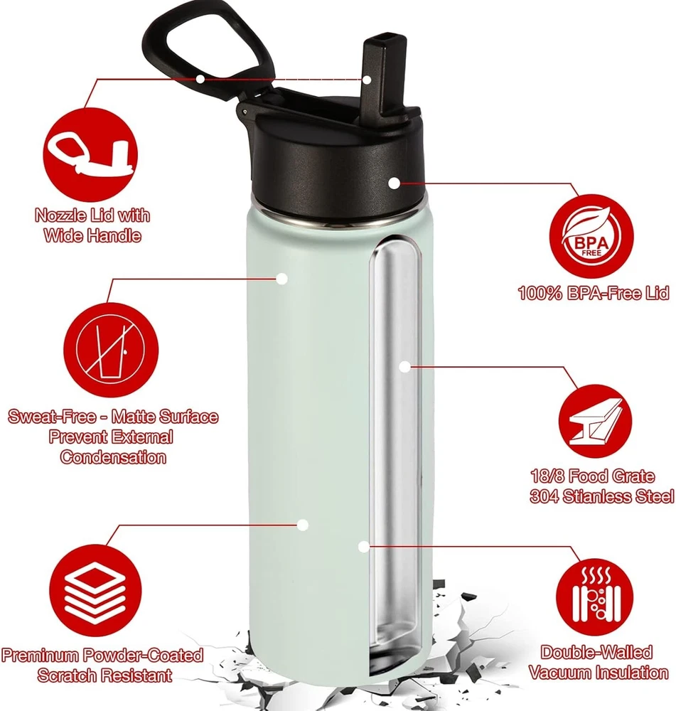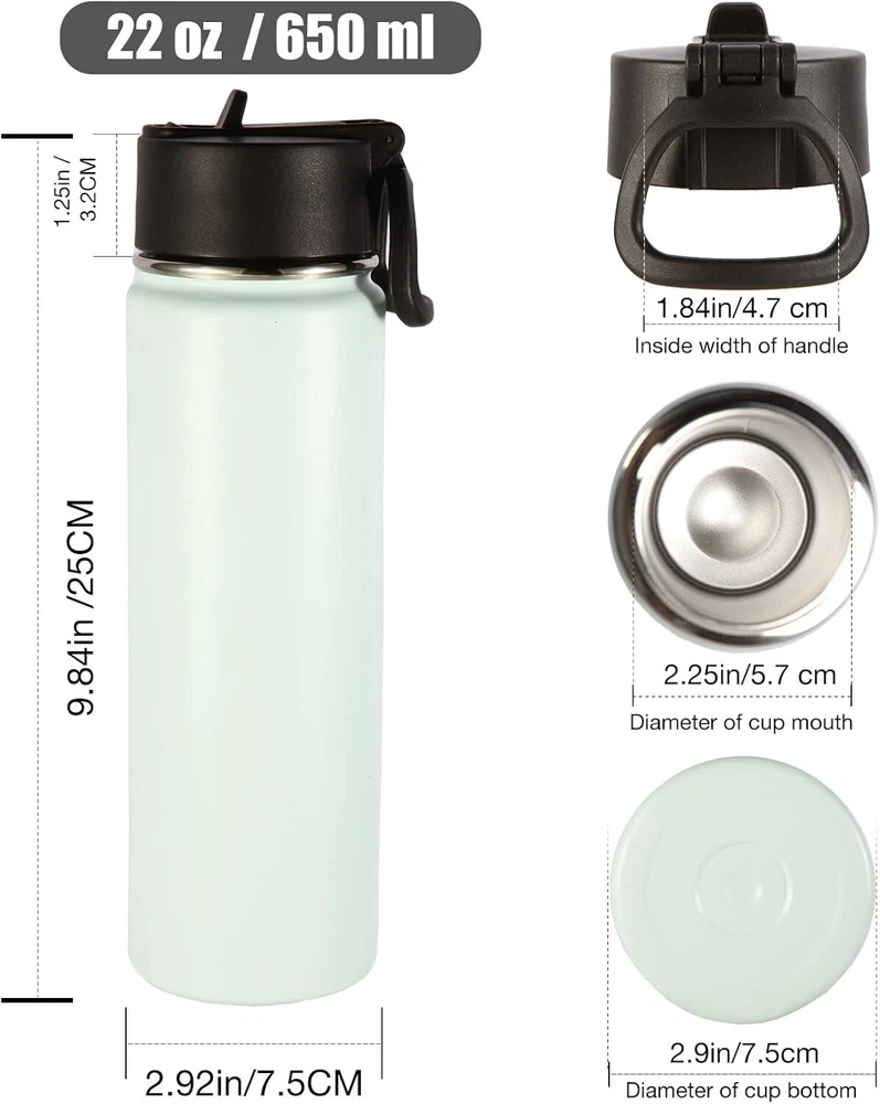 Insulated Water Bottles with Straw Bulk 8 Pack, 22 oz Stainless Steel Sports Bottle with Handle Lid,Double Wall Vacuum Metal Travel Water Thermos with Wide Mouth for School HikingFog,8 Set 【Double Wall Vacuum Insulation & Perfect Size】Designed with double-walled vacuum insulation,featuring superior insulation and a condensation-proof design. Water bottle can keep hot for 12 hours and keep cold for 18 hours,allowing you to enjoy your favorite flavor in the long cups fit on the car & bike cup holder and inside the backpack - for your hiking,biking,beach,camping and fitness! 【Lid with Wide Handle】After market research,we redesigned this cup thickened version of the waterproof rubber ring is used to make the seal more lids handle have been to hold three fingers,relieve finger pressure while straw is made of soft PP material to ensure that it will not break after long-term use. 【Multi-Pack & Multi-Color Options】We provide a variety of fashion color for your the bottle has no logo,it is perfect for laser the same time,we provide discount packages of 2 packs,4 packs and 8 you one purchase to meet the needs of the whole family.Perfect for that big event coming up such as grand opening,or birthday bottles can also be great party favors,A gift to your favorite client. 【Premium Material】Constructed of 18/8 food-grade stainless steel,durable and components are non-toxic,Lead Free,BPA free and environmentally friendly.Electro polished inside,highly resistant to you a clean tasting drink every time! Premium Powder coating offers a steady grip without slipping from sweaty palms and will not fade or fall off. 【Satisfaction & SATISFACTION GUARANTEE】: We are proud of the quality of our products and take responsibility for our customers' purchase there is any problem with the product you received,please contact the customer service of the store as soon as possible,and we will definitely give you a satisfactory solution.