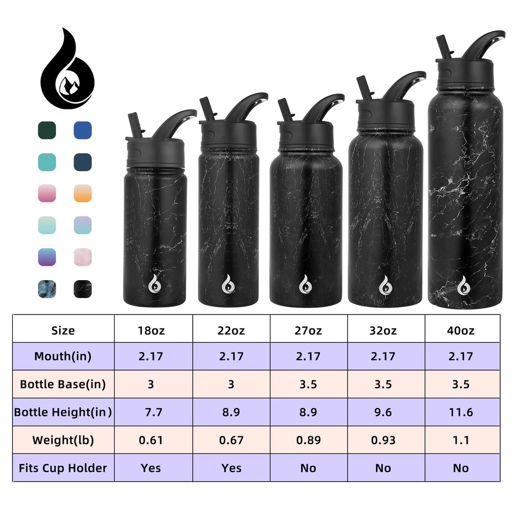 Insulated Water Bottles with Straw Lid, 40oz Large Water Bottle, Stainless Steel Metal Water Bottle with 3 Lids, Reusable Thermos Bottle, Cold & Hot Water Bottle for Sports, Gym-Midnight Double-walled vacuum insulation keeps drinks cold for up to 24 hours and hot for up to 12 hours, perfect for any activity Durable and long-lasting stainless steel construction with powder coating for added protection against wear and tear Comes with three lids, including a straw lid for easy drinking on-the-go, and is food-grade safe for healthy hydration Designed with non-sweat technology to prevent condensation and accidental wet spots, keeping your bag and tabletops clean and dry Perfect for hiking, camping, workout, or office use, this insulated water bottle with a straw is an eco-friendly alternative to plastic bottles