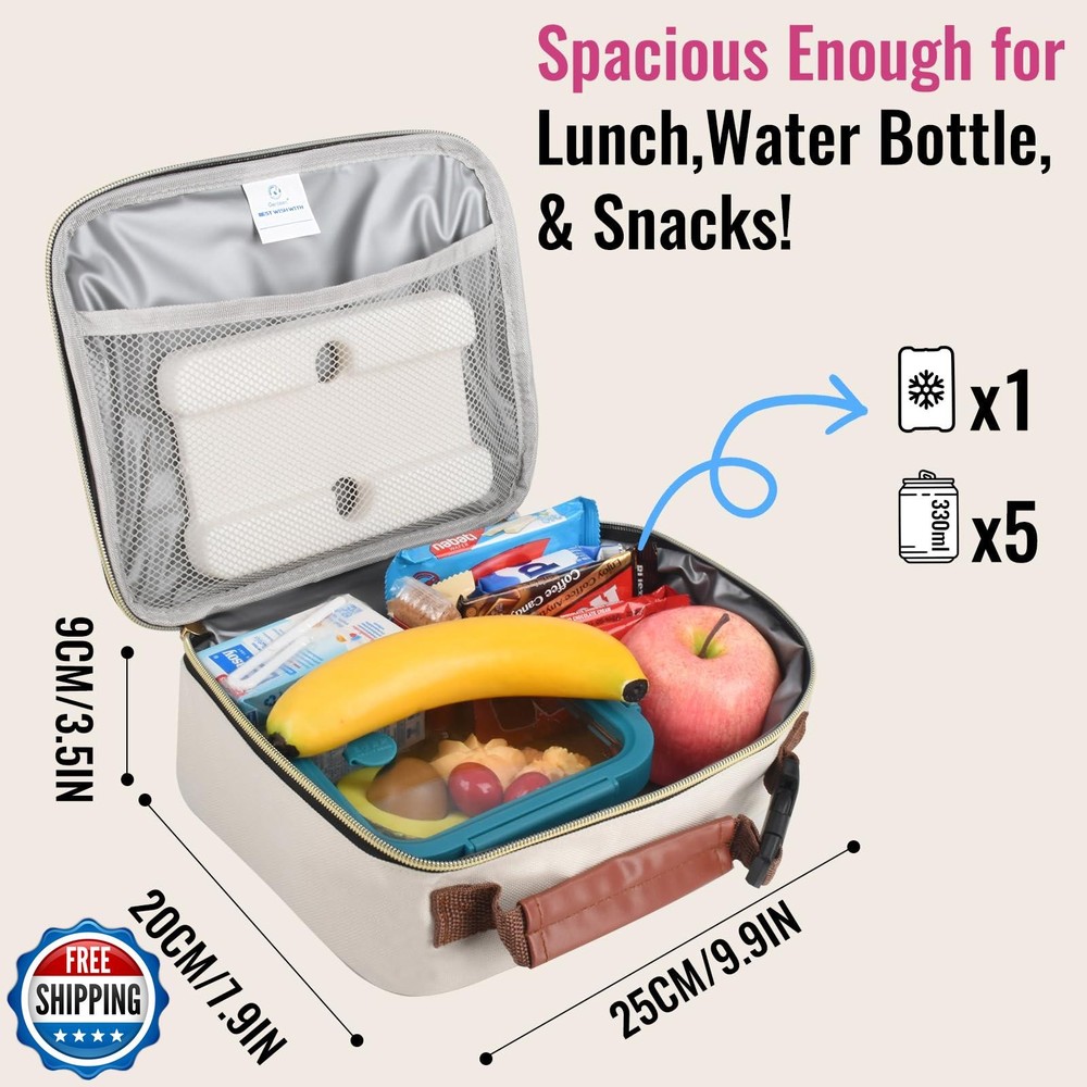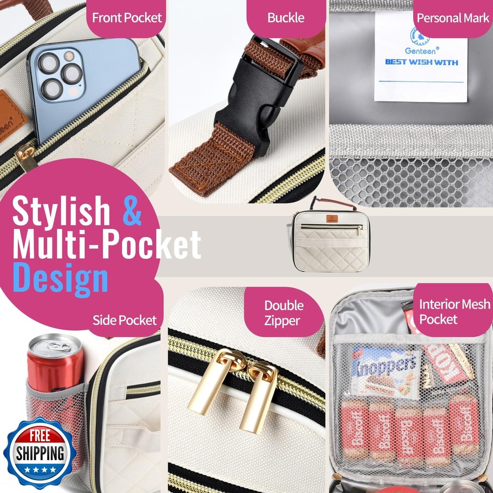 Genteen Lunch Box for Women Adults Girls - Insulated LunchBox Reusable, Zip Closure and Buckle Handle, Portable Cooler for Work, School, Travel (White) Features 【Large Capacity Lunchbox 】Lunch box dimensions: H: 3.5 x W: 7.9 x L: 9.9 inches.Spacious enough to fit 5 cans of cola, or one person’s lunch and more 【Portability & Versatility】This lunch box is lightweight and easy to carry. The lunch bag is not only suitable for carrying lunch but can also be used to store snacks, drinks, or other personal items. Perfect for work, adults, nurses, teachers, and more 【Sturdy Lunch Bag】High-quality insulation materials makes this small lunch bag kit sturdy and easy to clean. Waterproof 600D fabric, reinforced double zippers, Enhanced Double-Stitching to Prevent Aluminum Film Ripping 【Multi-Pocket Design】Lunch bag features a main pocket, side pocket, front pocket and inner net pocket. Keep your items organized and easily accessible 【Fashionable Design】 The modern exterior design features a variety of colors and styles, perfect for work and school, kids,adult, boys,girls, men, women 【Suitable for Months 36 and Above】Pack Fun with Every Meal! Ready for school, picnics, or trips—just grab, go, and giggle! (Ages 3+) Shipping Free & Fast Shipping: We offer free shipping to most of the USA with a normal delivery time of 3-7 days. However, due to the current situation, additional delivery time (up to 3 weeks) may be required for some items. Alternative Carriers: We may use alternative carriers (e.g., USPS, FedEx, UPS) to ensure your package arrives safely and on time. Due to the use of multiple carriers, we are unable to provide a tracking number automatically. Handling Time: Orders are processed and shipped within 1-2 business days of receiving cleared payment. Shipping Restrictions: Shipping to Alaska, Hawaii, Puerto Rico, Guam, and other US territories may incur shipping charges or delivery restrictions. Please contact us before ordering, or your order can be refunded/cancelled. State Restrictions: Certain items may not be shipped to California due to state regulations. Contact for Tracking Updates: If you require tracking updates or have any concerns about the delivery of your order, please feel free to contact us, and we will be happy to assist you. Return Policy 30-Day Hassle-Free Returns: If you are not completely satisfied with your purchase, you can return the item for free within 30 days of receiving it for a full refund or exchange. Easy Return Process: Contact us, and we will provide you with a prepaid return shipping label and detailed instructions. No Restocking Fee: There are no restocking fees for returns. However, the buyer is responsible for return shipping costs if the return is not due to a seller"s error. Refund Processing: Refunds will be processed within 1 business day of receiving the returned item in its original condition. Feedback Your feedback is extremely important to us. We strive to provide the best products and customer service possible. If you are satisfied with your purchase, please take a moment to leave us a positive review. If you have any concerns or issues with your order, please contact us before leaving negative feedback. We are committed to resolving any problems and ensuring your satisfaction. Contact Us If you have any questions or concerns, please feel free to reach out to our customer support team. You can contact us through the eBay messaging system. We are available Monday to Friday, 9:00 am to 5:00 pm EST, and we will do our best to respond to your inquiry within 24 hours. Thank you for supporting our small family business!