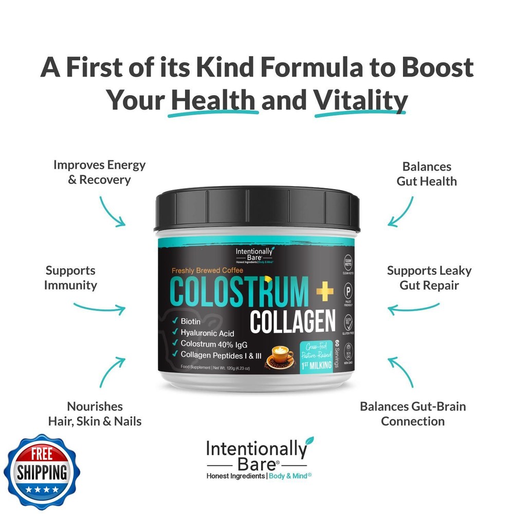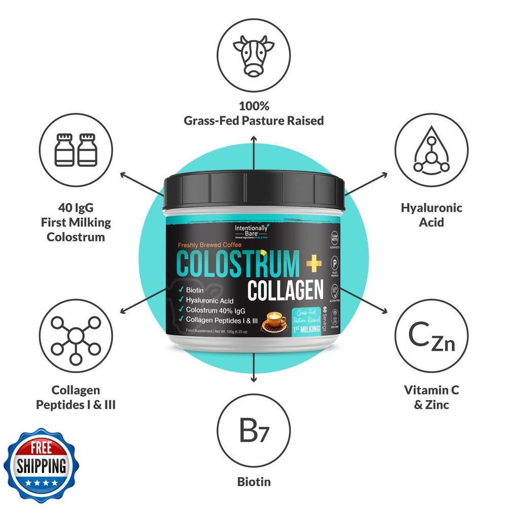 Intentionally Bare Colostrum and Collagen Powder - Colostrum Supplement with Biotin and Collagen Peptides - Colostrum Powder for Skin, Joint and Gut - Brewed Coffee Collagen Supplements 60 Servings Features GRASS-FED PASTURE-RAISED COLLAGEN PEPTIDES & COLOSTRUM - Sustainably sourced from grass-fed, pasture-raised cows for premium multi collagen protein powder and colostrum. Supports skin elasticity, joint strength, and gut health while promoting immune function. IMMUNE & DIGESTIVE WELLNESS - Colostrum helps enhance immune defense and supports digestive balance by strengthening the gut lining and improving nutrient absorption. Ideal for recovery, anti-aging, and daily vitality. COLLAGEN FOR WOMEN HEALTHY SKIN, JOINTS & HAIR - Featuring Type I & III collagen peptides powder with hyaluronic acid powder to promote youthful skin, stronger hair, and joint flexibility. Collagen brewed coffee powder that dissolves easily into any beverage for convenient daily use. SYNERGISTIC WHOLE-BODY BENEFITS - Combines gut-supporting colostrum with collagen protein powder for comprehensive wellness. Enhances digestion, boosts immune function, and revitalizes the body for improved health and beauty. RECOVERY & PERFORMANCE SUPPORT - Ideal for active lifestyles, this supplement promotes muscle maintenance, joint flexibility, and overall wellness to help you stay active and energized. SUGGESTED USE - Mix 1 scoop (2g) to 4 fl oz. of water, smoothies, or your favorite beverage. For optimal results, drink immediately after mixing. Thoroughly stir immediately until powder is well mixed. Shipping Free & Fast Shipping: We offer free shipping to most of the USA with a normal delivery time of 3-7 days. However, due to the current situation, additional delivery time (up to 3 weeks) may be required for some items. Alternative Carriers: We may use alternative carriers (e.g., USPS, FedEx, UPS) to ensure your package arrives safely and on time. Due to the use of multiple carriers, we are unable to provide a tracking number automatically. Handling Time: Orders are processed and shipped within 1-2 business days of receiving cleared payment. Shipping Restrictions: Shipping to Alaska, Hawaii, Puerto Rico, Guam, and other US territories may incur shipping charges or delivery restrictions. Please contact us before ordering, or your order can be refunded/cancelled. State Restrictions: Certain items may not be shipped to California due to state regulations. Contact for Tracking Updates: If you require tracking updates or have any concerns about the delivery of your order, please feel free to contact us, and we will be happy to assist you. Return Policy 30-Day Hassle-Free Returns: If you are not completely satisfied with your purchase, you can return the item for free within 30 days of receiving it for a full refund or exchange. Easy Return Process: Contact us, and we will provide you with a prepaid return shipping label and detailed instructions. No Restocking Fee: There are no restocking fees for returns. However, the buyer is responsible for return shipping costs if the return is not due to a seller"s error. Refund Processing: Refunds will be processed within 1 business day of receiving the returned item in its original condition. Feedback Your feedback is extremely important to us. We strive to provide the best products and customer service possible. If you are satisfied with your purchase, please take a moment to leave us a positive review. If you have any concerns or issues with your order, please contact us before leaving negative feedback. We are committed to resolving any problems and ensuring your satisfaction. Contact Us If you have any questions or concerns, please feel free to reach out to our customer support team. You can contact us through the eBay messaging system. We are available Monday to Friday, 9:00 am to 5:00 pm EST, and we will do our best to respond to your inquiry within 24 hours. Thank you for supporting our small family business!