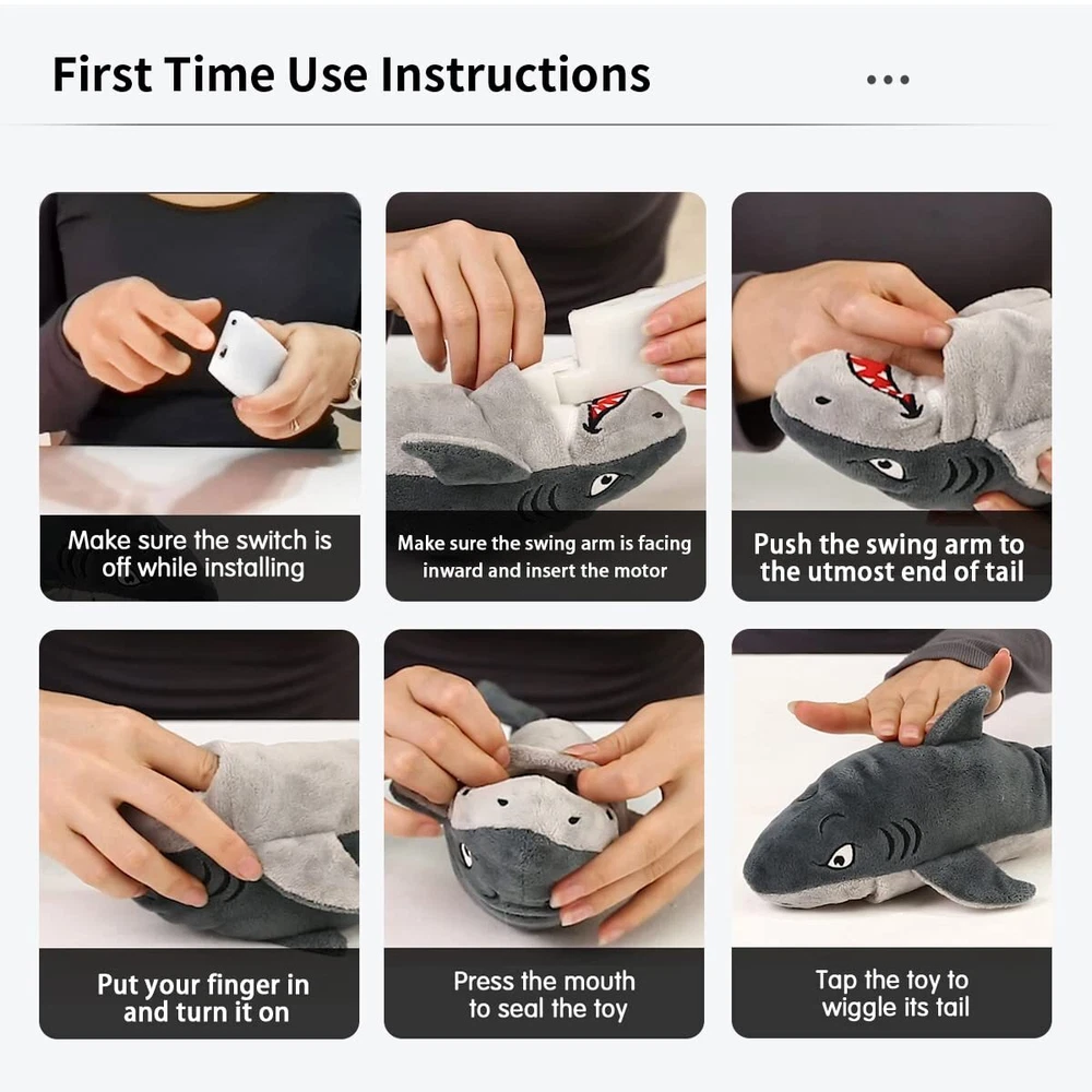 【Interactive Fun for Dogs and Puppies】The tail-wagging shark toy looks very realistic. Whenever your dog touches the toy, the automatic motion sensor activates, causing the plush shark toy to wiggle and entice your dog to chew and play. This toy is suitable for dogs of all sizes—small, medium, and large—helping to alleviate their boredom and loneliness when you're busy or away (but not recommended for dogs with extremely strong biting habits) 【Durable & Safe Materials】Goopow interactive dog toys are crafted from plush and natural cotton, ensuring safety for your dogs. The improved mechanism is designed to withstand chewing and biting, promoting teeth cleaning for your pet. Not Suitable for Aggressive Chewers 【Squeaky & Stimulating】This dog squeaky toy contains a built-in vocal bladder that produces sound when pets bite it. It's an excellent toy for stimulation and interactive training, enhancing the bond between you and your dogs and providing more enjoymen 【USB Rechargeable】This toy is rechargeable via USB, making it environmentally friendly and cost-effective by eliminating the need for battery replacements. The upgraded large-capacity battery ensures safe charging, requiring a 3-hour charge for a full day of use. A USB cable is included in the package, and the rechargeable motor can be detached for easy cleaning of the plush toy 【Easy to Use】To ensure ease of use, ensure the switch is off and facing the shark's belly during installation. Push the motor to the far end of the tail and press the mouth to seal the toy. Finally, turn on the switch and tap the toy to make its tail wiggle 【Top Quality & Fast Service】The Interactive Flopping Fish Dog Toy makes for a wonderful gift for your dogs or puppies, providing exercise and entertainment to help them burn off excess energy. If there are any issues with the toy, please us to receive a . We welcome all customers to share their feedback and user experiences
