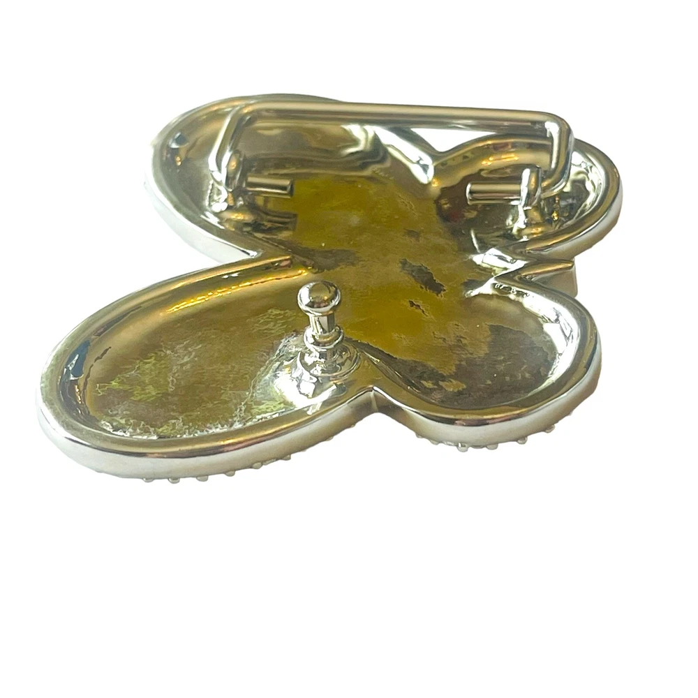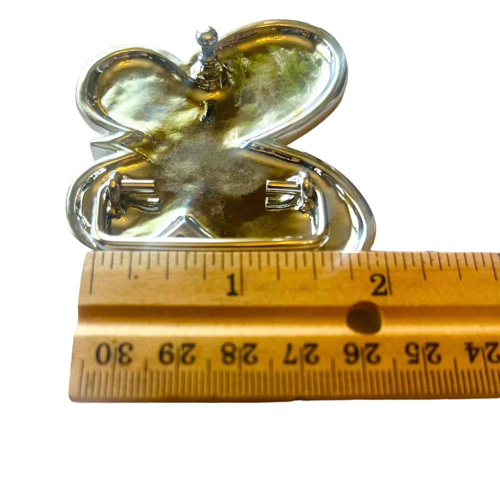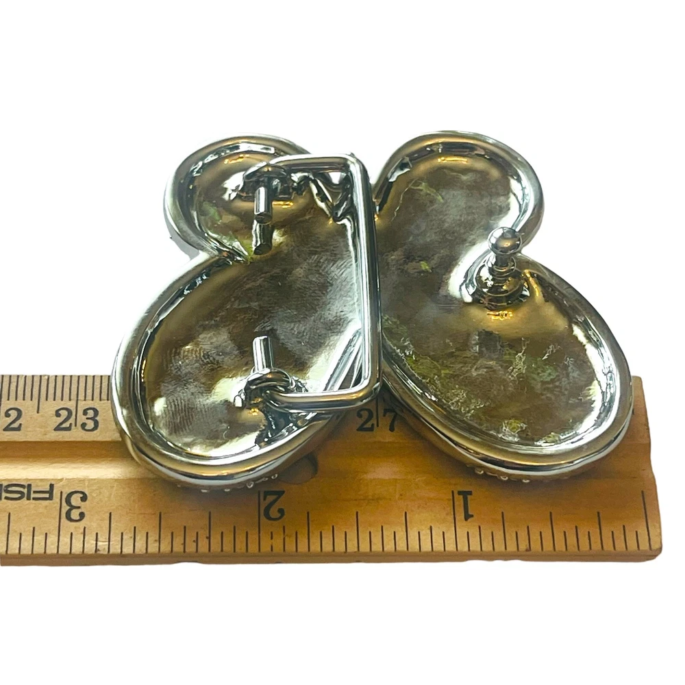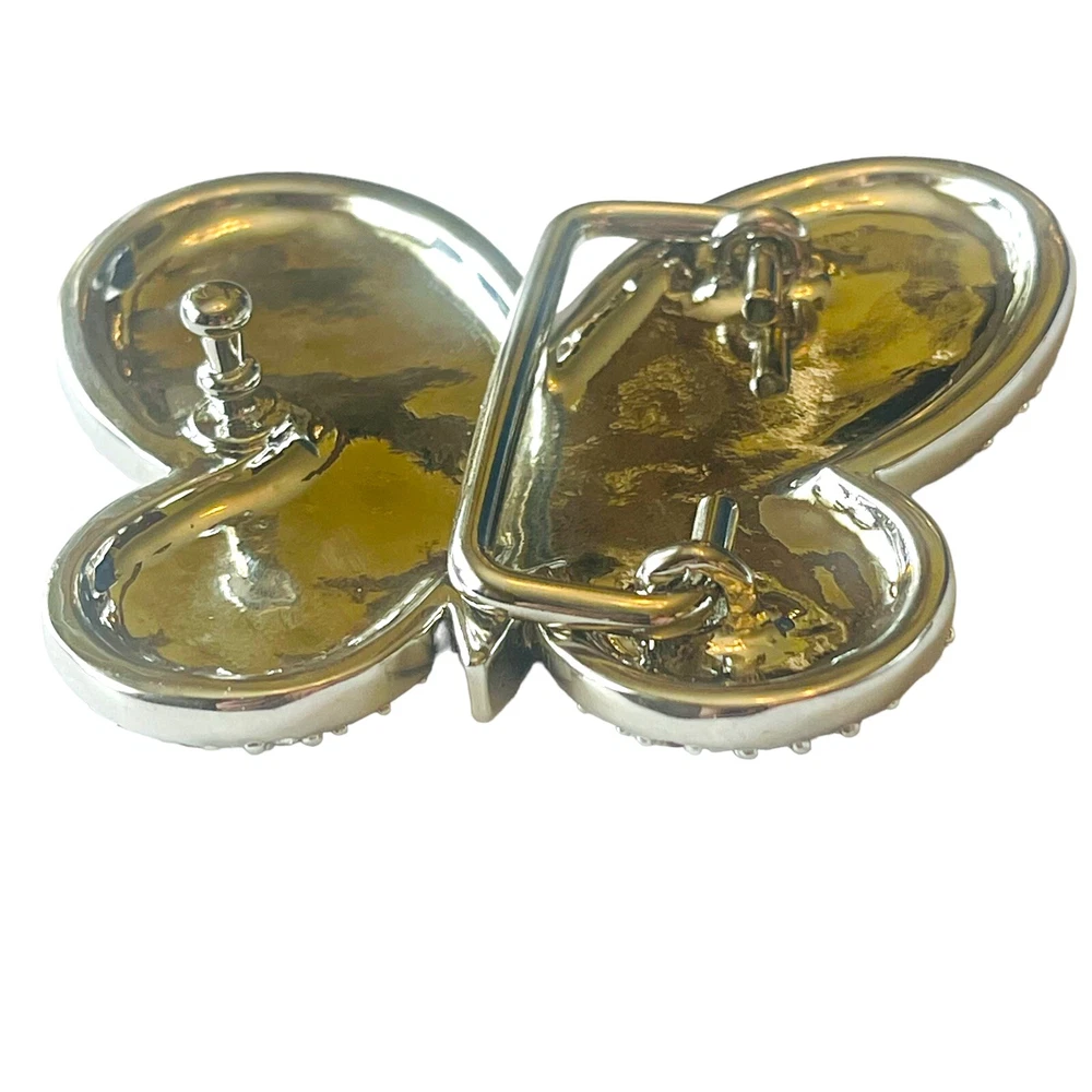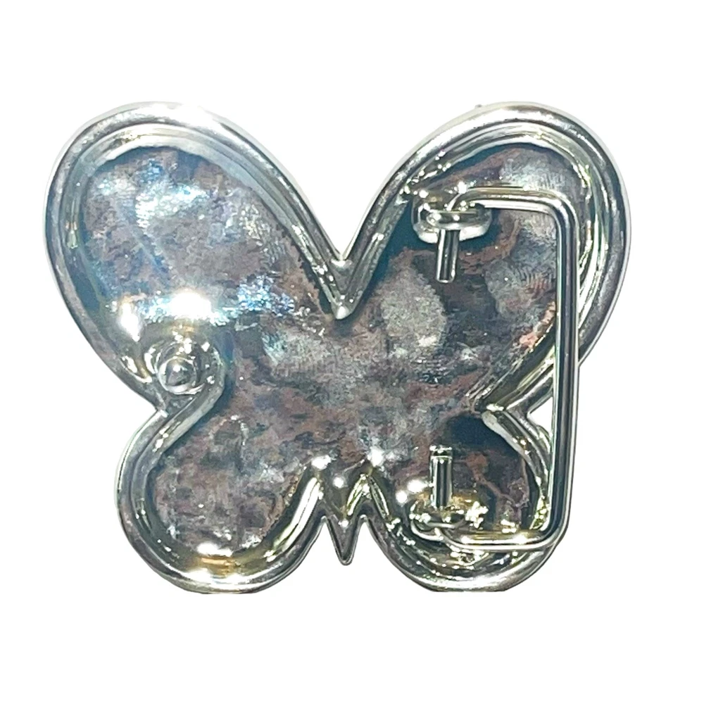 Pretty silver tone rhinestone butterfly interchangeable belt buckle. Buckle is shaped like a butterfly and features a shiny yellow center and rhinestone outlining on the wings. The buckle measures approximately 2.25 inches tall by 2.75 inches wide. Swivel hinge will accommodate a 1.5 inch belt. See photos taken with ruler for more detail on size of buckle and hinge. New, unused interchangeable belt buckle in great condition. NOTE: this listing is for the BUCKLE ONLY and a BELT IS NOT INCLUDED. See photos. Zoom for more detail and assessment of condition. Feel free to contact me with questions. I will create custom bundles & give discounts for purchases of more than one item/listing + combine shipping for extra savings. Quotes provided on request. All sales are final. Returns are not accepted; however your satisfaction is important to me. Please reach out if there is a problem with your purchase. Thanks! PassionatelyCollected I passionately collect things.....