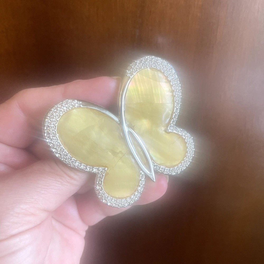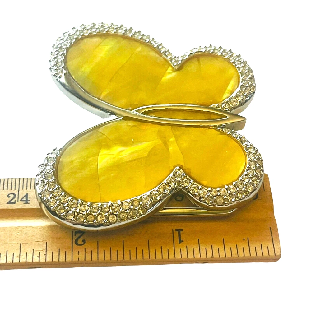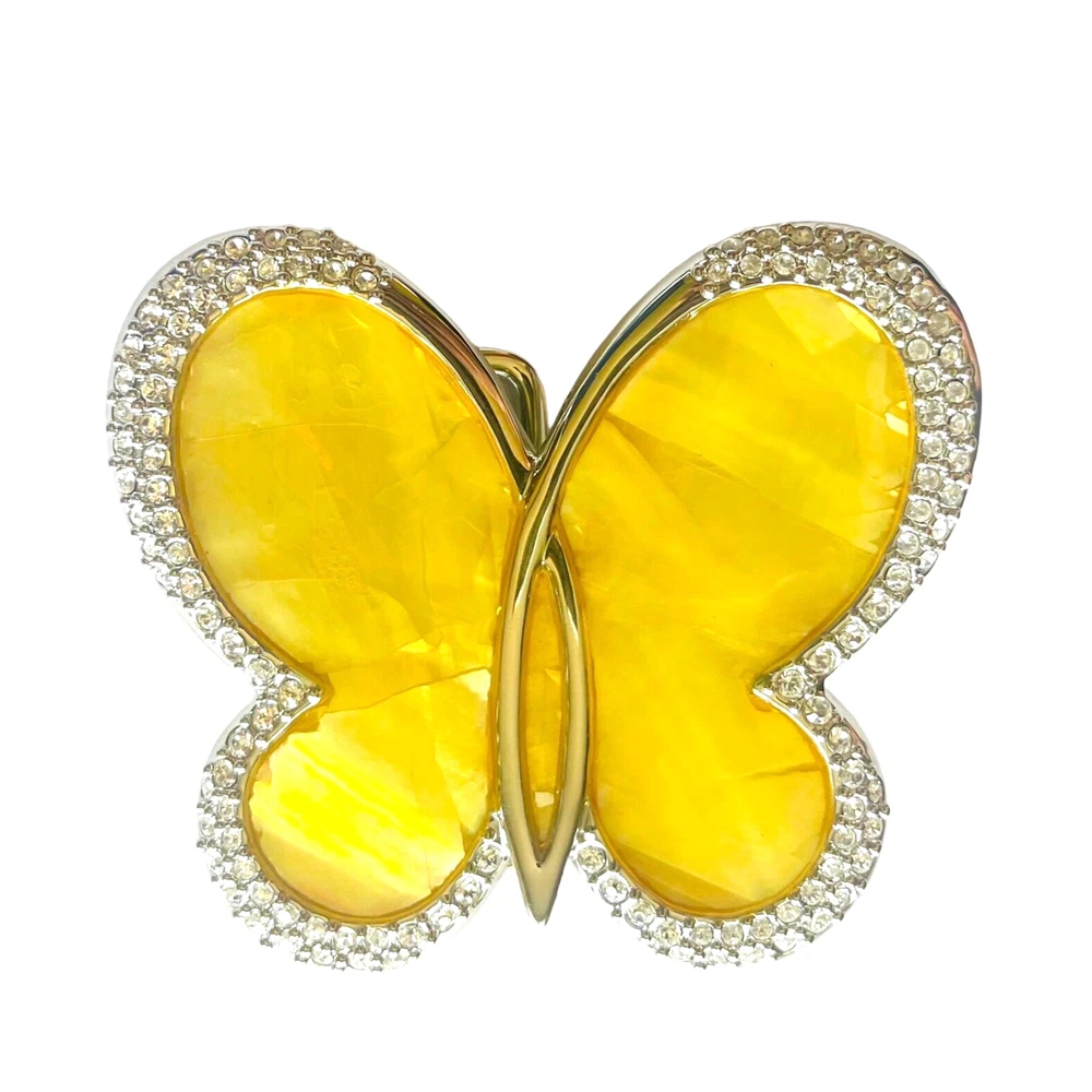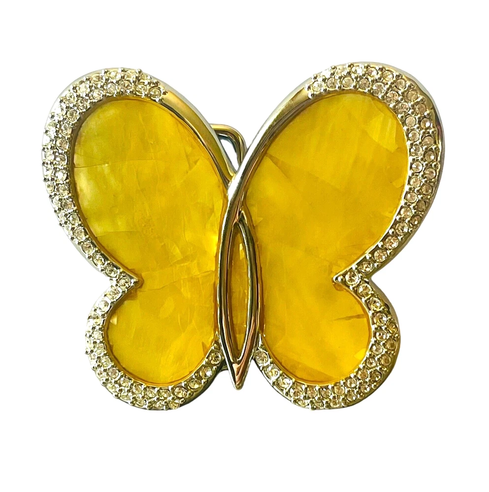 Interchangeable Belt Buckle Big Rhinestone Butterfly Silver Tone Yellow Shell