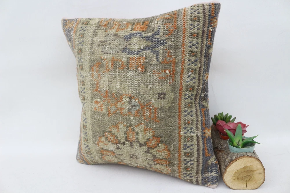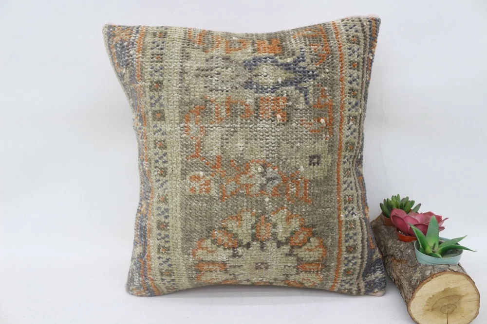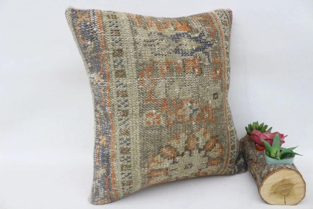 Kilim Pillow Details: All of my beautiful pillow covers or cushion cases are designed and made by me. I am making my throw pillow covers from handmade vintage rugs, Turkish rugs. Therefore, each of my vintage kilim pillowcase is one of kind. These cushions covers are piece of an art. The size of this pillow is 14 x 14 inches or 35 x 35 cm. The front side of this decorative pillow cover, cushion cover is wool on wool vintage kilim rug. The backside of this throw is high quality cotton fabric with a high quality zipper. This listing has 2 option for this handmade pillow. You can choose with insert or without insert. The listing photos is with insert in the pillowcase which is just for demonstration purpose. All of my vintage Turkish rugs have been professionally washed before I cut them as pillow case or cushion case so these kilim covers are 100 posent clean and ready to use. Due to the age and handmade nature of these vintage rugs, there might be imperfections and flaws that are not considered defects. This is a piece of a handmade vintage rug with minor signs of wear consistent with age and use that give it an antique look. You can see the condition of the rug pillow clearly in the detailed photos. I am going to ship your order of decorative pillow as soon as possible. I usually ship in the next day with DHL Express or FedEx which will deliver the kilim pillow, cushion cover just in 3-5 business days. It is my responsible until you receive pillow cover or pillow cover with insert at your door. If the pillow cover or insert get lost or damage during the shipping, I will ship the new kilim pillow cover or pillow insert for free as soon as possible. I take photos of my throw pillows indoor with professional camera which shows the real colors. The photos of these Turkish pillow covers are not altered. Keep in mind the colors of the rug vary slightly in different lights. Please contact to me for additional photos. I take the photos of my vintage rugs outside with daylight to show you the real and natural colors. My photos are not altered. Keep in mind the colors of the rug vary slightly in different lights. Please contact to me for additional photos. SATISFACTION GUARANTEED for your order in my shop. Your SATISFACTION is the most important to me. Please write me if you have any question or if you don't like anything from my pillow covers, cushion covers. If any reason, you are not happy from your Turkish pillow cover, I accept return without any hassle. Please read my shop policies for details. This cushion case or pillow cover can be used as decorative throw pillow, gift pillow, Christmas pillow case, bedding pillow, lumbar pillow, sofa pillow, bohemian pillow, boho pillow. You can find in any kind of Turkish kilim pillow cover in different design such as striped pillow, embroidered pillow, and geometric pillow.