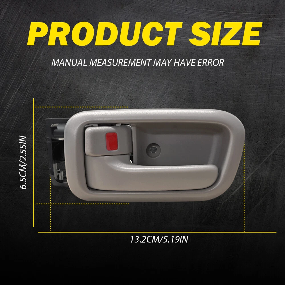 Fit for: Toyota Tundra 2000-2006 Specifications OE Number: 69205-0C010-B1, 69206-0C010-B1,69277-0C010-B1, 69278-0C010-B1 81219, 81254, 91359, 91360 Product Material: ABS Color: Beige (as pictures show) Placement on Vehicle: Front left and front right of inside door Features: *Perfect Fitment Comply with the industrial standards, use it with confidence. *Strict Quality Control All of our handles undergo strict quality control not just before shipping but throughout the production process. *Durable Material Mainly made of high-quality material to ensure the long service life and durability. Interior Door Handle Front Driver For Passenger Toyota 2000-2006 Tundra Beige Fit for: Toyota Tundra 2000-2006 Specifications OE Number: 69205-0C010-B1, 69206-0C010-B1,69277-0C010-B1, 69278-0C010-B1 81219, 81254, 91359, 91360 Product Material: ABS Color: Beige (as pictures show) Placement on Vehicle: Front left and front right of inside door Features: *Perfect Fitment Comply with the industrial standards, use it with confidence. *Strict Quality Control All of our handles undergo strict quality control not just before shipping but throughout the production process. *Durable Material Mainly made of high-quality material to ensure the long service life and durability. *Simple Installation Easy installation with direct replacement, other modifications are not required. *Warm Notice Please double-check the part number and models in the description to guarantee it fits your vehicle before ordering. Packaging Include: Door handle*2 Item Specifics Brand AUXITO Placement on Vehicle Front Front Right Left Right Left Side/ Right Side Material Plastic Type Door Handle Color As Pictures Finish Textured Number of Pieces (2) Interior Door Handle Features Press Button Manufacturer Part Number 2050C010B1;692060C010B1 OE/OEM Part Number 2050C010B1;692060C010B1 Superseded Part Number 692060C010B1 Other Part Number Inside Door Handle Fitment Type Direct Replacement Universal Fitment No Manufacturer Warranty 5 Years Interchange Part Number 69205-0C010-B1, 69206-0C010-B1,69277-0C010-B1, 69278-0C010-B1 Payment We accept PayPal via eBay Secure Check-Out only. Immediate payment needs to be processed for items with Add to Cart option so that any promotional discounts can be applied to your order immediately. Shipping 1 .We do everything we can to ship your orders out as soon as possible. 2. Shipping and Handling: We process orders within two business day after the payment was clear. Returns Our 30-day Satisfaction Guarantee assures our customers that they will receive all orders promptly and exactly as described. In addition, it allows customers to return new and unused products in their original factory condition for any reason within 30 days from the date of purchase. 1. All returns must be pre-approved by AUXITO and have a return merchandise authorization(RMA) number. Unauthorized returns will not be accepted. 2. Buyers are responsible for appropriate packing, returning shipping cost, insurance and returning the item in "new" condition. Used items will not be accepted for return. 3. We will replace the returning item with an identical item, issue a full store credit or a full refund. Contact Us Our Working Time:(GMT+8)Monday to Friday,9:00-18:00. For inquires and customer support, please send your email via ebay email system. All emails will be responded to within 24 hours during business days. Feedbacks 1. We appreciate your business and strived to improve our customer service and our commitment to quality. 2. We will leave a positive feedback immediately after payment is received. We appreciate a positive feedback as much as you do. 3. If for some reason there is any issue with the purchase, please contact us prior to leaving feedback, and we will be glad to work with you to have it resolved. DESCRIPTION PAYMENT SHIPPING RETURN POLICY CONTACT US Hot Item 4" Red Truck Long Performance High Flow Cold Air Intake Cone Dry Filter Cotton USD 27.54 AUXITO 7440/7443 Turn LED Signal Light Bulbs Anti Hyper Flash Amber Super Bright USD 21.84 Waterproof Motorcycle Handlebar Dual USB Phone Charger Cigarette Lighter Socket USD 13.29 Fit For 2015-2019 Hyundai Center Light Gray Sonata Armrest Console Lid Cover USD 13.29 190 PCS Bumper Fender Moulding Side Garnish Grille Retainer Clip ABS Various USD 10.99 Hot Item 4" Red Truck Long Performance High Flow Cold Air Intake Cone Dry Filter Cotton USD 27.54 Waterproof Motorcycle Handlebar Dual USB Phone Charger Cigarette Lighter Socket USD 13.29 Fit For 2015-2019 Hyundai Center Light Gray Sonata Armrest Console Lid Cover USD 13.29 AUXITO 7440/7443 Turn LED Signal Light Bulbs Anti Hyper Flash Amber Super Bright USD 21.84 190 PCS Bumper Fender Moulding Side Garnish Grille Retainer Clip ABS Various USD 10.99 Interior Door Handle Front Driver For Passenger Toyota 2000-2006 Tundra Beige Fit for: Toyota Tundra 2000-2006 Specifications OE Number: 69205-0C010-B1, 69206-0C010-B1,69277-0C010-B1, 69278-0C010-B1 81219, 81254, 91359, 91360 Product Material: ABS Color: Beige (as pictures show) Placement on Vehicle: Front left and front right of inside door Features: *Perfect Fitment Comply with the industrial standards, use it with confidence. *Strict Quality Control All of our handles undergo strict quality control not just before shipping but throughout the production process. *Durable Material Mainly made of high-quality material to ensure the long service life and durability. *Simple Installation Easy installation with direct replacement, other modifications are not required. *Warm Notice Please double-check the part number and models in the description to guarantee it fits your vehicle before ordering. Packaging Include: Door handle*2 Payment We accept PayPal via eBay Secure Check-Out only. Immediate payment needs to be processed for items with Add to Cart option so that any promotional discounts can be applied to your order immediately. Shipping 1 .We do everything we can to ship your orders out as soon