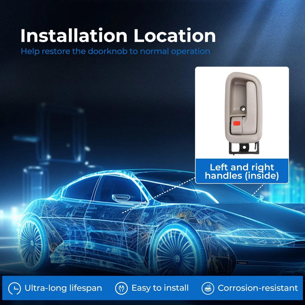 About Us Upgrade your vehicle with the Carcaremax Car Door Handle. Crafted for durability, this handle is built to withstand daily wear and tear, ensuring it maintains its sleek look for years to come. Installation is a breeze, meaning you can enjoy new handles without the hassle of complicated tools. Say goodbye to scratches, as our scratch-resistant design keeps your handles looking fresh and clean. Whether you are replacing worn-out handles or simply want to enhance your car’s appearance, the Carcaremax Car Door Handle is the perfect choice. Designed to fit most vehicles, it offers a seamless upgrade that combines style and functionality. Make your car stand out while ensuring top-notch performance with the Carcaremax Car Door Handle today! About Us Compatible with: 2000 Toyota Tundra all Submodel 2001 Toyota Tundra all Submodel 2002 Toyota Tundra all Submodel 2003 Toyota Tundra all Submodel 2004 Toyota Tundra Base Standard Cab Pickup-2 door 2004 Toyota Tundra Limited Extended Cab Pickup 2004 Toyota Tundra SR5 Extended Cab Pickup-4 door 2004 Toyota Tundra SR5 Standard Cab Pickup 2005 Toyota Tundra Base Standard Cab Pickup-2 door 2005 Toyota Tundra Limited Extended Cab Pickup-4 door 2005 Toyota Tundra SR5 Extended Cab Pickup-4 door 2006 Toyota Tundra Base Standard Cab Pickup-2 door 2006 Toyota Tundra Limited Extended Cab Pickup-4 door 2006 Toyota Tundra SR5 Extended Cab Pickup-4 door About Us Our products come with 1-year-warranty, ensuring that there will be no defects in materials and workmanship under normal use. We do our best to hear from customers and update our products. If you have more problems, please be free to contact us.