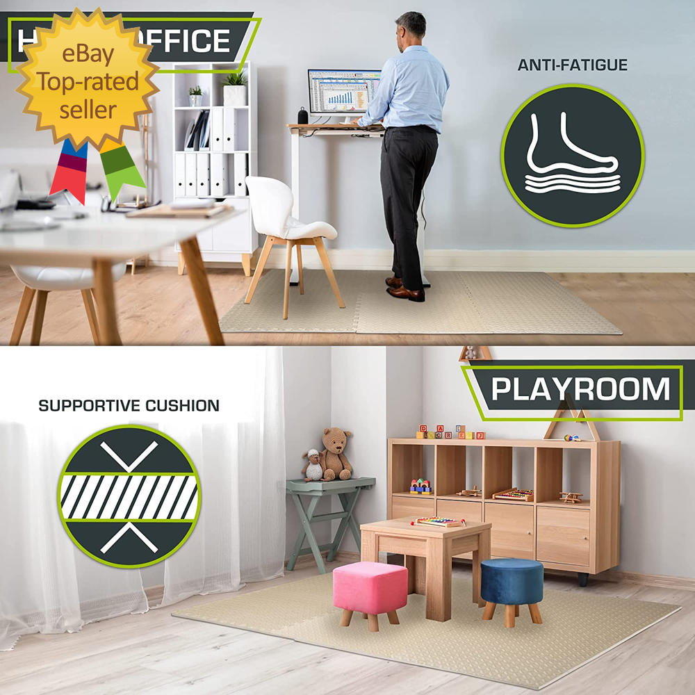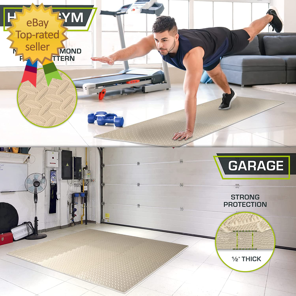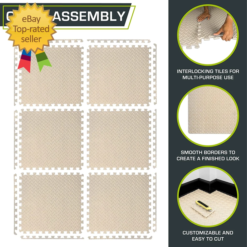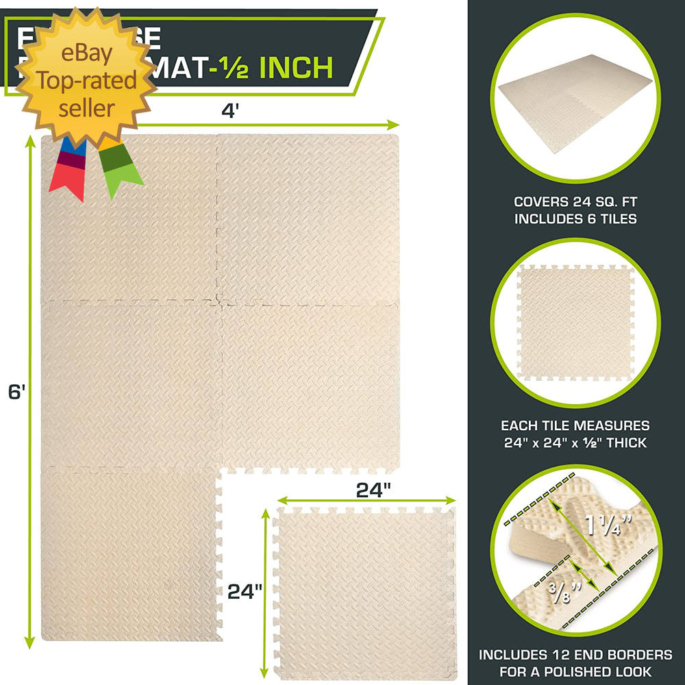 Store New Arrivals Add to Favorite View Feedback Contact Puzzle Exercise Mat ½ In, EVA Interlocking Foam Floor Tiles for Home Gym, Mat Description Warranty Description is confident our high quality products, which is why we offer a limited lifetime warranty on all products for manufacturer defects, so you can feel confident in your purchase. Number of Items 6 Pattern Mat Style 1/2" Thick 24 Square Feet Package Weight 2.24 Kilograms Suggested Users Unisex-Adult Model Name Exercise Puzzle Mats 0.5-in Item Package Dimensions L x W x H 25.59 x 25.39 x 3.54 inches Item Thickness 0.5 Inches Included Components Puzzle Item Weight 2 Kilograms Special Feature Cushioned Part Number ps-2289-pzzl-cream Item Dimensions LxWxH 24 x 24 x 0.5 inches Color Beige - 1/2 Inch - 24 Sq Ft - 6 Tiles Global Trade Identification Number 00810244025079 Material Foam Shape Square Material Type Free Phthalate Free Product Dimensions 24"L x 24"W x 0.5"Th Product Care Instructions Air Dry Size 1/2 inch - 24 Sq Ft - 6 Tiles Protective Foam Floor Tiles - Durable, non-skid textured squares and tiles that cover and protect your floor or even carpet while creating a comfortable gym flooring for home gym with exercise accessories or as a play mat for children. Versatile – The water-resistant, noise-reducing design is easy-to-clean, great for indoor purposes like in garages as a protector, gyms, a home fitness room, or even children’s play areas as a play mat. Easy Assembly – Lightweight interlocking foam tiles connect quickly and easily, and can be disassembled just as simply for quick storage. Covers 24 Sq Ft - Each tile measures 24 in x 24 in x ½ in - thick from the highest point of the texture; Includes 6 tiles with end borders for a polished look. Care: Apply warm water and dish soap with a soft cloth or towel and air dry. High Quality Foam - High-density EVA foam mat provides excellent support and cushion; Contains NO toxic phthalates. Excellent alternative to rubber gym mats. The ProsourceFit Exercise Puzzle Mat ½-inch creates a large, comfortable and durable surface for workouts and exercise equipment while protecting your floor. The interlocking foam mats are made from thick EVA foam which absorbs impact and noise during workouts and provides a soft surface for ground exercises like push-ups, crunches and yoga movements and weight lifting workouts. Easy-to-assemble interlocking foam floor pads when put together covers 24, 48 or 144 square feet with end borders for a clean, finished look. Each tile is ½ inch thick from the highest point of the texture. It comes in five color options and is great for garages, fitness rooms, gyms, children’s play areas and other hard floors. The foam puzzle mat contains no phthalates. ABOUT US We offer the best prices around on high quality products. Our E-store includes media such as books, movies, music and games while offering electronics, toys, sporting apparel, clothing, tools, general home, garden items and more. SHIPPING We are always working hard to ensure your package arrives as soon as possible. Please understand that some factors like weather, high postal traffic, and the performance of shipping companies are outside of our control. We offer free shipping to the lower 48 states and ship within 2 business days of payment, usually sooner. We do not accept P.O. Boxes. Please provide a physical address. For shipping outside of the continental USA, we only use eBay's Global Shipping Program. The item is shipped to IL and then sent to the rest of the world. International customers are responsible for all duties and taxes. Continue to 'check out' to calculate costs for shipping the item to your country. Messages regarding eBay's Global Shipping Program MUST be directed at eBay EXCLUSIVELY. RETURNS We do not accept returns under normal circumstances. However, we will gladly consider a return if the item is received broken or if the wrong size is sent to you. In all other cases, returns will not be accepted. CUSTOMER SATISFACTION We try our very best to make sure every customer is completely satisfied. If there's a problem, message us! We're happy to help.