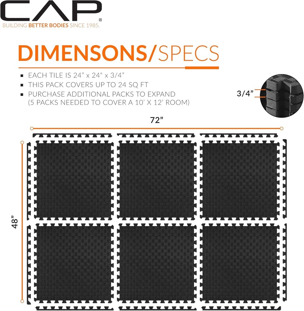 High-Density 3/4-Inch Thick EVA Foam Construction: Provides exceptional shock absorption and a comfortable surface for a wide range of exercises. Interlocking Design: Easily assemble and customize your workout area with puzzle mats that fit any space. Non-Slip Surface: Ensures safety during workouts by preventing slips and enhancing grip. Versatile Use: Ideal for home gyms and fitness routines; easy to clean with warm water and dish soap with a soft towel and air dry, and portable for convenience. Theritualy Exercise Puzzle Mats Packs Tiles 24"X24" X 3/4" | Multiple Options High-Density 3/4-Inch Thick EVA Foam Construction: Provides exceptional shock absorption and a comfortable surface for a wide range of exercises. Interlocking Design: Easily assemble and customize your workout area with puzzle mats that fit any space. Non-Slip Surface: Ensures safety during workouts by preventing slips and enhancing grip. Versatile Use: Ideal for home gyms and fitness routines; easy to clean with warm water and dish soap with a soft towel and air dry, and portable for convenience. Protective Flooring: Reduces noise and protects your floors while offering durable and multi-use functionality. Exercise Puzzle Mats Packs Tiles 24"X24" X 3/4" | Multiple Options Item Specifics Brand Unbranded Type Exercise Equipment Mats COLOR Tatami Pattern - Black - 1- Pack - 6 tiles Item SIZE 25.59 x 25.59 x 5.12 inches Item Weight 7.2 Pounds Color Tatami Pattern - Black - 1- Pack - 6 tiles Material Ethylene-vinyl acetate (EVA) Product Care Instructions Hand Wash Only Product Dimensions 24"L x 24"W x 0.75"Th|Item Weight:7.2 Pounds| Item Weight 7.2 Pounds UPC 702556040492 Payment We accept PayPal payment,PayPal Credit,Credit card or debit card and so on. Payment should be completed within 4 (Four) days of auction closing. Or unpaid dispute will be filed for closing auction. We will leave a positive feedback immediately after payment is received. We appreciate a positive feedback as much as you do. If for some reason there is any issue with the purchase, please contact us prior to leaving feedback, we will be glad to work together and provide a satisfying solution. Shipping 1.We usually ship within 3-5 business days of receiving cleared payment., and we provide Free Shipping for most items. 2.Fast shipping is very important for us. We use multiple fulfilment warehouse around the United States. We only ship to the lower 48 States and do not ship to PO Boxes. 3.Please make sure the correct Ship-To address is entered before checking out. Once the payment is completed, you may not be able to change the shipping address. We shall not be held responsible for any wrong or undeliverable addresses. Returns 1.We provide 14 days return upon the buyer received the item. It must be in good condition and you will undertake the returned shipping cost. 2.We will offer replacement or refund for all DEFECTIVE items (not including damage resulting from accidents / abuse / misuse / improper care), but a photo is needed for our reference beforehand and should be reported to us within 7 days from purchase date. 3.All items are brand new and have been passed the quality check. All are packed in a good condition before item dispatch. Contact Us 1.Dear customers, we appreciate your business, our aim is to provide Top Level Customer Service,if you are satisfied with our service, please leave us a 5 star positive feedback . 2.If you have any question or concern about your eBay order, please feel free to let us know. We will try our best to reply all questions within 24 hours. However, no answer will be replied during weekends or holidays. Please allow up to 48 hours delay in receiving our response after long weekends or holidays. 3.Please via eBay Message for a solution for resolutions before leaving negative feedback, we strive to providing the greatest service and bringing the highest satisfaction to all of our customers. Theritualy DESCRIPTION PAYMENT SHIPPING RETURN POLICY CONTACT US Shop Category Store Home Other Hot Item 8000Mah Portable Waist Fan Clip On Belt Personal Fan, 3 Speeds Rechargeable, Up USD 18.08 Oasis 360 Black, Large, Steel, Locking Parcel Mailbox With 2Access Doors USD 133.28 ONE+ 18V Cordless 7 1/2 in.Bucket Top Misting Fan (Tool Only) USD 99.68 Flush Wall Vent (Lite) 4". X 10". White USD 36.99 365 Cfm Brown Powder Coated 5-Watt Solar Powered Roof Mounted Exhaust Attic Fan USD 129.02 Picture New List Item Rocket 18 In. White Cat Tree Cylinder USD 49.49 Pepito Cat Tree USD 77.73 Holly Cat Tree With Condo And Hammock Cream USD 79.08 Black Indoor Large Cat 41 In. Height Multi-Level Cat Tree USD 94.23 Grey Indoor Large Cat 41 In. Height Multi-Level Cat Tree USD 94.23 Help & Info Payment Policy Shipping Policy Return Policy FAQ About Us Exercise Puzzle Mats Packs Tiles 24"X24" X 3/4" | Multiple Options High-Density 3/4-Inch Thick EVA Foam Construction: Provides exceptional shock absorption and a comfortable surface for a wide range of exercises. Interlocking Design: Easily assemble and customize your workout area with puzzle mats that fit any space. Non-Slip Surface: Ensures safety during workouts by preventing slips and enhancing grip. Versatile Use: Ideal for home gyms and fitness routines; easy to clean with warm water and dish soap with a soft towel and air dry, and portable for convenience. Protective Flooring: Reduces noise and protects your floors while offering durable and multi-use functionality. Exercise Puzzle Mats Packs Tiles 24"X24" X 3/4" | Multiple Options Item Specifics Brand : Unbranded Type : Exercise Equipment Mats COLOR : Tatami Pattern - Black - 1- Pack - 6 tiles Item SIZE : 25.59 x 25.59 x 5.12 inches Item Weight : 7.2 Pounds Color : Tatami Pattern - Black - 1- Pack - 6 tiles Material : Ethylene-vinyl acetate (EVA) Product Care Instructions : Hand Wash Only Product Dimensions : 24"L x 24"W x 0.75"Th|Item Weight:7.2 Pounds| Item Weight : 7.2 Pounds UPC : 702556040492 Payment Shipping Returns Contact Us We accep