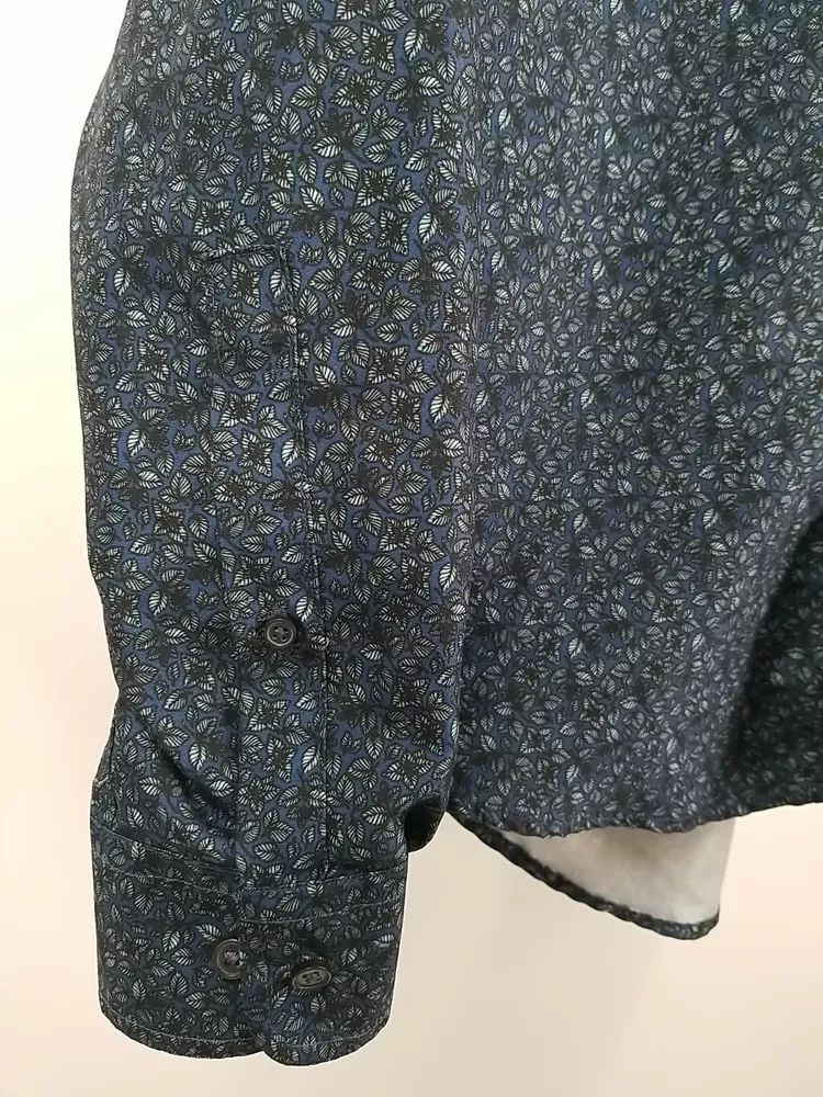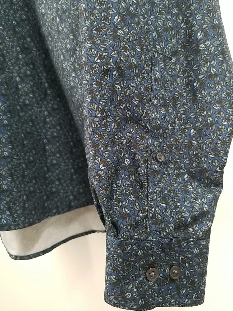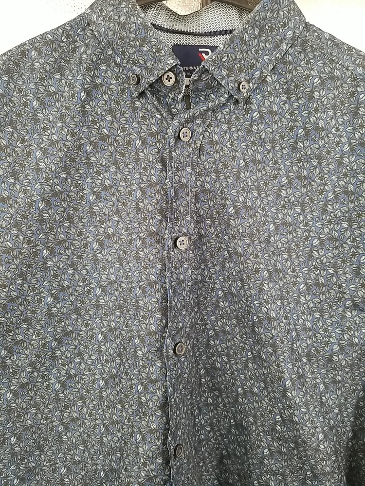 For sale is a stylish and versatile men's dress shirt from International Report. This shirt features a collared neckline, button-down closure, and long sleeves with floral pattern. It's perfect for a variety of occasions such as travel, weddings, parties, business, or casual wear. Made from a woven fabric with a blend of polyester and cotton, this shirt is comfortable and durable. The accents include buttons and its fit is regular for a comfortable wear. The shirt is size Large and the neck size is normal. Please refer to the provided aspects for more details. In preowned condition,see pics for details. Measurements are approximate. Top to bottom 32 inches Pit to pit 24 inches Sleeve 27 inches