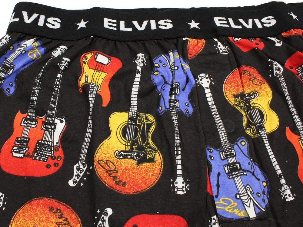 This is an officially licensed Elvis Presley Product!! These adult men's Elvis boxers feature an allover print of multiple styles of guitars with Elvis signatures. It features a stretch elastic waistband and it is made of a soft 100% cotton fabric blend. Intimo Men's Elvis Presley Guitar Cotton Boxer Underwear (Small) This is an officially licensed Elvis Presley Product!! These adult men's Elvis boxers feature an allover print of multiple styles of guitars with Elvis signatures. It features a stretch elastic waistband and it is made of a soft 100% cotton fabric blend. Product Details Color Black Size Small Brand Intimo Feature Officially Licensed Elvis Presley Product