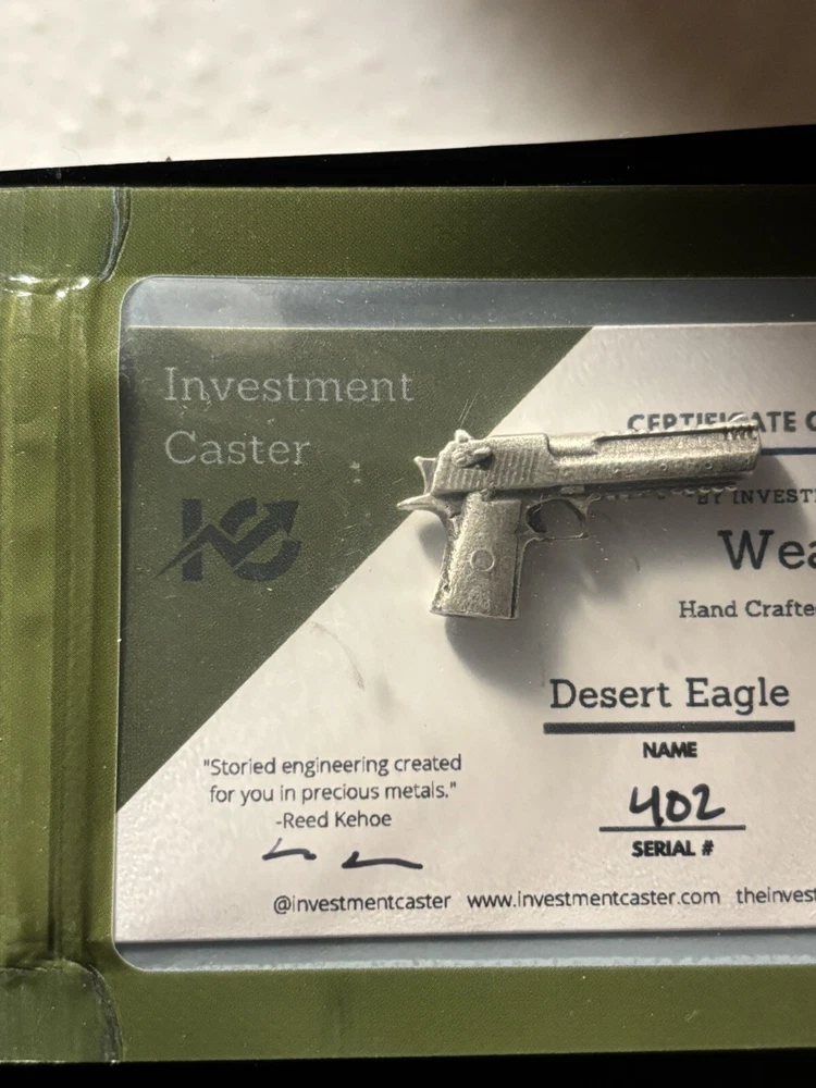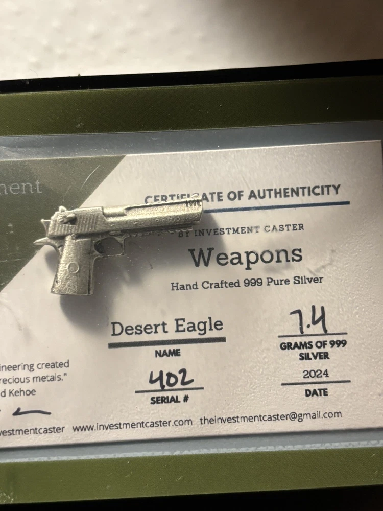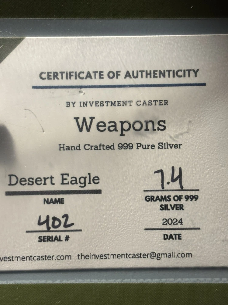 This Investment Caster Desert Eagle pure silver coin is a must-have for any collector or investor interested in precious metals. Crafted with 0.999 fineness silver, this round coin features a stunning design that highlights the 2nd Amendment. Weighing 7.4 grams, this unit type coin is a great addition to any collection. The coin's country/region of manufacture is unknown, but its quality is undeniable. Investment Caster is a trusted brand/mint in the industry, and this coin is no exception. Don't miss out on the opportunity to own this beautiful piece of bullion.
