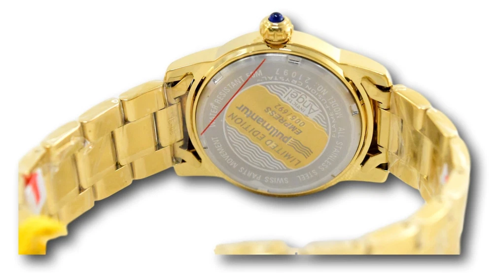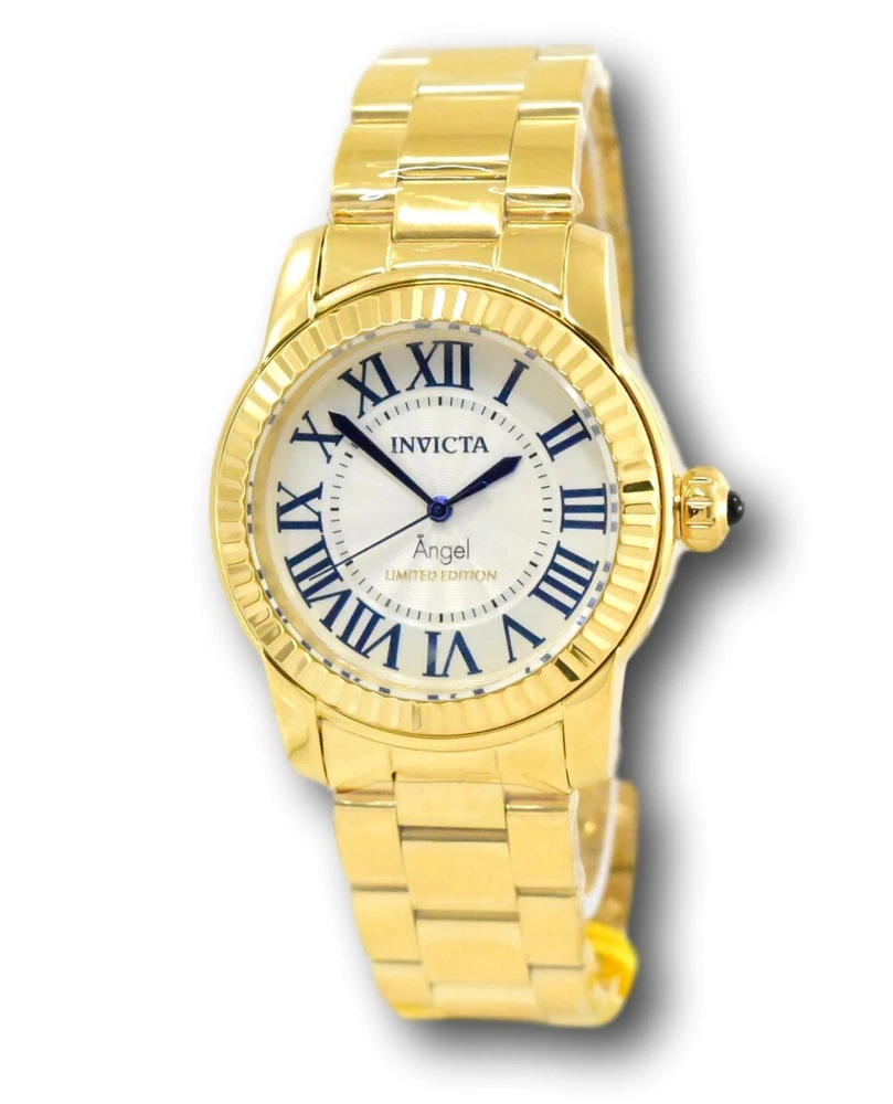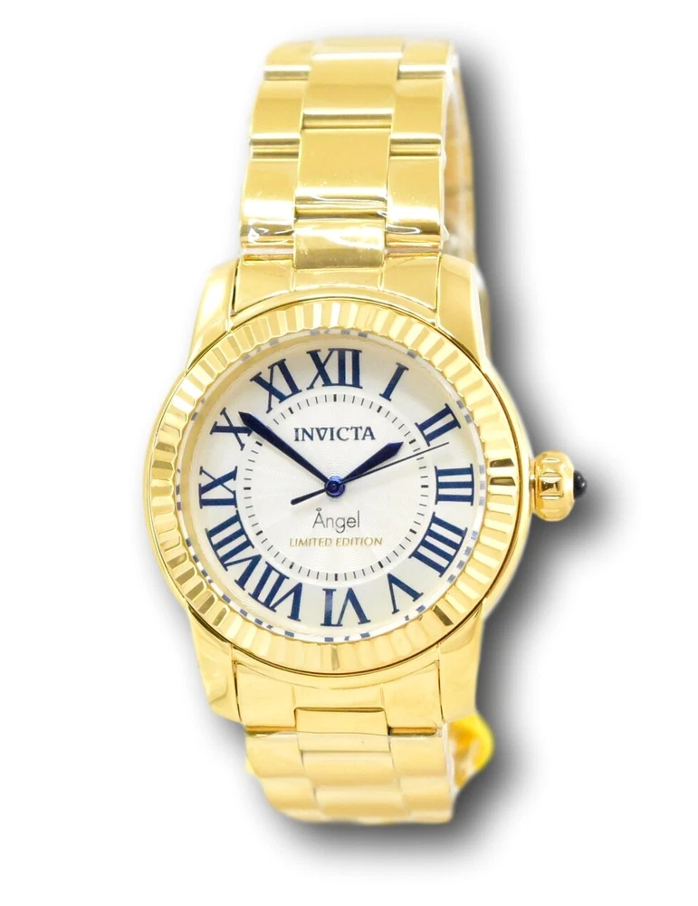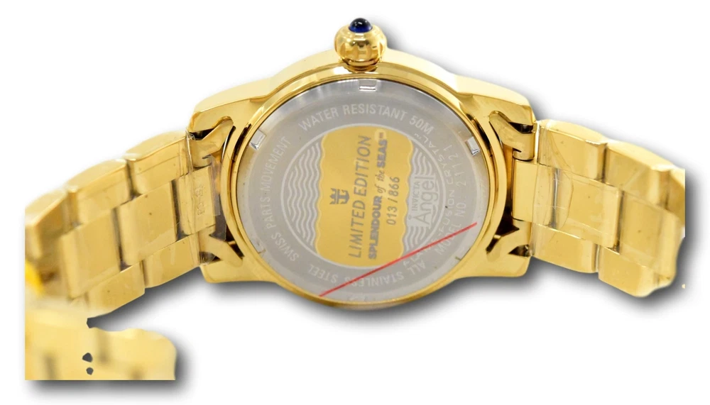 New - With Tags New and Unworn - Guaranteed Authentic - Includes Small Yellow Invicta Box and Warranty Card - This listing includes pictures of the actual watches for sale Exclusive series generally only available through a single cruise ship - Hard to Find models - We have some LOW Limited Edition numbers - Model # 21121 Was only available on Splendor of the Seas Cruise Ship - Limited Edition out of only 866 Model # 21097 Was only available on Pulmantur Empress Cruise Ship - Limited Edition out of only 692, etc. Items included: Small Yellow Invicta Box and Warranty Card Max wrist size: 8.25 Inches Case and Dial Case Size: 38mm Case Material: Stainless Steel Bezel Material: Stainless Steel Bezel Color: None Crown Type: Push Crystal Type: Flame Fusion Dial Material: Metal Movement Components: Swiss Caliber: 763 Function Type: Quartz Water Resistance Water Resistance: 50m Band Material: Stainless Steel Tone: Gold Length: 200mm Size: 20mm Top Selling Disney Super Hero Star Wars New in Stcok TechnoMarine Contact Us Invicta Angel Cruiseline Limited Edition Women's Gold Swiss Quartz Watch 38mm New - With Tags New and Unworn - Guaranteed Authentic - Includes Small Yellow Invicta Box and Warranty Card - This listing includes pictures of the actual watches for sale Exclusive series generally only available through a single cruise ship - Hard to Find models - We have some LOW Limited Edition numbers - Model # 21121 Was only available on Splendor of the Seas Cruise Ship - Limited Edition out of only 866 Model # 21097 Was only available on Pulmantur Empress Cruise Ship - Limited Edition out of only 692, etc. Items included: Small Yellow Invicta Box and Warranty Card Max wrist size: 8.25 Inches Case and Dial Case Size: 38mm Case Material: Stainless Steel Bezel Material: Stainless Steel Bezel Color: None Crown Type: Push Crystal Type: Flame Fusion Dial Material: Metal Movement Components: Swiss Caliber: 763 Function Type: Quartz Water Resistance Water Resistance: 50m Band Material: Stainless Steel Tone: Gold Length: 200mm Size: 20mm This item includes a 100% Money-Back Guarantee! If you're not completely satisfied with your purchase, just send it back in the same condition within 60 days and we will refund the full purchase price of the item. We'll even cover the return shipping! (Only applies to USA orders). Please Note: We do not cover water damage for watches. We do not test or verify manufacturer's water resistance claims. Please use your watch in water at your own risk. To receive free return shipping: Next to this item in your ebay purchase history, click on "Return this item." Please choose "Changed-mind" as the reason for the return. This will allow you to print a pre-paid return shipping label. - Klawk Watches - We have been in business for over 8 years, with more than 25,000 customers from around the world. We specialize in Invicta watches and have many models that can't be found anywhere else. We have some of the lowest prices - and you won't find better customer service. We try to provide the best customer service possible. We hand-inspect each watch and test them to make sure they are completely functional before shipping them out. We also include a no-hassle 60-day warranty on all of our watches (this warranty only covers defects in the watch movement). Our 60-day warranty does not cover any damage from water or moisture. Neither Klawkwatches nor any manufacturer covers water damage under warranty. Use your watch in water at your own risk. We're happy to help! If you have any questions, Please let us know and we will get back to you within 24 hours. Shipping Returns Shipping Shipping Returns Shipping Orders are shipped daily. We generally ship items within 24 hours of receiving payment. We offer standard, Prioirty, and overnight shipping services. You can upgrade your shipping speed at checkout for the difference in shipping costs. Unless a shipping upgrade is purchased, items will generally ship as a First Class Package, the normal arrival time is 3-5 business days starting the day after the item is shipped. We do all of our international shipping through the eBay global shipping program. We ship the item to the eBay global shipping center and they will ship the item to you. eBay determines the international shipping costs and import fees for the item based on the item weight and your location. International shipments can take between 2-4 weeks to arrive depending on your location. Shipping Returns Returns Shipping Returns Returns If you're not completely satisfied with your purchase, you are welcome to return it within 60 days for a full refund. We will generally cover the return shipping costs if you are not satisfied with your purchase. Next to the item in your purchase history, you can click on "More Options" and "Return this item". This will allow you to print a pre-paid return shipping label. For international orders and returns, please contact us to make return arrangements.