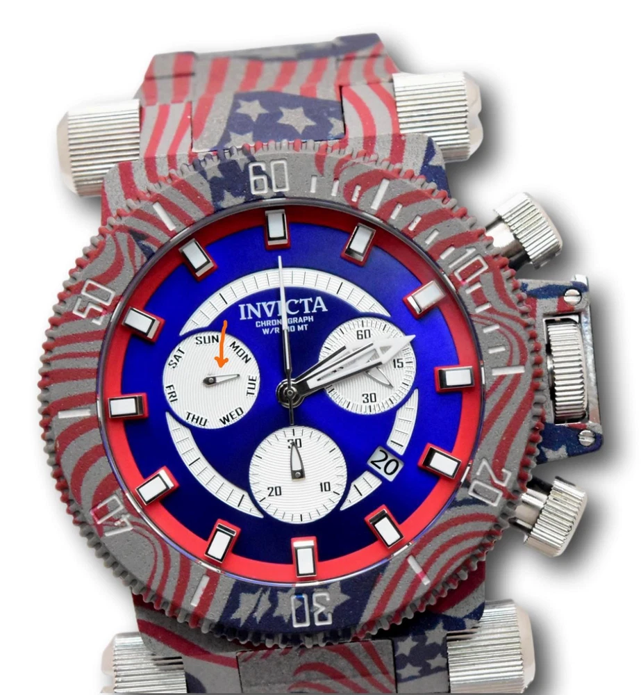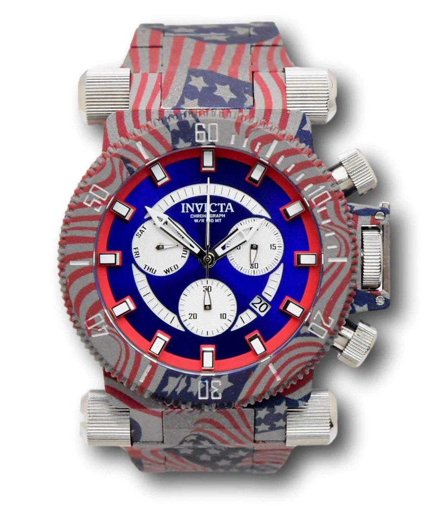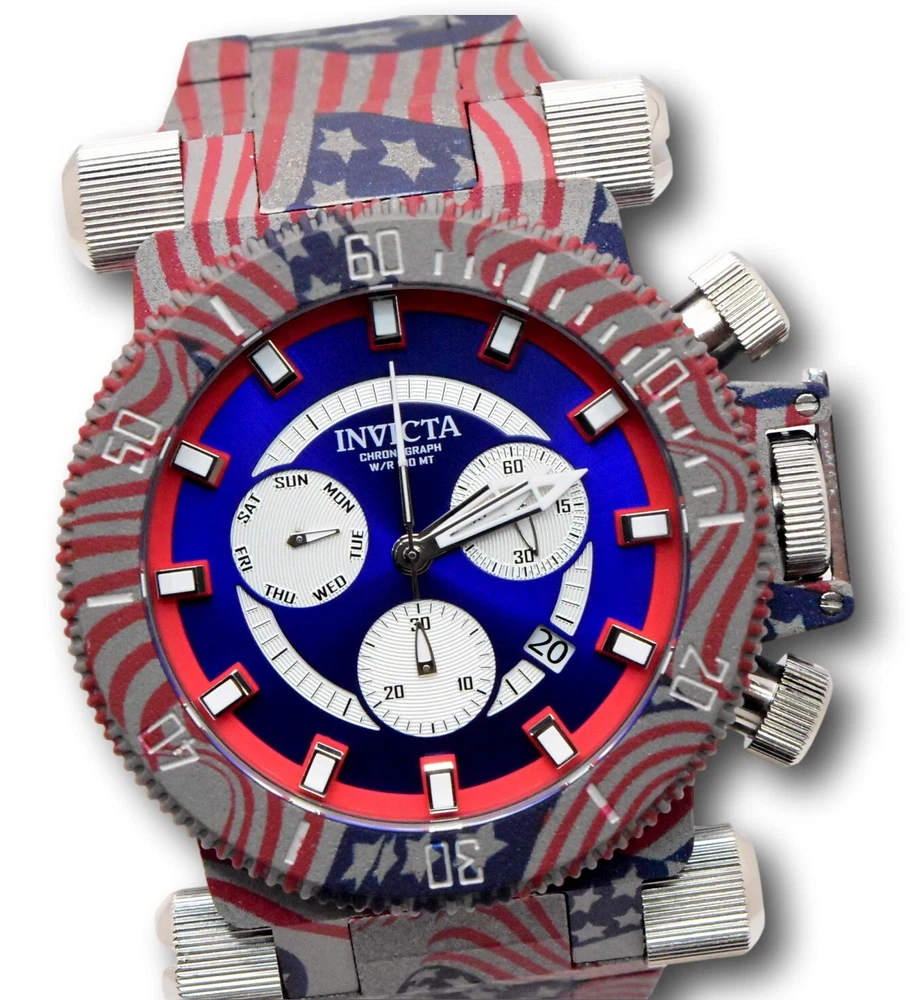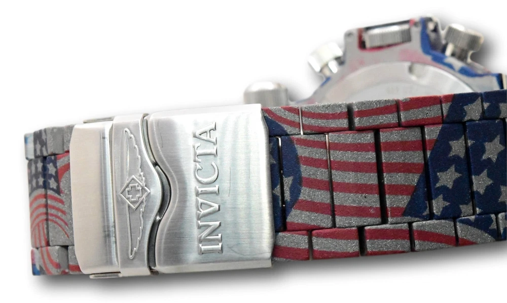 New - With Defects New and Unworn - No box - Watch day subdial points in between days - watch has minor imperfections from handling and storage - minor imperfections on the clasp - see pictures - watch is otherwise excellent condition and 100% Functional This listing includes pictures of the actual watches for sale LARGE watch - about 57mm wide including the crown guard piece - watch is about 17mm thick - watch weighs about 13.5 ounces Case size: 51mm wide or about 57 mm wide including the crown Thickness: 17 mm Weight: 13.3 ounces Items included: None - No box or manuals Max wrist size: 8.5 Inches Case and Dial Case Size: 51mm Case Material: Stainless Steel Bezel Material: Stainless Steel Bezel Color: Steel, Aqua-Plating Crown Type: Screw Down Crystal Type: Mineral Dial Material: Metal Movement Components: Swiss Caliber: Z60 FE Function Type: Quartz Water Resistance Water Resistance: 100m Band Material: Stainless Steel Tone: Steel, Aqua Plating Length: 210mm Size: 34.5mm Top Selling Disney Super Hero Star Wars New in Stcok TechnoMarine Contact Us Invicta Coalition Forces Men 52mm USA Flag HydroPlated Swiss Chrono Watch 26642 New - With Defects New and Unworn - No box - Watch day subdial points in between days - watch has minor imperfections from handling and storage - minor imperfections on the clasp - see pictures - watch is otherwise excellent condition and 100% Functional This listing includes pictures of the actual watches for sale LARGE watch - about 57mm wide including the crown guard piece - watch is about 17mm thick - watch weighs about 13.5 ounces Case size: 51mm wide or about 57 mm wide including the crown Thickness: 17 mm Weight: 13.3 ounces Items included: None - No box or manuals Max wrist size: 8.5 Inches Case and Dial Case Size: 51mm Case Material: Stainless Steel Bezel Material: Stainless Steel Bezel Color: Steel, Aqua-Plating Crown Type: Screw Down Crystal Type: Mineral Dial Material: Metal Movement Components: Swiss Caliber: Z60 FE Function Type: Quartz Water Resistance Water Resistance: 100m Band Material: Stainless Steel Tone: Steel, Aqua Plating Length: 210mm Size: 34.5mm This item includes a 100% Money-Back Guarantee! If you're not completely satisfied with your purchase, just send it back in the same condition within 60 days and we will refund the full purchase price of the item. We'll even cover the return shipping! (Only applies to USA orders). Please Note: We do not cover water damage for watches. We do not test or verify manufacturer's water resistance claims. Please use your watch in water at your own risk. To receive free return shipping: Next to this item in your ebay purchase history, click on "Return this item." Please choose "Changed-mind" as the reason for the return. This will allow you to print a pre-paid return shipping label. - Klawk Watches - We have been in business for over 8 years, with more than 25,000 customers from around the world. We specialize in Invicta watches and have many models that can't be found anywhere else. We have some of the lowest prices - and you won't find better customer service. We try to provide the best customer service possible. We hand-inspect each watch and test them to make sure they are completely functional before shipping them out. We also include a no-hassle 60-day warranty on all of our watches (this warranty only covers defects in the watch movement). Our 60-day warranty does not cover any damage from water or moisture. Neither Klawkwatches nor any manufacturer covers water damage under warranty. Use your watch in water at your own risk. We're happy to help! If you have any questions, Please let us know and we will get back to you within 24 hours. Shipping Returns Shipping Shipping Returns Shipping Orders are shipped daily. We generally ship items within 24 hours of receiving payment. We offer standard, Prioirty, and overnight shipping services. You can upgrade your shipping speed at checkout for the difference in shipping costs. Unless a shipping upgrade is purchased, items will generally ship as a First Class Package, the normal arrival time is 3-5 business days starting the day after the item is shipped. We do all of our international shipping through the eBay global shipping program. We ship the item to the eBay global shipping center and they will ship the item to you. eBay determines the international shipping costs and import fees for the item based on the item weight and your location. International shipments can take between 2-4 weeks to arrive depending on your location. Shipping Returns Returns Shipping Returns Returns If you're not completely satisfied with your purchase, you are welcome to return it within 60 days for a full refund. We will generally cover the return shipping costs if you are not satisfied with your purchase. Next to the item in your purchase history, you can click on "More Options" and "Return this item". This will allow you to print a pre-paid return shipping label. For international orders and returns, please contact us to make return arrangements.