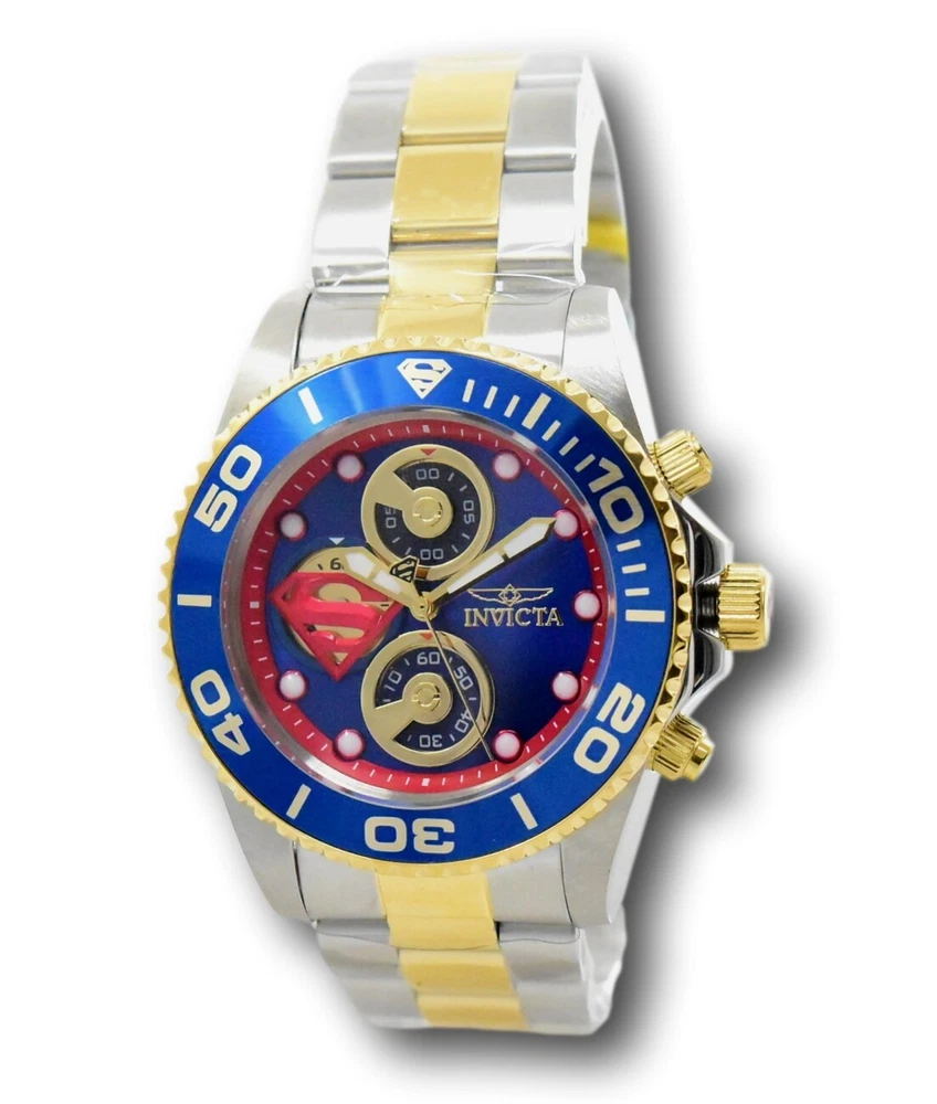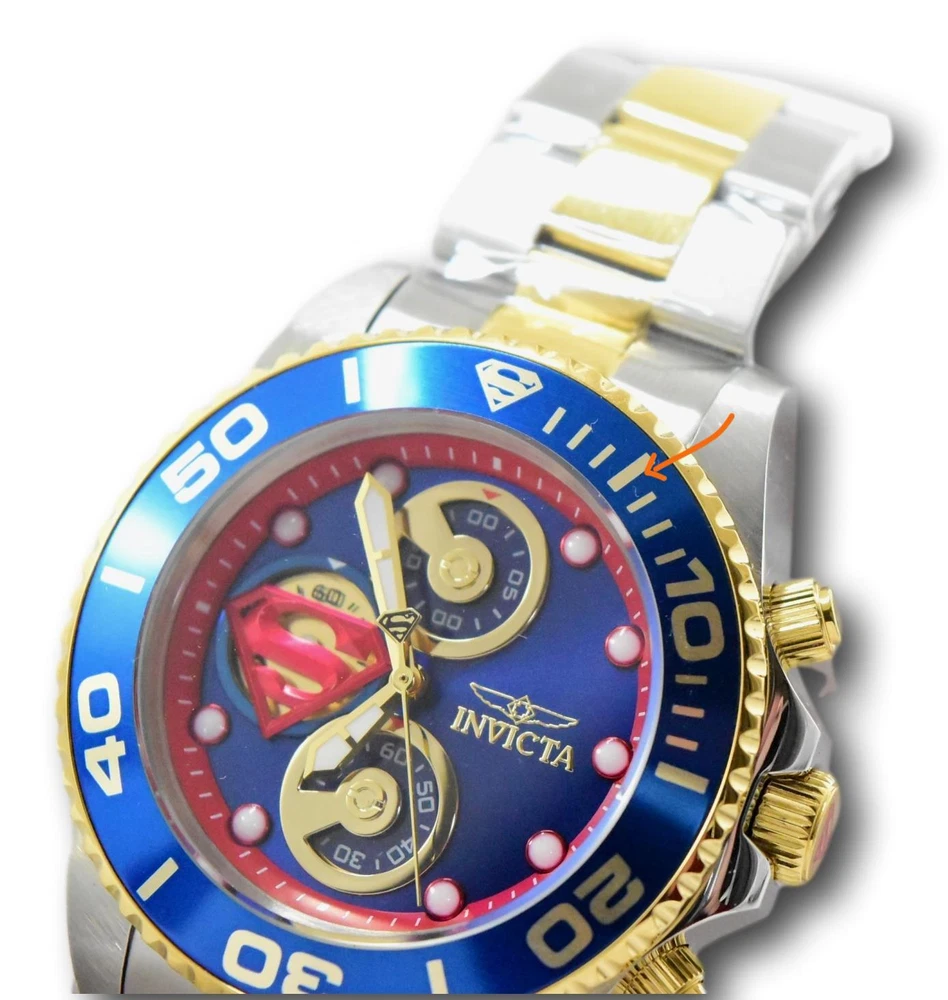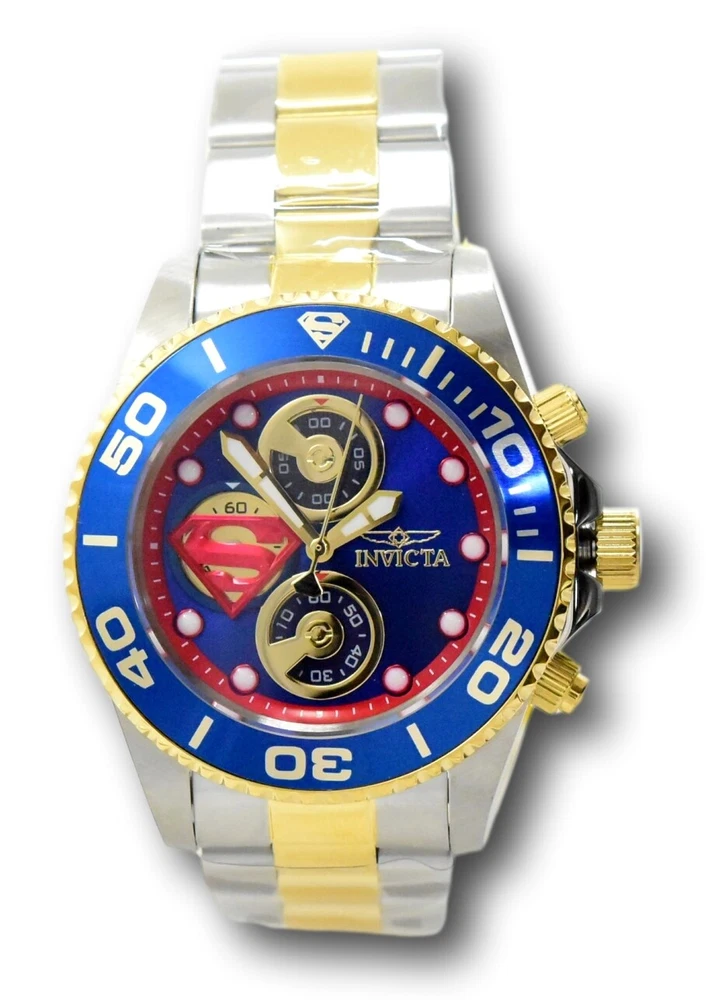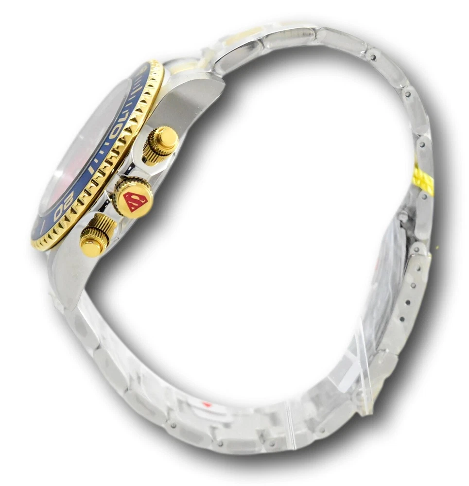 New - With Defects New and Unworn - Some very minor imperfections on the watch bezel from the factory similar to those pictured - watches are otherwise NEW and 100% Functional Watches show very minor imperfection on the watch bezel - see pictures for details - Guaranteed Authentic - Includes Black DC Comics Invicta Box and Warranty Card 100% Functional - This listing includes pictures of the actual watches for sale Case size: 43mm wide or about 48 mm wide including the crown Thickness: 14 mm Weight: 6.5 ounces Items included: Black DC Comics Invicta Box and Warranty Card Max wrist size: 8.5 inches Case and Dial Case Size: 43mm Case Material: Stainless Steel Bezel Material: Stainless Steel Bezel Color: Blue Crown Type: Screw Down Crystal Type: Flame Fusion Dial Material: Metal Movement Caliber: VD55B Function Type: Quartz Water Resistance Water Resistance: 200m Band Material: Stainless Steel Tone: Two-Tone Gold Length: 215mm Size: 22mm Top Selling Disney Super Hero Star Wars New in Stcok TechnoMarine Contact Us Invicta DC Comics Men's 43mm Superman Limited Edition Chronograph Watch 29063 New - With Defects New and Unworn - Some very minor imperfections on the watch bezel from the factory similar to those pictured - watches are otherwise NEW and 100% Functional Watches show very minor imperfection on the watch bezel - see pictures for details - Guaranteed Authentic - Includes Black DC Comics Invicta Box and Warranty Card 100% Functional - This listing includes pictures of the actual watches for sale Case size: 43mm wide or about 48 mm wide including the crown Thickness: 14 mm Weight: 6.5 ounces Items included: Black DC Comics Invicta Box and Warranty Card Max wrist size: 8.5 inches Case and Dial Case Size: 43mm Case Material: Stainless Steel Bezel Material: Stainless Steel Bezel Color: Blue Crown Type: Screw Down Crystal Type: Flame Fusion Dial Material: Metal Movement Caliber: VD55B Function Type: Quartz Water Resistance Water Resistance: 200m Band Material: Stainless Steel Tone: Two-Tone Gold Length: 215mm Size: 22mm This item includes a 100% Money-Back Guarantee! If you're not completely satisfied with your purchase, just send it back in the same condition within 60 days and we will refund the full purchase price of the item. We'll even cover the return shipping! (Only applies to USA orders). Please Note: We do not cover water damage for watches. We do not test or verify manufacturer's water resistance claims. Please use your watch in water at your own risk. To receive free return shipping: Next to this item in your ebay purchase history, click on "Return this item." Please choose "Changed-mind" as the reason for the return. This will allow you to print a pre-paid return shipping label. - Klawk Watches - We have been in business for over 8 years, with more than 25,000 customers from around the world. We specialize in Invicta watches and have many models that can't be found anywhere else. We have some of the lowest prices - and you won't find better customer service. We try to provide the best customer service possible. We hand-inspect each watch and test them to make sure they are completely functional before shipping them out. We also include a no-hassle 60-day warranty on all of our watches (this warranty only covers defects in the watch movement). Our 60-day warranty does not cover any damage from water or moisture. Neither Klawkwatches nor any manufacturer covers water damage under warranty. Use your watch in water at your own risk. We're happy to help! If you have any questions, Please let us know and we will get back to you within 24 hours. Shipping Returns Shipping Shipping Returns Shipping Orders are shipped daily. We generally ship items within 24 hours of receiving payment. We offer standard, Prioirty, and overnight shipping services. You can upgrade your shipping speed at checkout for the difference in shipping costs. Unless a shipping upgrade is purchased, items will generally ship as a First Class Package, the normal arrival time is 3-5 business days starting the day after the item is shipped. We do all of our international shipping through the eBay global shipping program. We ship the item to the eBay global shipping center and they will ship the item to you. eBay determines the international shipping costs and import fees for the item based on the item weight and your location. International shipments can take between 2-4 weeks to arrive depending on your location. Shipping Returns Returns Shipping Returns Returns If you're not completely satisfied with your purchase, you are welcome to return it within 60 days for a full refund. We will generally cover the return shipping costs if you are not satisfied with your purchase. Next to the item in your purchase history, you can click on "More Options" and "Return this item". This will allow you to print a pre-paid return shipping label. For international orders and returns, please contact us to make return arrangements.