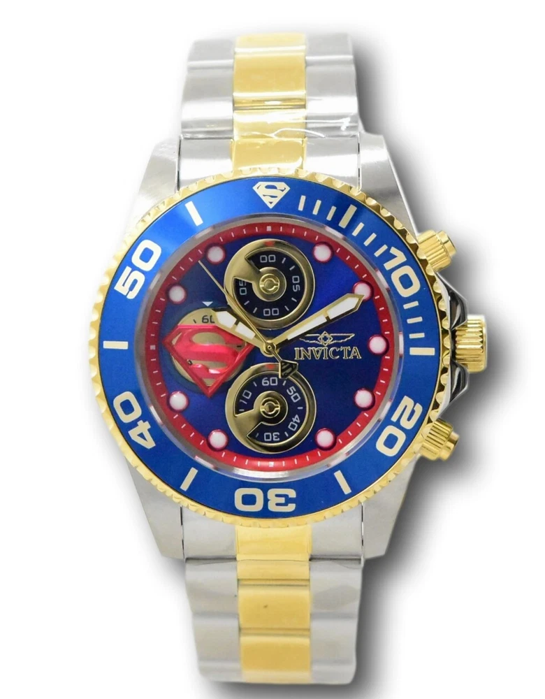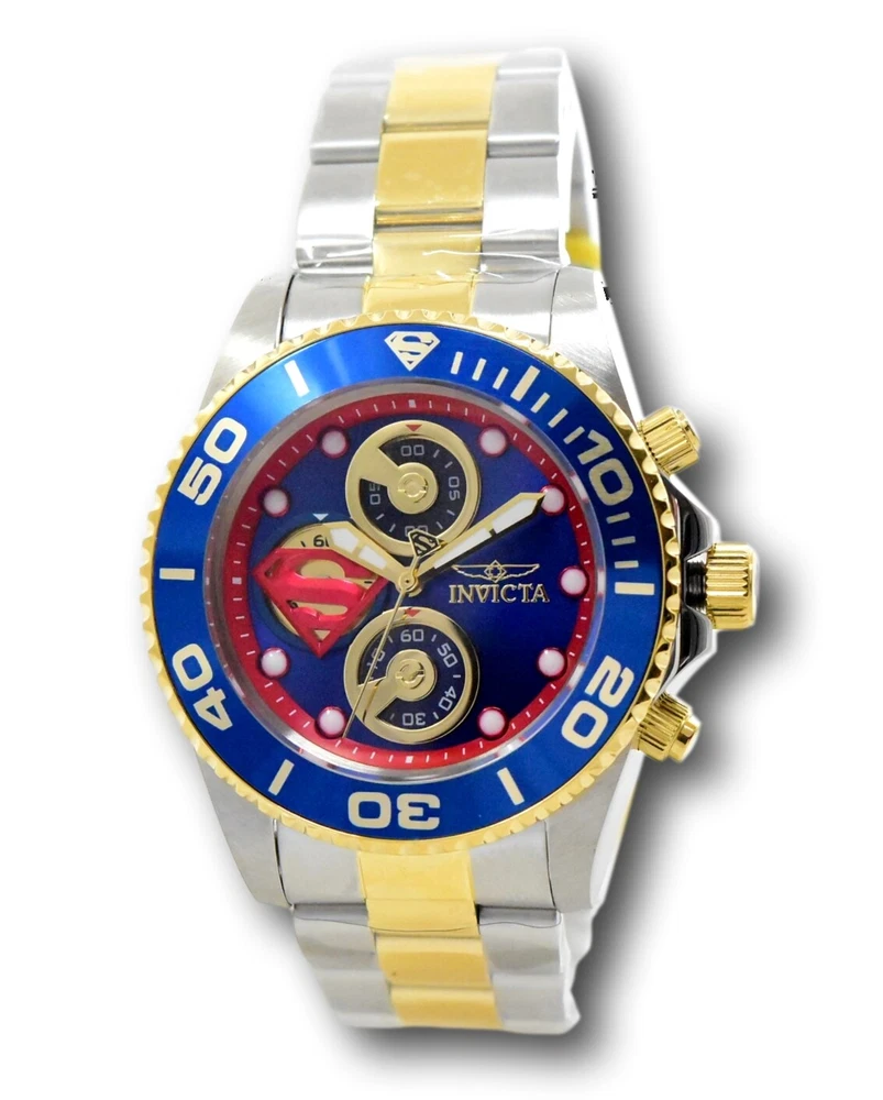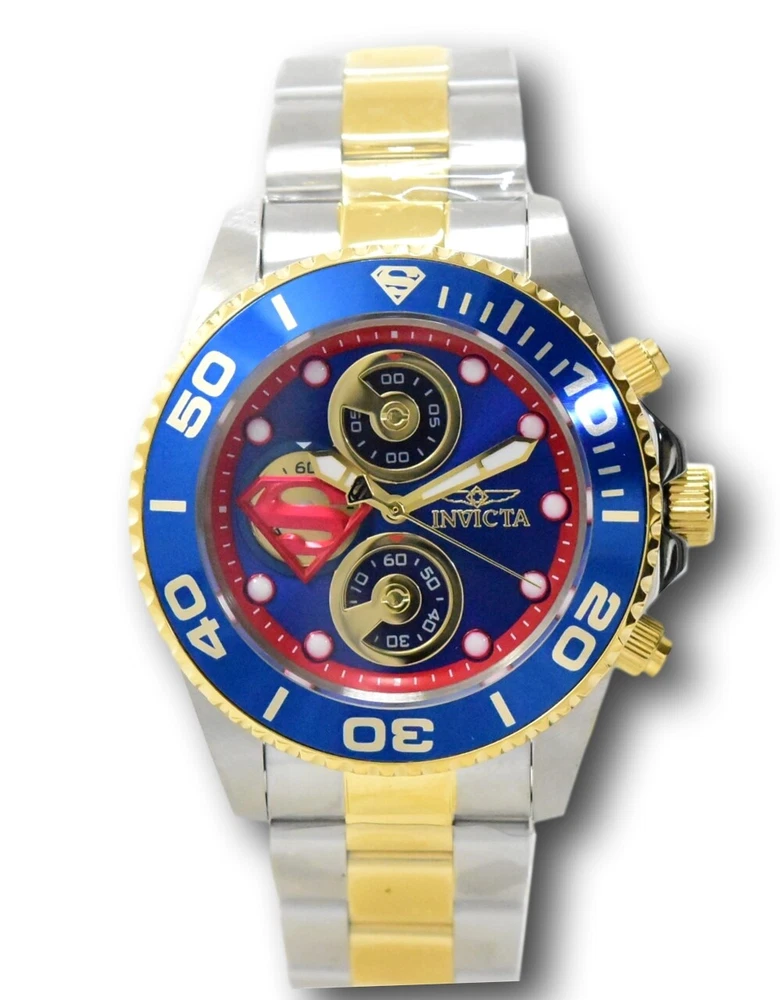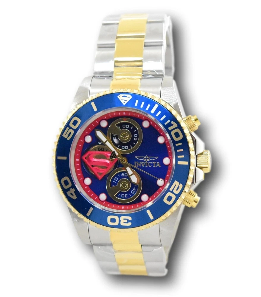 New - With Defects New and Unworn - Some very minor imperfections on the watch bezel from the factory similar to those pictured - watches are otherwise NEW and 100% Functional Watches show very minor imperfection on the watch bezel - see pictures for details - Guaranteed Authentic - Includes Black DC Comics Invicta Box and Warranty Card 100% Functional - This listing includes pictures of the actual watches for sale Case size: 43mm wide or about 48 mm wide including the crown Thickness: 14 mm Weight: 6.5 ounces Items included: Black DC Comics Invicta Box and Warranty Card Max wrist size: 8.5 inches Case and Dial Case Size: 43mm Case Material: Stainless Steel Bezel Material: Stainless Steel Bezel Color: Blue Crown Type: Screw Down Crystal Type: Flame Fusion Dial Material: Metal Movement Caliber: VD55B Function Type: Quartz Water Resistance Water Resistance: 200m Band Material: Stainless Steel Tone: Two-Tone Gold Length: 215mm Size: 22mm Top Selling Disney Super Hero Star Wars New in Stcok TechnoMarine Contact Us Invicta DC Comics Men's 43mm Superman Limited Edition Chronograph Watch 29063 New - With Defects New and Unworn - Some very minor imperfections on the watch bezel from the factory similar to those pictured - watches are otherwise NEW and 100% Functional Watches show very minor imperfection on the watch bezel - see pictures for details - Guaranteed Authentic - Includes Black DC Comics Invicta Box and Warranty Card 100% Functional - This listing includes pictures of the actual watches for sale Case size: 43mm wide or about 48 mm wide including the crown Thickness: 14 mm Weight: 6.5 ounces Items included: Black DC Comics Invicta Box and Warranty Card Max wrist size: 8.5 inches Case and Dial Case Size: 43mm Case Material: Stainless Steel Bezel Material: Stainless Steel Bezel Color: Blue Crown Type: Screw Down Crystal Type: Flame Fusion Dial Material: Metal Movement Caliber: VD55B Function Type: Quartz Water Resistance Water Resistance: 200m Band Material: Stainless Steel Tone: Two-Tone Gold Length: 215mm Size: 22mm This item includes a 100% Money-Back Guarantee! If you're not completely satisfied with your purchase, just send it back in the same condition within 60 days and we will refund the full purchase price of the item. We'll even cover the return shipping! (Only applies to USA orders). Please Note: We do not cover water damage for watches. We do not test or verify manufacturer's water resistance claims. Please use your watch in water at your own risk. To receive free return shipping: Next to this item in your ebay purchase history, click on "Return this item." Please choose "Changed-mind" as the reason for the return. This will allow you to print a pre-paid return shipping label. - Klawk Watches - We have been in business for over 8 years, with more than 25,000 customers from around the world. We specialize in Invicta watches and have many models that can't be found anywhere else. We have some of the lowest prices - and you won't find better customer service. We try to provide the best customer service possible. We hand-inspect each watch and test them to make sure they are completely functional before shipping them out. We also include a no-hassle 60-day warranty on all of our watches (this warranty only covers defects in the watch movement). Our 60-day warranty does not cover any damage from water or moisture. Neither Klawkwatches nor any manufacturer covers water damage under warranty. Use your watch in water at your own risk. We're happy to help! If you have any questions, Please let us know and we will get back to you within 24 hours. Shipping Returns Shipping Shipping Returns Shipping Orders are shipped daily. We generally ship items within 24 hours of receiving payment. We offer standard, Prioirty, and overnight shipping services. You can upgrade your shipping speed at checkout for the difference in shipping costs. Unless a shipping upgrade is purchased, items will generally ship as a First Class Package, the normal arrival time is 3-5 business days starting the day after the item is shipped. We do all of our international shipping through the eBay global shipping program. We ship the item to the eBay global shipping center and they will ship the item to you. eBay determines the international shipping costs and import fees for the item based on the item weight and your location. International shipments can take between 2-4 weeks to arrive depending on your location. Shipping Returns Returns Shipping Returns Returns If you're not completely satisfied with your purchase, you are welcome to return it within 60 days for a full refund. We will generally cover the return shipping costs if you are not satisfied with your purchase. Next to the item in your purchase history, you can click on "More Options" and "Return this item". This will allow you to print a pre-paid return shipping label. For international orders and returns, please contact us to make return arrangements.
