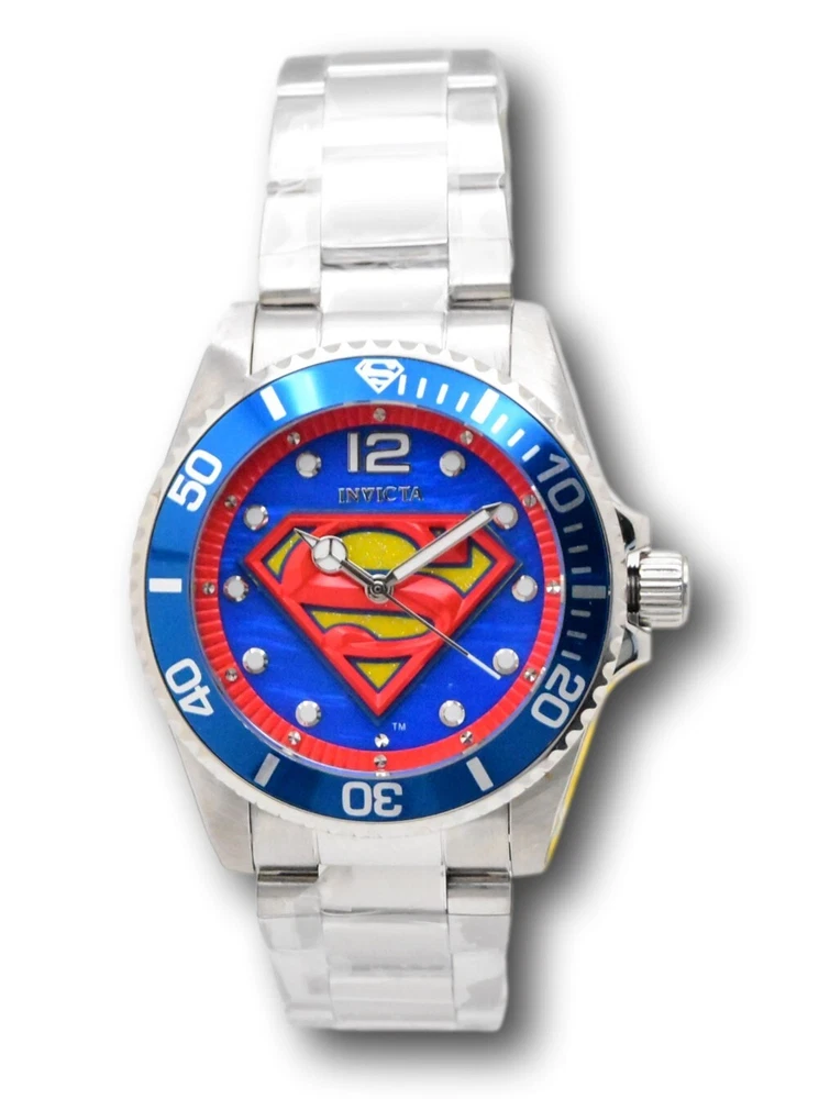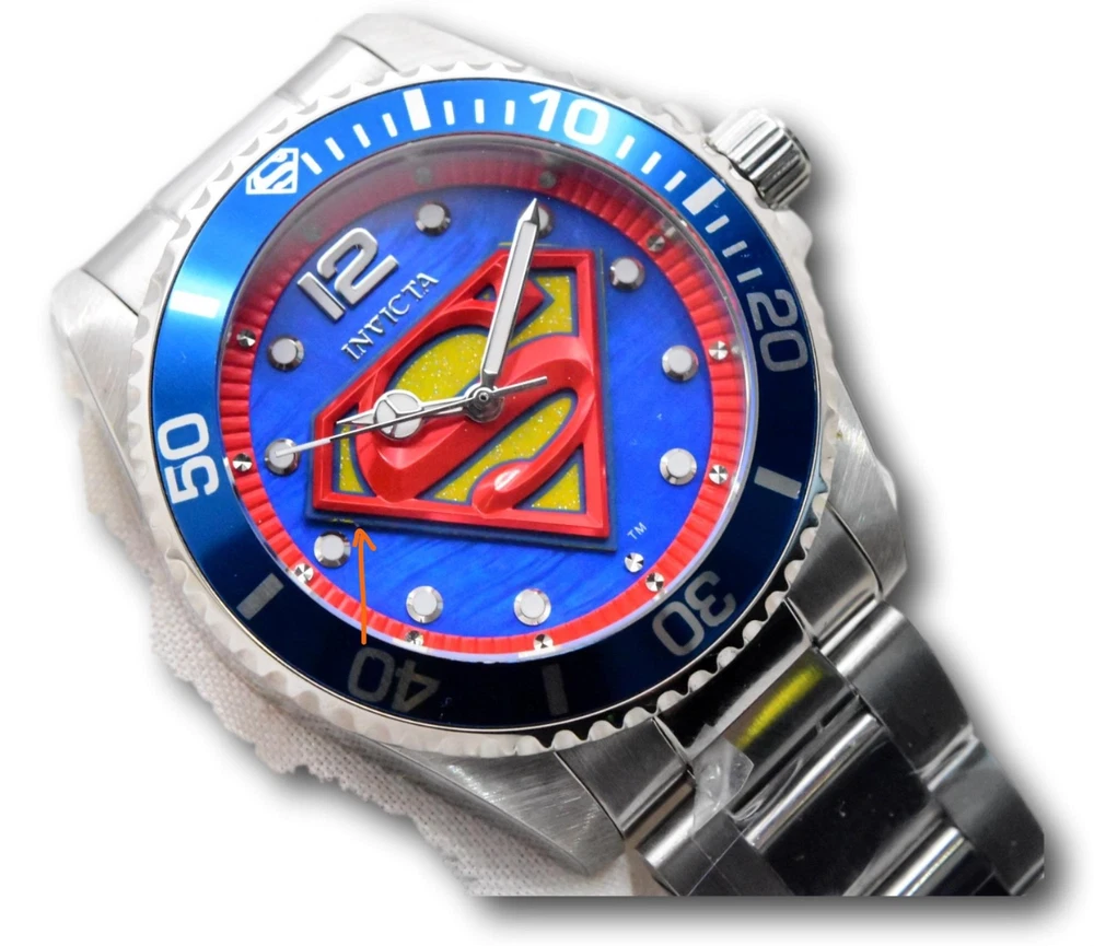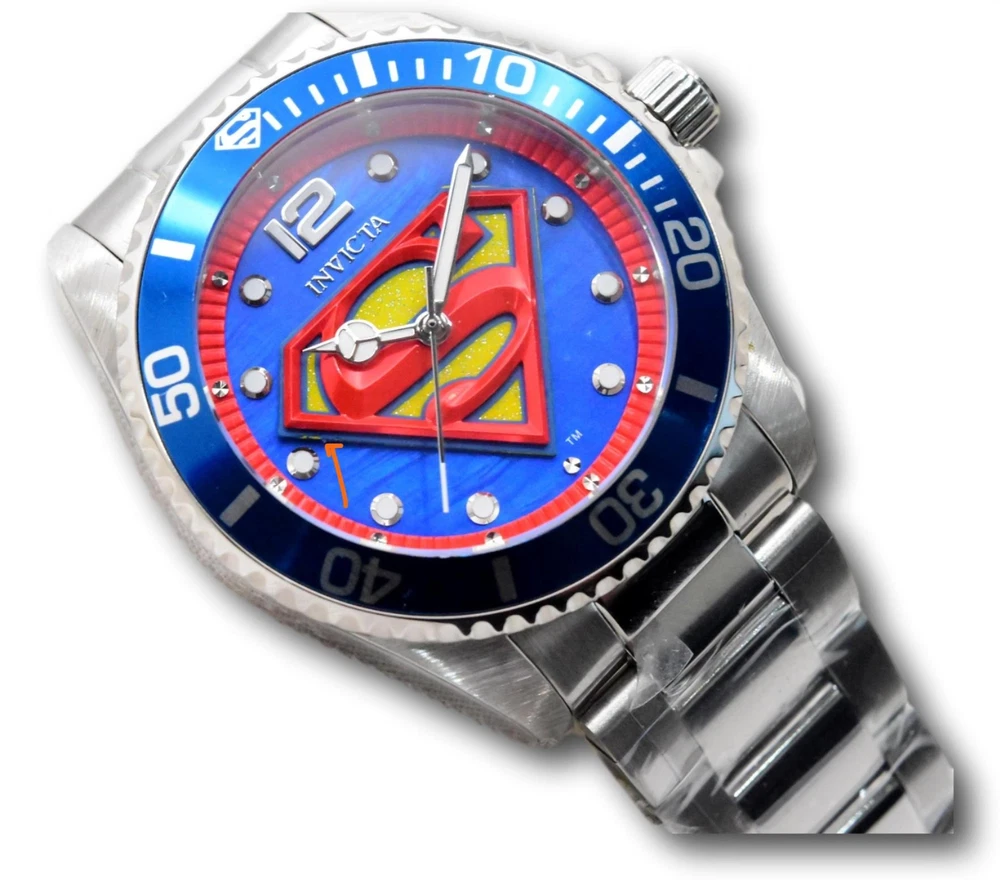 New - With Defects New and Unworn - Small imperfection on the watch dial from the factory - see pictures - watch is otherwise NEW and 100% Functional Guaranteed Authentic - Includes Black DC Comics Invicta Box and Warranty Card 100% Functional - This listing includes pictures of the actual watches for sale Watch features an elegant design with striking Blue mother of pearl dial dial Limited Edition # 0005 / 4000 Case Size: 38 mm or about 42 mm wide including the crown Case thickness: 11.5 mm Weight: 4.9 ounces Items included: Black DC Comics Invicta Box and Warranty Card Max wrist size: 8.0 inches Case and Dial Case Size: 38mm Case Material: Stainless Steel Bezel Material: Stainless Steel Bezel Color: Blue, Steel Crown Type: Push Crystal Type: Flame Fusion Dial Material: Metal, Mother of Pearl Movement Caliber: PC21AF Function Type: Quartz Water Resistance Water Resistance: 100m Band Material: Stainless Steel Tone: Steel Length: 210mm Size: 20mm Top Selling Disney Super Hero Star Wars New in Stcok TechnoMarine Contact Us Invicta DC Comics Superman Women's Blue 38mm Limited Ed # 005 Watch 36381 New - With Defects New and Unworn - Small imperfection on the watch dial from the factory - see pictures - watch is otherwise NEW and 100% Functional Guaranteed Authentic - Includes Black DC Comics Invicta Box and Warranty Card 100% Functional - This listing includes pictures of the actual watches for sale Watch features an elegant design with striking Blue mother of pearl dial dial Limited Edition # 0005 / 4000 Case Size: 38 mm or about 42 mm wide including the crown Case thickness: 11.5 mm Weight: 4.9 ounces Items included: Black DC Comics Invicta Box and Warranty Card Max wrist size: 8.0 inches Case and Dial Case Size: 38mm Case Material: Stainless Steel Bezel Material: Stainless Steel Bezel Color: Blue, Steel Crown Type: Push Crystal Type: Flame Fusion Dial Material: Metal, Mother of Pearl Movement Caliber: PC21AF Function Type: Quartz Water Resistance Water Resistance: 100m Band Material: Stainless Steel Tone: Steel Length: 210mm Size: 20mm This item includes a 100% Money-Back Guarantee! If you're not completely satisfied with your purchase, just send it back in the same condition within 60 days and we will refund the full purchase price of the item. We'll even cover the return shipping! (Only applies to USA orders). Please Note: We do not cover water damage for watches. We do not test or verify manufacturer's water resistance claims. Please use your watch in water at your own risk. To receive free return shipping: Next to this item in your ebay purchase history, click on "Return this item." Please choose "Changed-mind" as the reason for the return. This will allow you to print a pre-paid return shipping label. - Klawk Watches - We have been in business for over 8 years, with more than 25,000 customers from around the world. We specialize in Invicta watches and have many models that can't be found anywhere else. We have some of the lowest prices - and you won't find better customer service. We try to provide the best customer service possible. We hand-inspect each watch and test them to make sure they are completely functional before shipping them out. We also include a no-hassle 60-day warranty on all of our watches (this warranty only covers defects in the watch movement). Our 60-day warranty does not cover any damage from water or moisture. Neither Klawkwatches nor any manufacturer covers water damage under warranty. Use your watch in water at your own risk. We're happy to help! If you have any questions, Please let us know and we will get back to you within 24 hours. Shipping Returns Shipping Shipping Returns Shipping Orders are shipped daily. We generally ship items within 24 hours of receiving payment. We offer standard, Prioirty, and overnight shipping services. You can upgrade your shipping speed at checkout for the difference in shipping costs. Unless a shipping upgrade is purchased, items will generally ship as a First Class Package, the normal arrival time is 3-5 business days starting the day after the item is shipped. We do all of our international shipping through the eBay global shipping program. We ship the item to the eBay global shipping center and they will ship the item to you. eBay determines the international shipping costs and import fees for the item based on the item weight and your location. International shipments can take between 2-4 weeks to arrive depending on your location. Shipping Returns Returns Shipping Returns Returns If you're not completely satisfied with your purchase, you are welcome to return it within 60 days for a full refund. We will generally cover the return shipping costs if you are not satisfied with your purchase. Next to the item in your purchase history, you can click on "More Options" and "Return this item". This will allow you to print a pre-paid return shipping label. For international orders and returns, please contact us to make return arrangements.