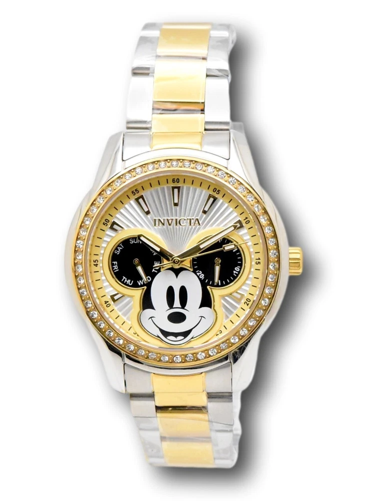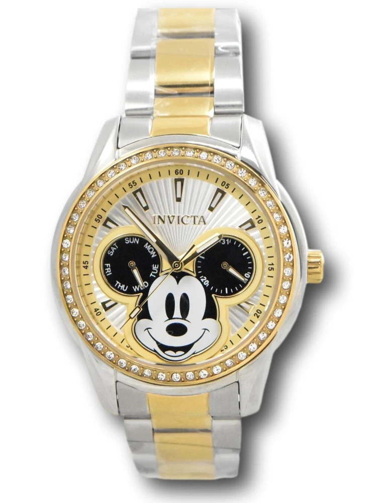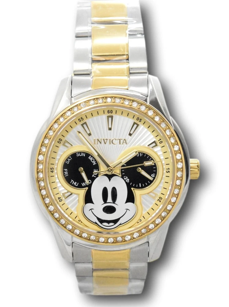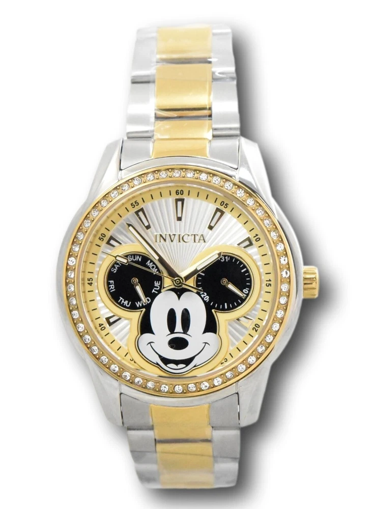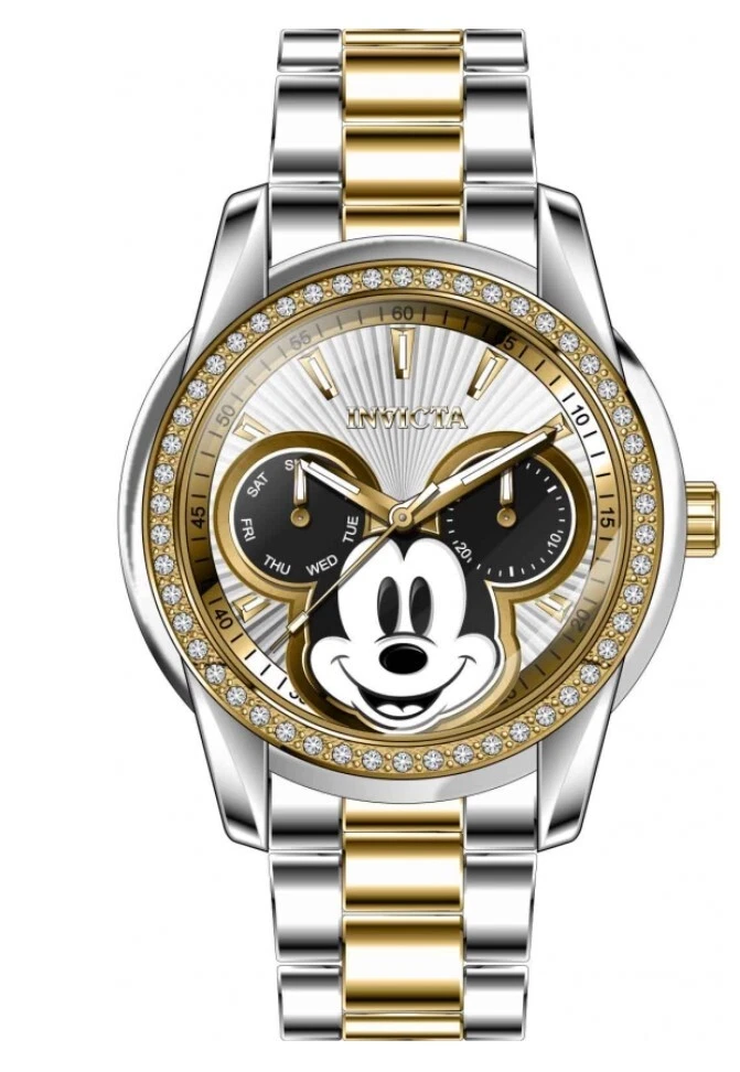 New - With Defects New and Unworn - Small scratches on the side of the watch casing - watch is otherwise NEW and 100% functional Guaranteed Authentic - Includes Invicta Disney Box and Warranty Card 100% Functional - - This listing includes pictures of the actual watches for sale Watch features 50 individual crystals around the bezel of the watch - luxurious look for any occasion Case size: 38mm wide or about 40mm wide including the crown Thickness: 12mm thick Weight: 4.4 ounces Items included: Black Invicta Disney Box and Warranty Card Max wrist size: 7.75 Inches Case and Dial Case Size: 38mm Case Material: Stainless Steel Bezel Material: Stainless Steel Bezel Color: Gold Crown Type: Push Crystal Type: Flame Fusion Dial Material: Metal Movement Caliber: VH64 Function Type: Quartz Water Resistance Water Resistance: 100m Band Material: Stainless Steel Tone: Steel, Gold Length: 190mm Size: 18mm Stones Type: Crystal Quantity: 50 Size: 1.3mm Color: Top Selling Disney Super Hero Star Wars New in Stcok TechnoMarine Contact Us Invicta Disney Women's 38mm Mickey Mouse Limited Edition Crystals Watch 37828 New - With Defects New and Unworn - Small scratches on the side of the watch casing - watch is otherwise NEW and 100% functional Guaranteed Authentic - Includes Invicta Disney Box and Warranty Card 100% Functional - - This listing includes pictures of the actual watches for sale Watch features 50 individual crystals around the bezel of the watch - luxurious look for any occasion Case size: 38mm wide or about 40mm wide including the crown Thickness: 12mm thick Weight: 4.4 ounces Items included: Black Invicta Disney Box and Warranty Card Max wrist size: 7.75 Inches Case and Dial Case Size: 38mm Case Material: Stainless Steel Bezel Material: Stainless Steel Bezel Color: Gold Crown Type: Push Crystal Type: Flame Fusion Dial Material: Metal Movement Caliber: VH64 Function Type: Quartz Water Resistance Water Resistance: 100m Band Material: Stainless Steel Tone: Steel, Gold Length: 190mm Size: 18mm Stones Type: Crystal Quantity: 50 Size: 1.3mm Color: This item includes a 100% Money-Back Guarantee! If you're not completely satisfied with your purchase, just send it back in the same condition within 60 days and we will refund the full purchase price of the item. We'll even cover the return shipping! (Only applies to USA orders). Please Note: We do not cover water damage for watches. We do not test or verify manufacturer's water resistance claims. Please use your watch in water at your own risk. To receive free return shipping: Next to this item in your ebay purchase history, click on "Return this item." Please choose "Changed-mind" as the reason for the return. This will allow you to print a pre-paid return shipping label. - Klawk Watches - We have been in business for over 8 years, with more than 25,000 customers from around the world. We specialize in Invicta watches and have many models that can't be found anywhere else. We have some of the lowest prices - and you won't find better customer service. We try to provide the best customer service possible. We hand-inspect each watch and test them to make sure they are completely functional before shipping them out. We also include a no-hassle 60-day warranty on all of our watches (this warranty only covers defects in the watch movement). Our 60-day warranty does not cover any damage from water or moisture. Neither Klawkwatches nor any manufacturer covers water damage under warranty. Use your watch in water at your own risk. We're happy to help! If you have any questions, Please let us know and we will get back to you within 24 hours. Shipping Returns Shipping Shipping Returns Shipping Orders are shipped daily. We generally ship items within 24 hours of receiving payment. We offer standard, Prioirty, and overnight shipping services. You can upgrade your shipping speed at checkout for the difference in shipping costs. Unless a shipping upgrade is purchased, items will generally ship as a First Class Package, the normal arrival time is 3-5 business days starting the day after the item is shipped. We do all of our international shipping through the eBay global shipping program. We ship the item to the eBay global shipping center and they will ship the item to you. eBay determines the international shipping costs and import fees for the item based on the item weight and your location. International shipments can take between 2-4 weeks to arrive depending on your location. Shipping Returns Returns Shipping Returns Returns If you're not completely satisfied with your purchase, you are welcome to return it within 60 days for a full refund. We will generally cover the return shipping costs if you are not satisfied with your purchase. Next to the item in your purchase history, you can click on "More Options" and "Return this item". This will allow you to print a pre-paid return shipping label. For international orders and returns, please contact us to make return arrangements.