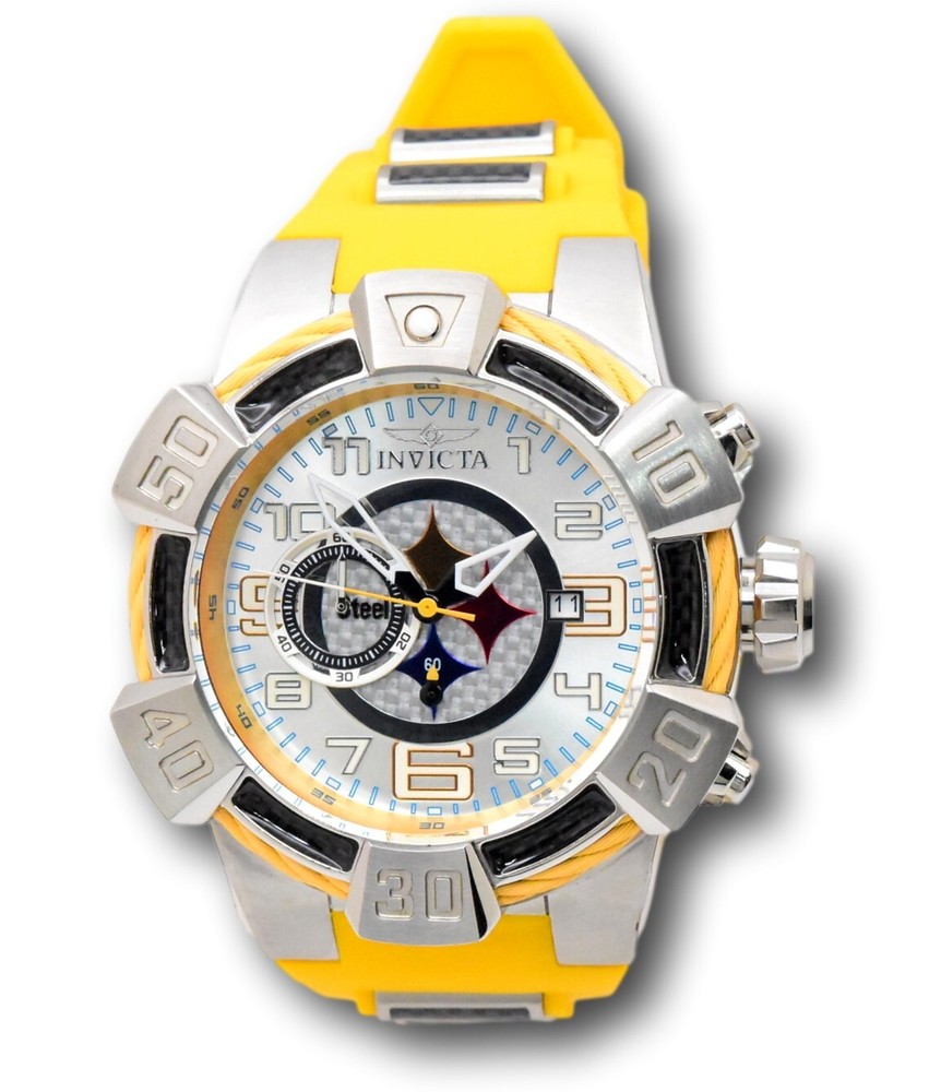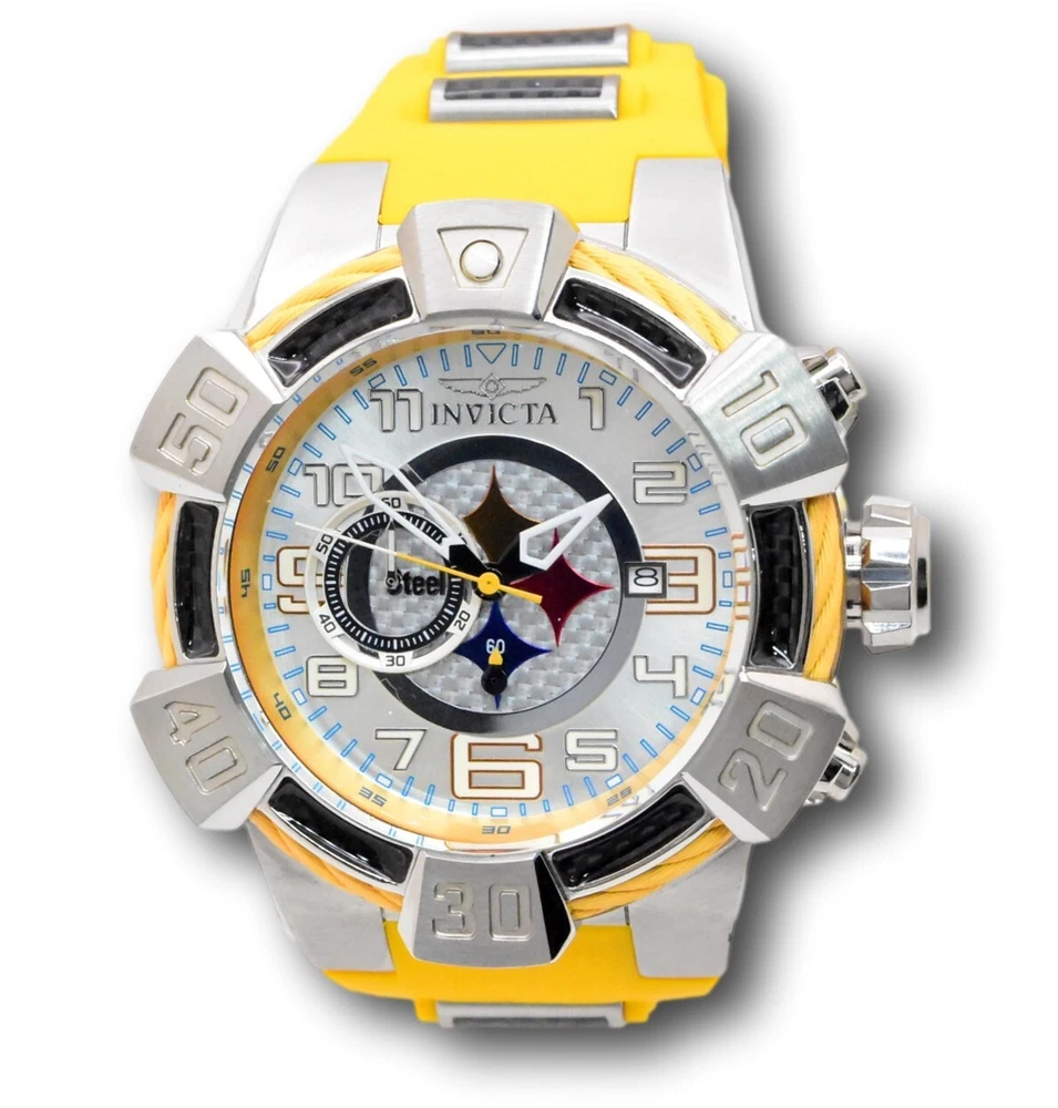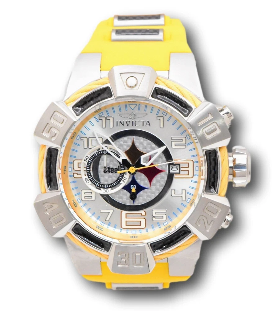 This Invicta Steelers watch is a must-have for any fan! The sleek carbon fiber design looks sharp, and the luminous hands make it easy to read. The Japanese quartz movement keeps perfect time, and the silicone band is super comfortable. Love the bold team colors and the limited-edition style—feels exclusive. Water-resistant and durable, it’s perfect for game day or everyday wear. Comes with tags, box, and warranty, so you know it’s legit. A great blend of sporty and stylish!