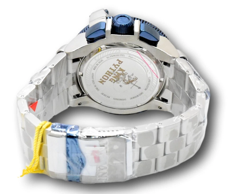 New - With Tags New and Unworn - Guaranteed Authentic - Includes Yellow Invicta box and Warranty Card 100% Functional - This listing includes pictures of the actual watches for sale This is a Limited Edition King Python watch - features Z60 Swiss Chronograph movement with day and date functions. Luminous hands and hour markers - screw down crown for 200M water resistance - rotating bezel - Case Size: 50mm or about 60 mm wide including the crown Thickness: 20.5mm Weight: about 13.7 ounces Items included: Yellow Invicta box and Warranty Card Max wrist size: 8.20 Inches Case and Dial Case Size: 50.0mm Case Material: Stainless Steel Bezel Material: Stainless Steel Bezel Color: Steel, Dark Blue Crown Type: Screw Down Crystal Type: Flame Fusion Dial Material: Metal Movement Components: Swiss Caliber: Z60 Function Type: Quartz Water Resistance Water Resistance: 200m Band Material: Stainless Steel Tone: Steel, Dark Blue Length: 210mm Size: 33.50mm Top Selling Disney Super Hero Star Wars New in Stcok TechnoMarine Contact Us Invicta Reserve King Python Men's 50mm Limited Silver Swiss Chrono Watch 46245 New - With Tags New and Unworn - Guaranteed Authentic - Includes Yellow Invicta box and Warranty Card 100% Functional - This listing includes pictures of the actual watches for sale This is a Limited Edition King Python watch - features Z60 Swiss Chronograph movement with day and date functions. Luminous hands and hour markers - screw down crown for 200M water resistance - rotating bezel - Case Size: 50mm or about 60 mm wide including the crown Thickness: 20.5mm Weight: about 13.7 ounces Items included: Yellow Invicta box and Warranty Card Max wrist size: 8.20 Inches Case and Dial Case Size: 50.0mm Case Material: Stainless Steel Bezel Material: Stainless Steel Bezel Color: Steel, Dark Blue Crown Type: Screw Down Crystal Type: Flame Fusion Dial Material: Metal Movement Components: Swiss Caliber: Z60 Function Type: Quartz Water Resistance Water Resistance: 200m Band Material: Stainless Steel Tone: Steel, Dark Blue Length: 210mm Size: 33.50mm This item includes a 100% Money-Back Guarantee! If you're not completely satisfied with your purchase, just send it back in the same condition within 60 days and we will refund the full purchase price of the item. We'll even cover the return shipping! (Only applies to USA orders). Please Note: We do not cover water damage for watches. We do not test or verify manufacturer's water resistance claims. Please use your watch in water at your own risk. To receive free return shipping: Next to this item in your ebay purchase history, click on "Return this item." Please choose "Changed-mind" as the reason for the return. This will allow you to print a pre-paid return shipping label. - Klawk Watches - We have been in business for over 8 years, with more than 25,000 customers from around the world. We specialize in Invicta watches and have many models that can't be found anywhere else. We have some of the lowest prices - and you won't find better customer service. We try to provide the best customer service possible. We hand-inspect each watch and test them to make sure they are completely functional before shipping them out. We also include a no-hassle 60-day warranty on all of our watches (this warranty only covers defects in the watch movement). Our 60-day warranty does not cover any damage from water or moisture. Neither Klawkwatches nor any manufacturer covers water damage under warranty. Use your watch in water at your own risk. We're happy to help! If you have any questions, Please let us know and we will get back to you within 24 hours. Shipping Returns Shipping Shipping Returns Shipping Orders are shipped daily. We generally ship items within 24 hours of receiving payment. We offer standard, Prioirty, and overnight shipping services. You can upgrade your shipping speed at checkout for the difference in shipping costs. Unless a shipping upgrade is purchased, items will generally ship as a First Class Package, the normal arrival time is 3-5 business days starting the day after the item is shipped. We do all of our international shipping through the eBay global shipping program. We ship the item to the eBay global shipping center and they will ship the item to you. eBay determines the international shipping costs and import fees for the item based on the item weight and your location. International shipments can take between 2-4 weeks to arrive depending on your location. Shipping Returns Returns Shipping Returns Returns If you're not completely satisfied with your purchase, you are welcome to return it within 60 days for a full refund. We will generally cover the return shipping costs if you are not satisfied with your purchase. Next to the item in your purchase history, you can click on "More Options" and "Return this item". This will allow you to print a pre-paid return shipping label. For international orders and returns, please contact us to make return arrangements.