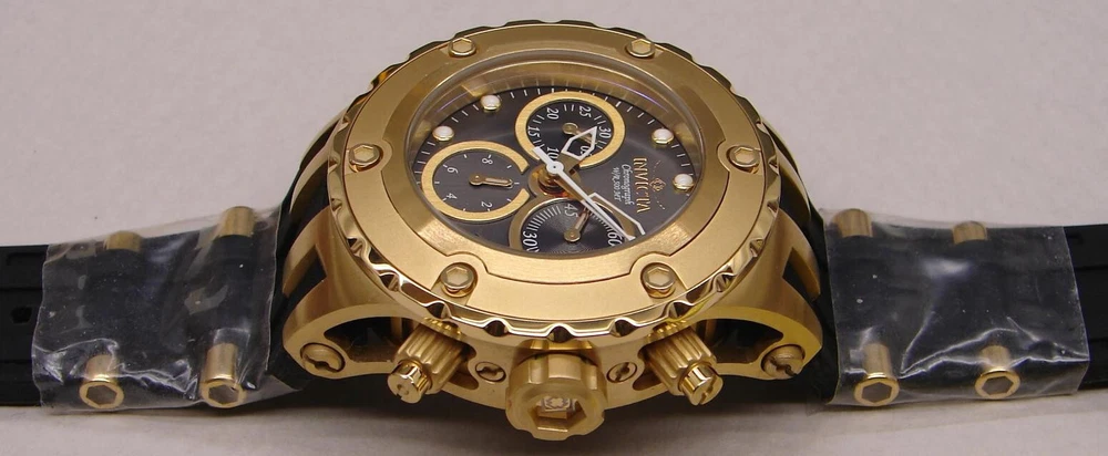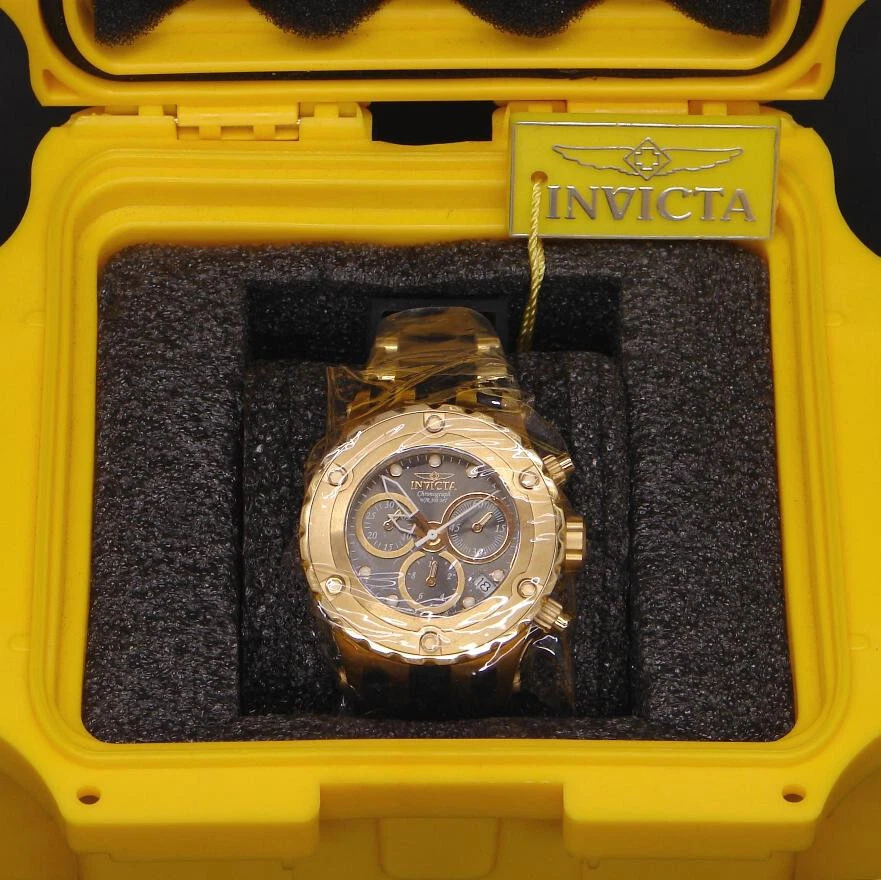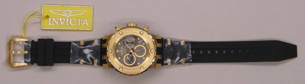 This is an unworn INVICTA SUBAQUA model 16087 Watch with Swiss Parts Ronda 5040.D Quartz movement. This is part of an Invicta collection I bought a couple years ago. Like many others in that collection, it was never worn - still had plastic film on front, back, and metal parts of band. Of course, over years of storage, the battery was dead, so I installed a new one (4/21/23; STILL RUNNING in 2024). The watch is running great since then. (By the way, although I neglected to do so after changing the battery until after taking the pictures, I have since reset all the chronograph hands to zero.) Another casualty of time was the polyurethane strap; it had hardened and broken into several pieces. I only recently was able to find a NEW Authentic OEM replacement, exactly like the original. I received and installed it on 5/18/23! So it is fresh and flexible, good to go! NOTE: Although produced as a Lady's watch, it is also suitable for men who aren't into wearing a clock on their arm, or whose wrist size is better served by a 40mm case size. Being such a man myself, the Invicta I wear is this size... This watch features: Stainless Steel Gold Tone Case and Bezel Gray Metal Dial with Sunray finish Date Indicator Water Resistant Luminous Hands and Markers Solid, Screw-On Back Mineral Crystal Push Crown 3 Subdials: Small Second Hand; Tenths of Second Hand and 30 Minute Hand for Chronograph Large Second Hand is for Chronograph New OEM Black Polyurethane Band with Gold Buckle and Accents Comes in a Yellow Invicta Dive Case It is marked on the back: "INVICTA SUBAQUA BEST UNDER PRESSURE SWISS PARTS MOVEMENT CHRONOGRAPH W/R 500 MT MODEL NO. 16087 ALL STAINLESS STEEL FLAME-FUSION CRYSTAL" NOTE: This item will be shipped Safely Packaged and Fully Insured. Please keep checking Saler's other items for MORE of the Neat & Unique! Be sure to add me to your favorites list ! Sign up for my email newsletters by adding my eBay Store to your Favorites Additional Keywords: Wristwatch, Ladies, Unisex, timepieces, collectible