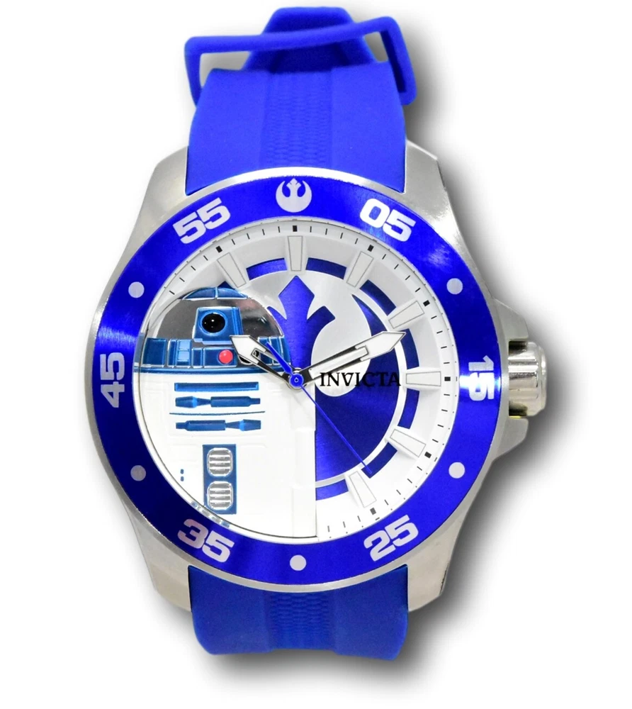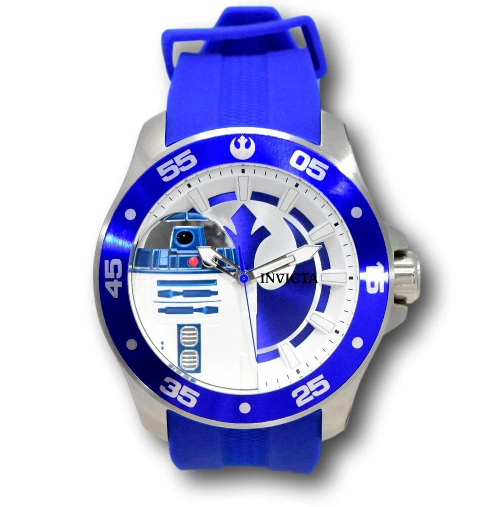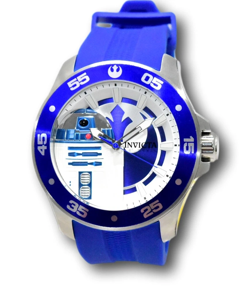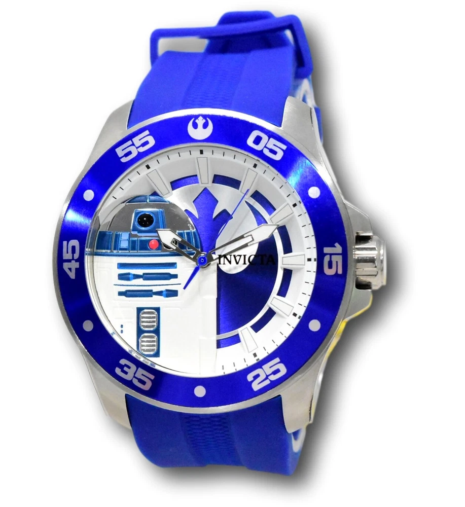 New - With Tags New and Unworn - Guaranteed Authentic - Includes Yellow Invicta Box and Warranty Card 100% Functional - This listing includes pictures of the actual watches for sale - Limited Edition out of 1977 Features Japanese quartz movement - luminous hands and hour markers - fixed bezel, 100M water resistance, limited edition Case size : about 48mm wide or about 55 mm wide including the crown Thickness: 15 mm Weight: 5.5 ounces Items included: Includes Yellow Invicta Box and Warranty Card Max wrist size: 8.75 Inches Case and Dial Case Size: 50mm Case Material: Stainless Steel Bezel Material: Stainless Steel Bezel Color: Blue, Silver, White Crown Type: Push Crystal Type: Flame Fusion Dial Material: Metal Movement Caliber: PC21 Function Type: Quartz Water Resistance Water Resistance: 100m Band Material: Silicone Tone: Blue Length: 210mm Size: 26mm Top Selling Disney Super Hero Star Wars New in Stcok TechnoMarine Contact Us Invicta Star Wars R2-D2 Men's 50mm Limited Edition Silicone Quartz Watch 43059 New - With Tags New and Unworn - Guaranteed Authentic - Includes Yellow Invicta Box and Warranty Card 100% Functional - This listing includes pictures of the actual watches for sale - Limited Edition out of 1977 Features Japanese quartz movement - luminous hands and hour markers - fixed bezel, 100M water resistance, limited edition Case size : about 48mm wide or about 55 mm wide including the crown Thickness: 15 mm Weight: 5.5 ounces Items included: Includes Yellow Invicta Box and Warranty Card Max wrist size: 8.75 Inches Case and Dial Case Size: 50mm Case Material: Stainless Steel Bezel Material: Stainless Steel Bezel Color: Blue, Silver, White Crown Type: Push Crystal Type: Flame Fusion Dial Material: Metal Movement Caliber: PC21 Function Type: Quartz Water Resistance Water Resistance: 100m Band Material: Silicone Tone: Blue Length: 210mm Size: 26mm This item includes a 100% Money-Back Guarantee! If you're not completely satisfied with your purchase, just send it back in the same condition within 60 days and we will refund the full purchase price of the item. We'll even cover the return shipping! (Only applies to USA orders). Please Note: We do not cover water damage for watches. We do not test or verify manufacturer's water resistance claims. Please use your watch in water at your own risk. To receive free return shipping: Next to this item in your ebay purchase history, click on "Return this item." Please choose "Changed-mind" as the reason for the return. This will allow you to print a pre-paid return shipping label. - Klawk Watches - We have been in business for over 8 years, with more than 25,000 customers from around the world. We specialize in Invicta watches and have many models that can't be found anywhere else. We have some of the lowest prices - and you won't find better customer service. We try to provide the best customer service possible. We hand-inspect each watch and test them to make sure they are completely functional before shipping them out. We also include a no-hassle 60-day warranty on all of our watches (this warranty only covers defects in the watch movement). Our 60-day warranty does not cover any damage from water or moisture. Neither Klawkwatches nor any manufacturer covers water damage under warranty. Use your watch in water at your own risk. We're happy to help! If you have any questions, Please let us know and we will get back to you within 24 hours. Shipping Returns Shipping Shipping Returns Shipping Orders are shipped daily. We generally ship items within 24 hours of receiving payment. We offer standard, Prioirty, and overnight shipping services. You can upgrade your shipping speed at checkout for the difference in shipping costs. Unless a shipping upgrade is purchased, items will generally ship as a First Class Package, the normal arrival time is 3-5 business days starting the day after the item is shipped. We do all of our international shipping through the eBay global shipping program. We ship the item to the eBay global shipping center and they will ship the item to you. eBay determines the international shipping costs and import fees for the item based on the item weight and your location. International shipments can take between 2-4 weeks to arrive depending on your location. Shipping Returns Returns Shipping Returns Returns If you're not completely satisfied with your purchase, you are welcome to return it within 60 days for a full refund. We will generally cover the return shipping costs if you are not satisfied with your purchase. Next to the item in your purchase history, you can click on "More Options" and "Return this item". This will allow you to print a pre-paid return shipping label. For international orders and returns, please contact us to make return arrangements.