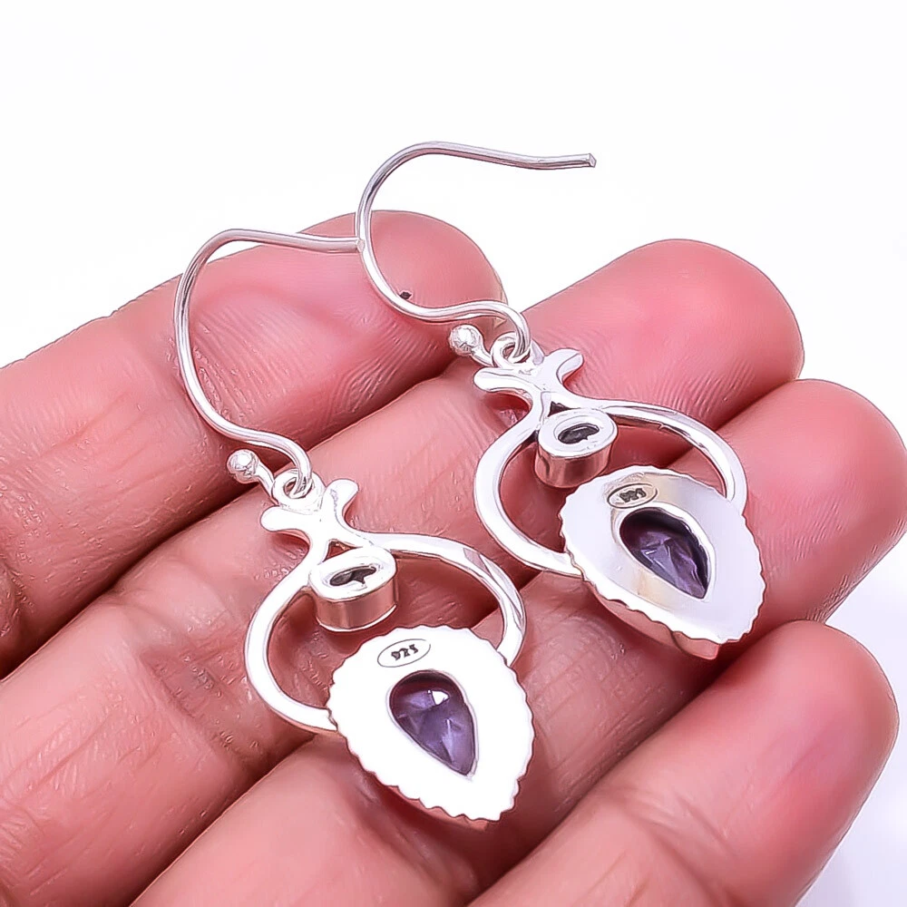 Theme Beauty Main Stone Depth As Seen in Picture Main Stone Length As Seen in Picture Main Stone Width As Seen in Picture Seller Warranty Yes Shape As Seen in Picture SKU E_9437_239_14 Main Stone Size 12X8Mm Antique Yes Handmade Yes Type Earring Style Drop/Dangle Metal Sterling Silver Metal Purity 925 Parts Per 1000 Base Metal Sterling Silver Total Carat Weight 26.5 Main Stone Iolite Main Stone Creation Lab-Created Main Stone Shape Pear Main Stone Color Purple Main Stone Treatment Lab-Created Material Gemstone, Stone Number of Gemstones 4 Item Length 1.72 Features Engraved, Nickel-Free, Handcrafted Ear Area Lobe Brand Unbranded Country/Region of Manufacture India Country of Origin United States Color As Seen in Picture Diamond Clarity Grade Not Applicable Number of Diamonds As Seen in Picture Item Diameter As Seen in Picture Gemstone Clarity Grade Translucent Diamond Color Grade Not Applicable Customized No Colored Diamond Intensity Not Applicable Certification 100% Genuine Guaranteed Setting Style Bezel Occasion Christmas, Birthday, Anniversary, Engagement, Wedding, Valen Shipping & Handling - Charge - 1st item-5.90 And Additional item-1.90 Handling Time - 1 Days . Delivery Time - 2 TO 3 DAYS. Shipping Service - USPS First Class Package 2 -3 Days. Returns - 1.We offer a 100% Money Back Guarantee minus shipping for 30 days after receiving the Item / item's. 2..The item must not be altered or damaged in any way shape or form. 3.Upon receiving these items your payment will be refunded. 4.Email us for return instructions before sending merchandise back. 5.Please allow up to 1 business day for all returns to receive credit. 6.Sizing does not affect the return policy. Payment - We accept PayPal for Payment ,should made with in 14 days once buying or winning done , in case of late information expected .