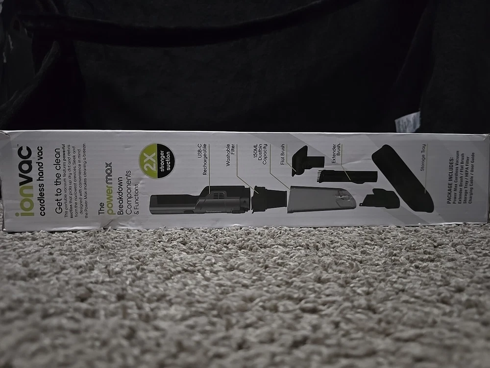 IonVac PowerMax Vacuum, 5V Cordless Handheld w/USB Charging&Multiple Attachments. Shipped with USPS Ground Advantage.