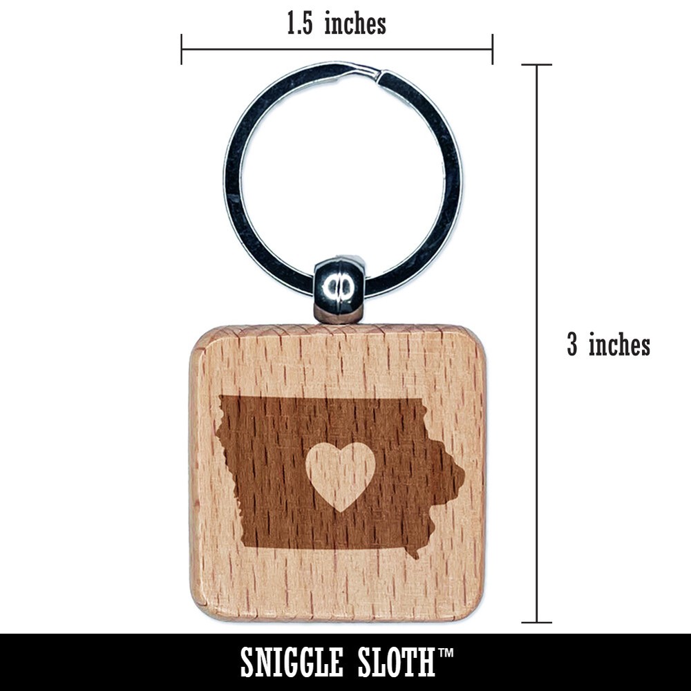 Iowa State Wooden Heart Keychain Charm with Engraved Detail