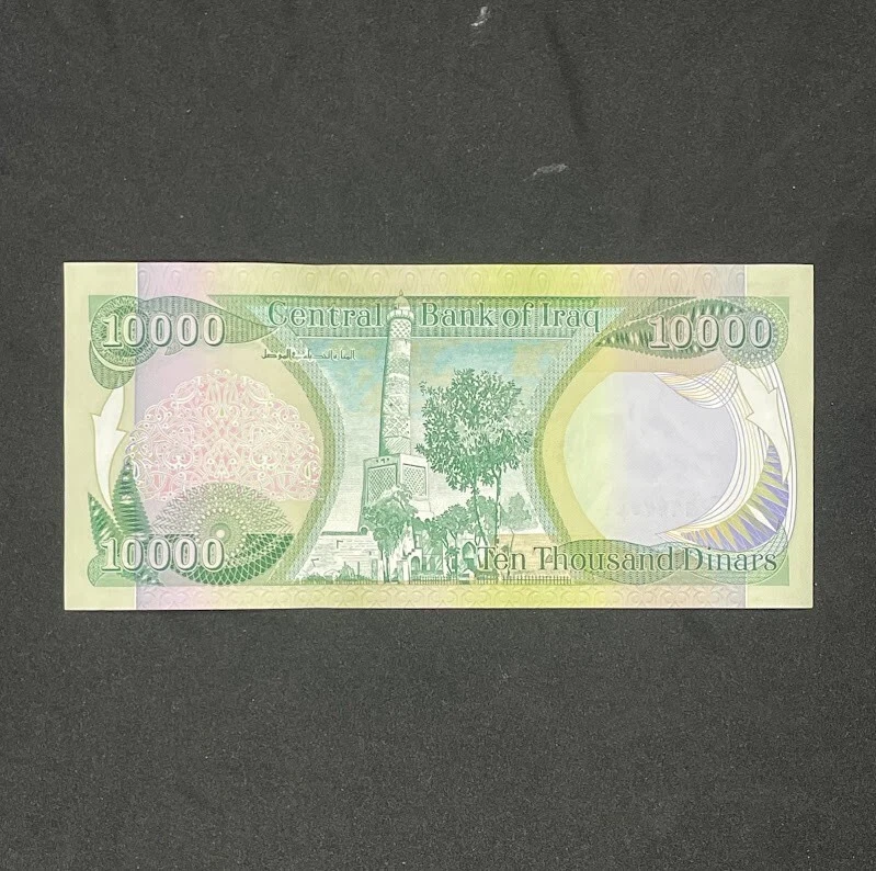 Iraq 10,000 Dinar 2006 UNC Banknote (post-Saddam Iraqi Currency Note) Specifications: Type: Banknotes Year: 2006 Country: Iraq Region: Middle East Condition: Uncirculated (UNC) Denomination: 10,000 IQD Quantity: 1 Note Description: This listing is for one (1) authentic, uncirculated 10,000 IQD Iraqi dinar uncirculated 2006 (post-Saddam era) banknote . The dinar is the official currency of Iraq. This note comes with a certificate of authenticity and has been UV verified as authentic. Shipping Information: Usually ships within one business day from Louisiana, USA. US Domestic Shipping: - USPS First Class Mail - USPS Priority Mail - USPS Express Mail International Shipping: - USPS First Class International - USPS Priority Mail International - DHL Express Envelope