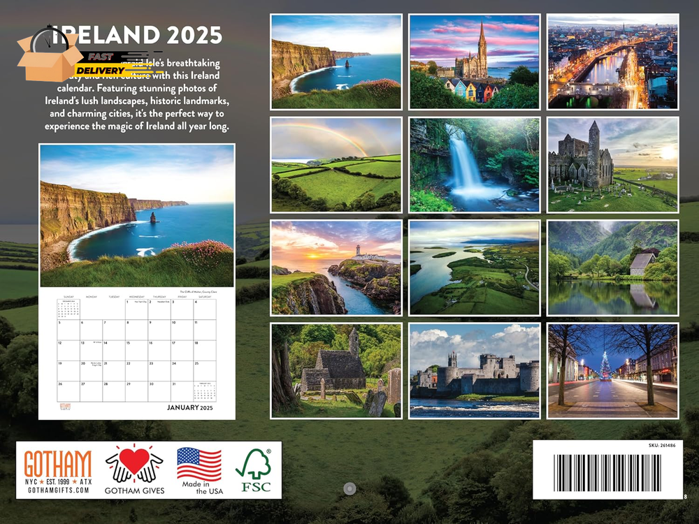 Store New Arrivals Add to Favorite View Feedback Contact Ireland Calendar 2025 Irish Gifts Monthly Wall Calender 12 Month | American Made in the USA Description Item model number 896329 Style 2025 World Travel Color INTL - Ireland Material Paper Material Type Paper Manufacturer Part Number 896329 Item Weight 6.7 ounces Theme Landscapes Year 2025 Shape Rectangular Product Dimensions 12"W x 18"H American Made In The USA - Reduce your carbon footprint when you buy this OFFICIALLY LICENSED Premium Calendar that only use FSC certified paper. Locally printed premium calendars are a better environmental option than mass-produced calendars which are usually printed overseas and imported. Includes an upgraded thick glossy cover, special uncoated paper on the inside so interior pages are easy to write on for daily planning and reinforced stapled edges for added durability. Ready To Hang - This stylish wall calendar features a standard Sunday-to-Saturday monthly planner grid, making it easy to stay organized throughout the year. With a clear full-month view, its perfect for planning appointments, keeping track of key dates, or simply enjoying as a piece of wall art. Its spacious layout provides plenty of room for notes, while its large size ensures it stands out and keeps you ahead of your schedule. Beautiful Images and Great Gift - The Gotham Gifts line features stunning imagery paired with functional design, including great-sized date blocks for notes, sturdy paper quality, and an eclectic photo collection thats both practical and visually captivating. HD Format Our sleek rectangular wall calendars offer a modern, immersive design that aligns with natural human vision, providing more room for vibrant imagery, storytelling, and seamless organization compared to outdated square formats. Embark on a year-long journey from the comfort of your home with our 2025 Scenic Wall Calendars. Each month, unveil a stunning location that beckons you to wanderlust. From the serene embrace of secluded beaches to the majestic allure of national parks, these high-quality photo calendars bring the world to your wall. Whether youre planning your next getaway with a travel calendar or seeking a daily escape with a tropical calendar for 2025, our collection is your window to the world Ireland Calendar 2025 Irish Gifts Monthly Wall Calender 12 Month | American Made In The USA ABOUT US We offer the best prices around on high quality products. Our E-store includes media such as books, movies, music and games while offering electronics, toys, sporting apparel, clothing, tools, general home, garden items and more. SHIPPING We are always working hard to ensure your package arrives as soon as possible. Please understand that some factors like weather, high postal traffic, and the performance of shipping companies are outside of our control. We offer free shipping to the lower 48 states and ship within 2 business days of payment, usually sooner. We do not accept P.O. Boxes. Please provide a physical address. For shipping outside of the continental USA, we only use eBay's Global Shipping Program.The item is shipped to KY and then sent to the rest of the world. International customers are responsible for all duties and taxes. Continue to check out in order to calculate costs for shipping the item to your country. Messages regarding eBay's Global Shipping Program MUST be directed at eBay EXCLUSIVELY. RETURNS We offer a 30-Day Return Policy on items which you are not completely satisfied with. You have the option for a full-refund or an exchange of the item. No returns are available on items shipped outside of the USA. PAYMENT We accept PayPal. CONTACT US This page content is yet to come Please ad us to your favorite seller and visit again later Thank You CUSTOMER SATISFACTION We try our very best to make sure every customer is completely satisfied. If there's a problem, message us! We're happy to help. WE ACCEPT Copyright © 2021 AutoDS. | All Rights Reserved