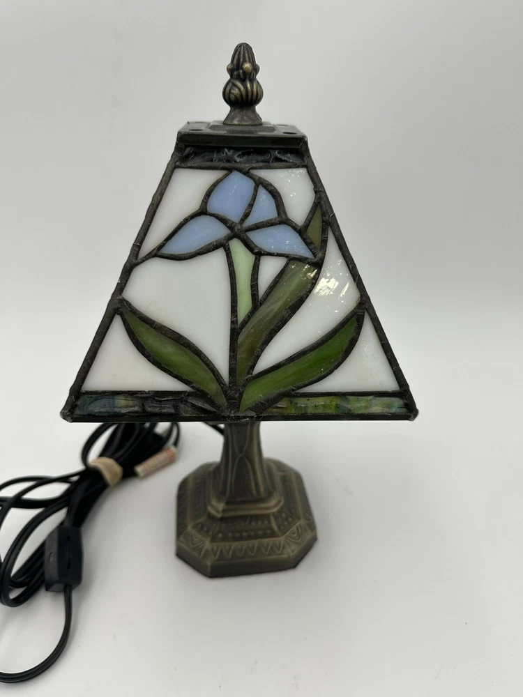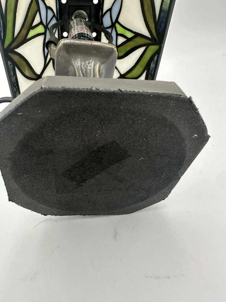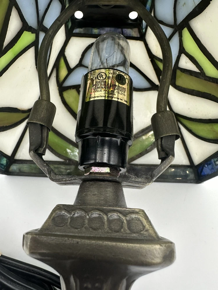 Made by Tiffanyfactory.com Excellent condition Features: Base Finish: Antique Brass Material: Metal Socket: ONOFF Number of Bulbs: 1 Wattage: 25W Switch: Inline Specifications: Overall Product Dimension: 11"H x 6"W x 6"D Product Weight: 2 lbs