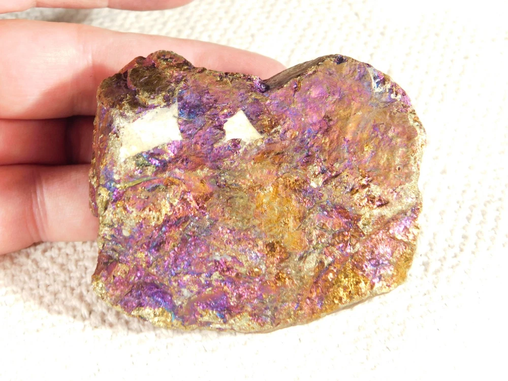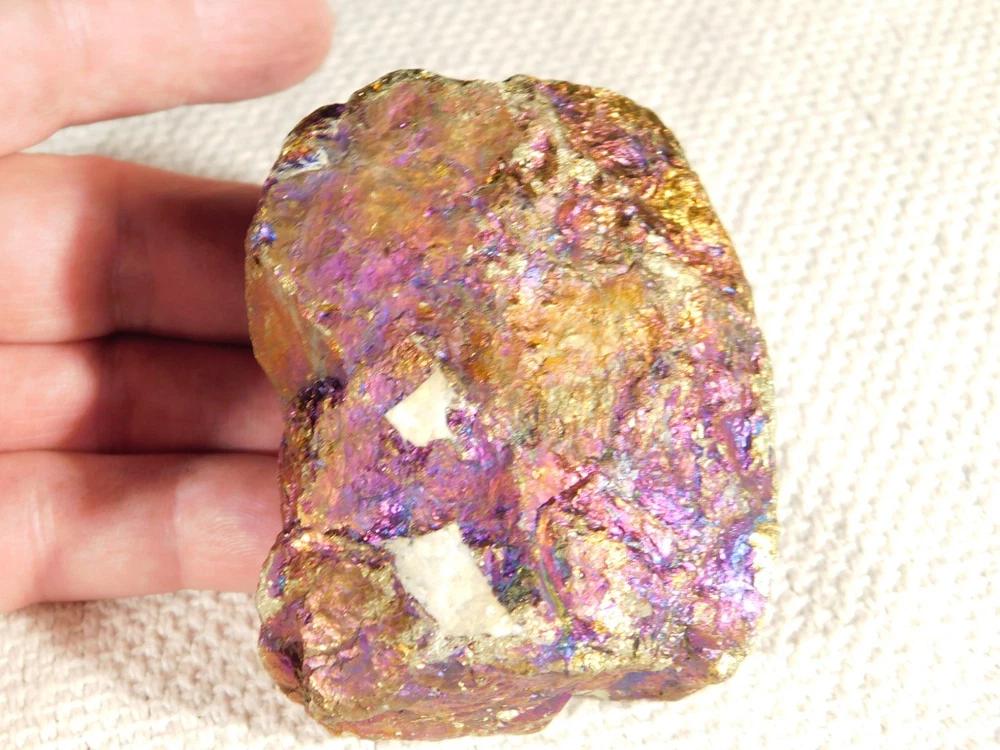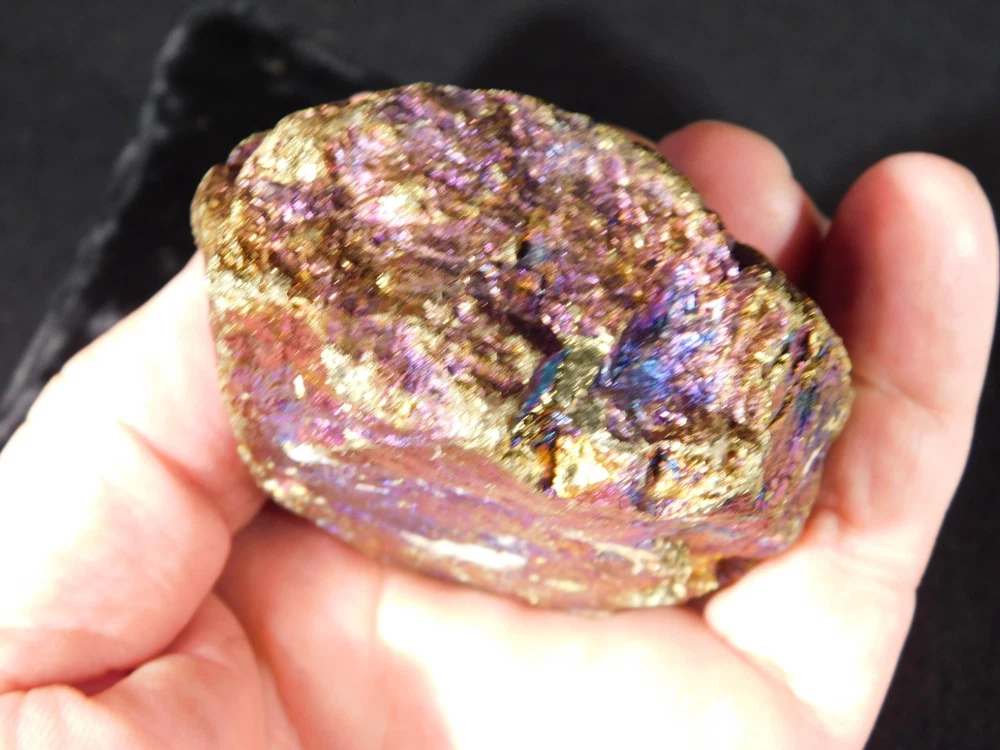 Hello, here is a natural and very colorful Bornite, Chalcopyrite, Peacock Ore or Peacock copper with IRIDESCENT Blue, Copper, Teal, Green, Gold, Silver and or Purple colors from Mexico! Bornite tarnishes to various iridescent shades of green, blue to purple in places. Its striking iridescence gives it the nickname peacock copper or peacock ore...neat! The overall piece measures around 3" or 7.45cm at its biggest or from opposing side to side. INTERNATIONAL BUYERS PLEASE NOTE : Import duties and taxes are not included in the price of the item or the shipping charges. These are the buyers responsibility. If you are concerned about them, please check with your country's customs office before purchasing. RETURN POLICY We guarantee you will be satisfied with your item or we'll refund your purchase price, less shipping charge, upon safe return of the item in original condition within 14 days. Prior to returning the item, please contact within 48 hours of receiving item. Buyer is responsible for all return shipping charges.