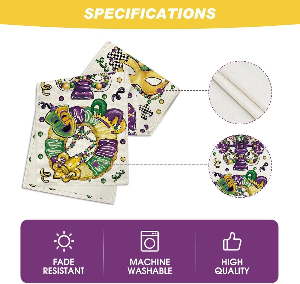 Store New Arrivals Add to Favorite View Feedback Contact Fast deliveries to the customer's home Quality customer service John Make the customers happy! Irises Beads Mask Doughnut Hat Mardi Gras Table Runner, Carnival Kitchen Dining Table Decoration for Home Party Decor 13X72 Inch Description Polyester Imported High Quality & Durable : Made of 100% spun polyester, sturdy sewing, soft and durable, protecting your table's surface from hot pans, scratches, and spills Bright Home Decor : Add flair to your home decor with Artoid Mode colorful table runners. Perfect for kitchen dining daily use themed party decoration, holiday and special events celebration Fits Table Size : This table runner is 13 x 72 inch, appropriate for a table that can seat 4-6 people, better match your table and give you a delightful dining experience Easy to Clean : Machine wash and lay the table runner flat to dry. Stays the same and as new after every wash. Material: 100% Polyester, no shrink, no fading. Imported, Country of origin: China Designed with You in Mind : Artoid Mode table runners are designed by professionals. Vibrant color and unique pattern print offers you creative and unique idea to decorate home Product Description The video showcases the product in use. The video guides you through product setup. The video compares multiple products. The video shows the product being unpacked. Happy Mardi Gras! Add to Cart Add to Cart Add to Cart Add to Cart Add to Cart Add to Cart Customer Reviews 4.7 out of 5 stars 322 4.7 out of 5 stars 54 4.5 out of 5 stars 44 5.0 out of 5 stars 3 4.7 out of 5 stars 22 4.5 out of 5 stars 44 5.0 out of 5 stars 3 Price $8.99 $ 8 . 99 $9.99 $ 9 . 99 $9.99 $ 9 . 99 $11.99 $ 11 . 99 $9.99 $ 9 . 99 $9.99 $ 9 . 99 $9.99 $ 9 . 99 Material Polyester Polyester Polyester Polyester Polyester Polyester Polyester Dimensions 13 x 36/48/60/72/90/108/120“ 13 x 36/48/60/72/90/108/120“ 13 x 36/48/60/72/90/108/120“ 13 x 36/48/60/72/90/108/120“ 13 x 36/48/60/72/90/108/120“ 13 x 36/48/60/72/90/108/120“ 13 x 36/48/60/72/90/108/120“ Pieces of Set 1 1 1 1 1 1 1 Machine Washable ✔ ✔ ✔ ✔ ✔ ✔ ✔ Theme Mardi Gras Mardi Gras Mardi Gras Mardi Gras Mardi Gras Mardi Gras Mardi Gras Item model number TableRunner Batteries required No Product Dimensions 72 x 13 x 0.1 inches Care instructions Machine Wash Country of Origin China Item Weight 3.84 ounces Color Beige Import Imported Number of pieces 1 Fabric Type Polyester Size 13" x 72", Table Runner ABOUT US We offer the best prices around on high quality products. Our E-store includes media such as books, movies, music and games while offering electronics, toys, sporting apparel, clothing, tools, general home, garden items and more. SHIPPING We are always working hard to ensure your package arrives as soon as possible. Please understand that some factors like weather, high postal traffic, and the performance of shipping companies are outside of our control. We offer free shipping to the lower 48 states and ship within 2 business days of payment, usually sooner. We do not accept P.O. Boxes. Please provide a physical address. For shipping outside of the continental USA, we only use eBay's Global Shipping Program. The item is shipped to KY and then sent to the rest of the world. International customers are responsible for all duties and taxes. Continue to 'check out' to calculate costs for shipping the item to your country. Messages regarding eBay's Global Shipping Program MUST be directed at eBay EXCLUSIVELY. RETURNS We offer a 30-Day Return Policy on items in which you are not completely satisfied with. You have the option of a full-refund or an exchange of the item. No returns are available on items shipped outside of the USA PAYMENT We accept PayPal. CONTACT US This page content is yet to come Please ad us to your favorite seller and visit again later Thank You CUSTOMER SATISFACTION We try our very best to make sure every customer is completely satisfied. If there's a problem, message us! We're happy to help. WE ACCEPT