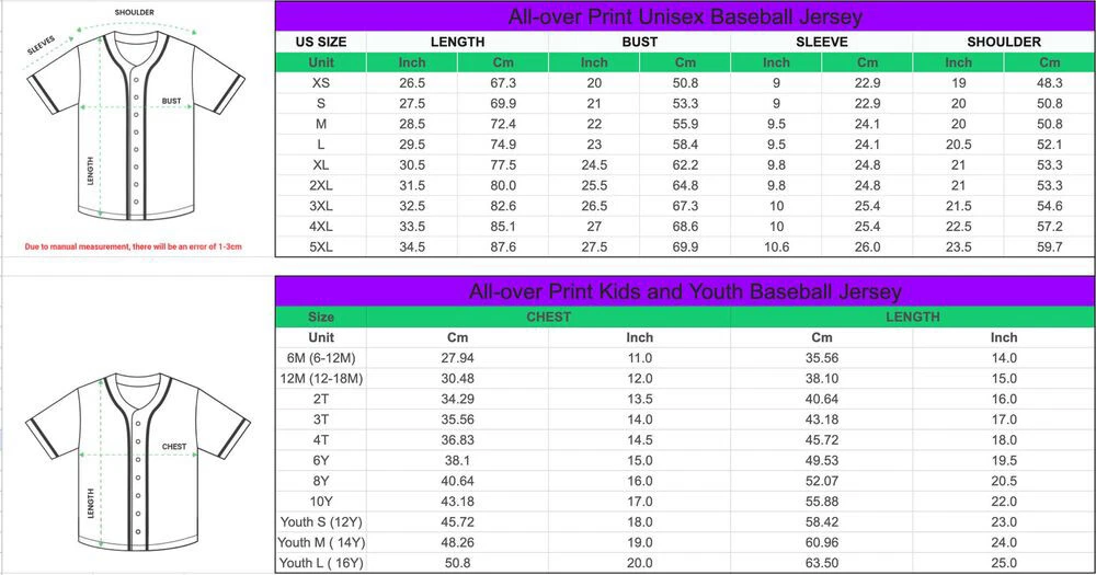 DESCRIPTION 100% Bird's Eye Pique Fabric, offers outstanding durability, insulation, and wrinkle resistance. Machine wash in cold with similar colors/no bleach/low iron. Breathable, durable, and easy to care for, polyester is the ideal material for athletes everywhere. Moisture-wicking. Full Button Down Closure. Comfortable Soft Feel. Great for groups: school uniforms, baseball team, easy to customize. The color could be slightly different between on the screen and in practice. Due to the difference between different monitors, the divicture may not reflect the actual color of the item. Compare the detail sizes with yours, please allow 1-2 cm variations due to manual measurement. All products are made to order and quality checked before shipping. SHIPPING INFORMATION: Processing time: 2-6 business days. Delivered time: 4-7 business days. As a result of the epidemic, the shipping time may take 3-5 business days longer than expected. Note: WE DO NOT SHIP TO HI PR ALASKA PO.BOX We can't accept changing/refunding request if you just do not like this material. The letters are 3D printed. PLEASE CHECK OUR SIZE GUIDE CAREFULLY BEFORE PURCHASING OUR PRODUCT. WE WON'T ACCEPT CANCEL OR REFUND DUE TO WRONG SIZE ORDER. We greatly appreciate your POSITIVE feedback. Please do NOT leave negative feedback without asking for help. If you have any questions, please contact us at any time. Thanks for your visiting!