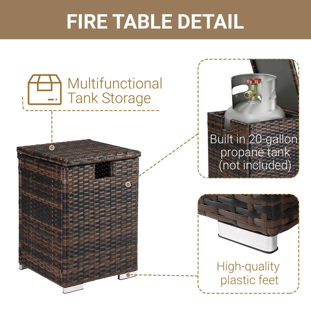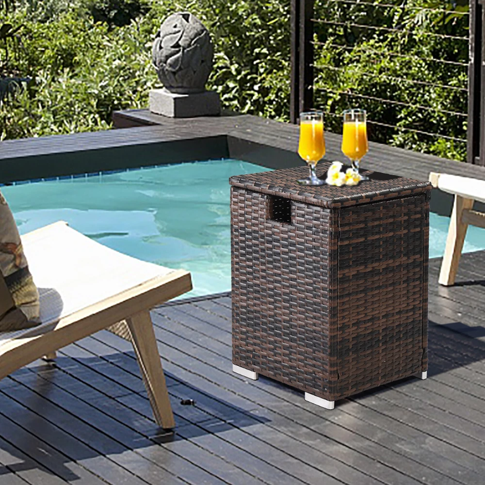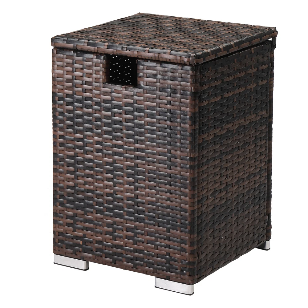 Iron Frame Gas Bottle Storage Rattan Side Table Brown Gradient 40x40x57cm