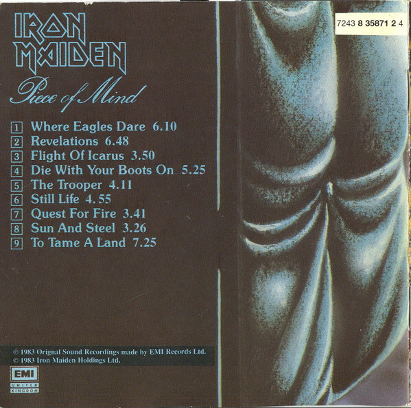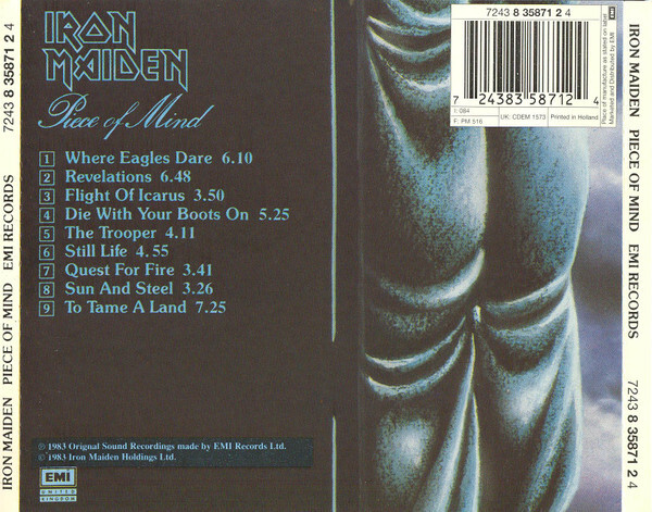 Welcome to Werkstraat Records. Bringing you rare and collectable music on Vinyl, CD & Cassette. We are a small company who care about the quality of our music and our customers. Most of our music sales are pieces that have been released over the last 40 years and have been played previously. Any questions ? just ask and we will be happy to help. Please read carefully below for exact details of the item for sale: Listing Title and Pictures are generic & AUTO generated. Please read the Item Specific details and Notes below for details regarding the condition of the actual item for sale in this listing. Please contact us first if you have any issues with your order before leaving feedback. We will always rectify problems when they occur. Shipping: Multi-purchase post discounts applied in your cart. 7-8 Vinyls sent for £4.95 UK only. Up to 20CDs sent for £4.95 UK only. All packages ship via 2nd Class recorded tracking service. NOTE: All images are stock and not of the actual item unless noted in the listing below. Details: Artist : Iron Maiden Title: Piece Of Mind Format: (CD, Album, RE + CD, Comp + Ltd) Item Specific details: 2CD Limited Edition. Original case with hype sticker. The odd light mark to the discs, paper tidy, nice copy. Media Condition : Very Good Plus (VG+) Sleeve Condition : Very Good Plus (VG+) Released : 1995 Label : EMI United Kingdom,EMI United Kingdom,EMI United Kingdom,EMI,EMI,EMI Catalog Number : 7243 8 35871 2 4, 8 35871 2, CDEM 1573 Location_ : Box 11.1 Barcode and Other Identifiers : Barcode 7 24383 58712 4 Barcode 724383587124 Label Code LC 0542 Price Code 084 Price Code PM 516 Rights Society MCPS Rights Society bel BIEM Other (7243 8 36039 2 3) Other (7243 8 36040 2 9) Matrix / Runout EMI 8360392 CDM01 1-1-3-NL Matrix / Runout EMI 8360402 CDM01 1-1-7 NL Matrix / Runout EMI 8360392 CDM01 1-1-3-NL Matrix / Runout EMI 8360402 CDM01 1-1-11 NL Matrix / Runout EMI 8360392 CDM01 1-1-10-NL Matrix / Runout EMI 8360402 CDM01 1-1-14 NL Matrix / Runout EMI 8360392 CDM01 1-1-4-NL Matrix / Runout EMI 8360402 CDM01 1-1-11 NL Matrix / Runout EMI 8360392 CDM01 1-1-6-NL Matrix / Runout EMI 8360402 CDM01 1-1-5 NL Matrix / Runout EMI 8360392 CDM01 1-1-1-NL Matrix / Runout EMI 8360402 CDM01 1-1-6-NL Matrix / Runout EMI 8360392 CDM01 1-1-8-NL Matrix / Runout EMI 8360402 CDM01 1-1-3-NL Mould SID Code to be confirmed Mould SID Code to be confirmed Mould SID Code to be confirmed Mould SID Code to be confirmed Mould SID Code ifpi 153E Mould SID Code ifpi 1533 Mould SID Code ifpi 151A Mould SID Code ifpi 150A Mould SID Code ifpi 1520 Mould SID Code ifpi 1537 Mould SID Code ifpi 1521 Mould SID Code ifpi 151B Mould SID Code ifpi 1531 Mould SID Code none Mould SID Code ifpi 150B Notes : Issued in a 2 CD (single width) jewel case with a grey hinged tray. Includes a 12-page booklet with lyrics, photos and credits. Some copies feature a hype sticker with the following text: "2 LIMITED EDITION PICTURE DISCS. ORIGINAL ALBUM PLUS BONUS CD MAIDCAT10". Tracks 1-1 to 1-9 originally released as UK album [r=1839842], 16 May 1983. Track 2-1 originally released as B side of UK single [r=1286258], 11 April 1983. Originally performed by [a=Montrose (2)] (from [m=213537]). Trac