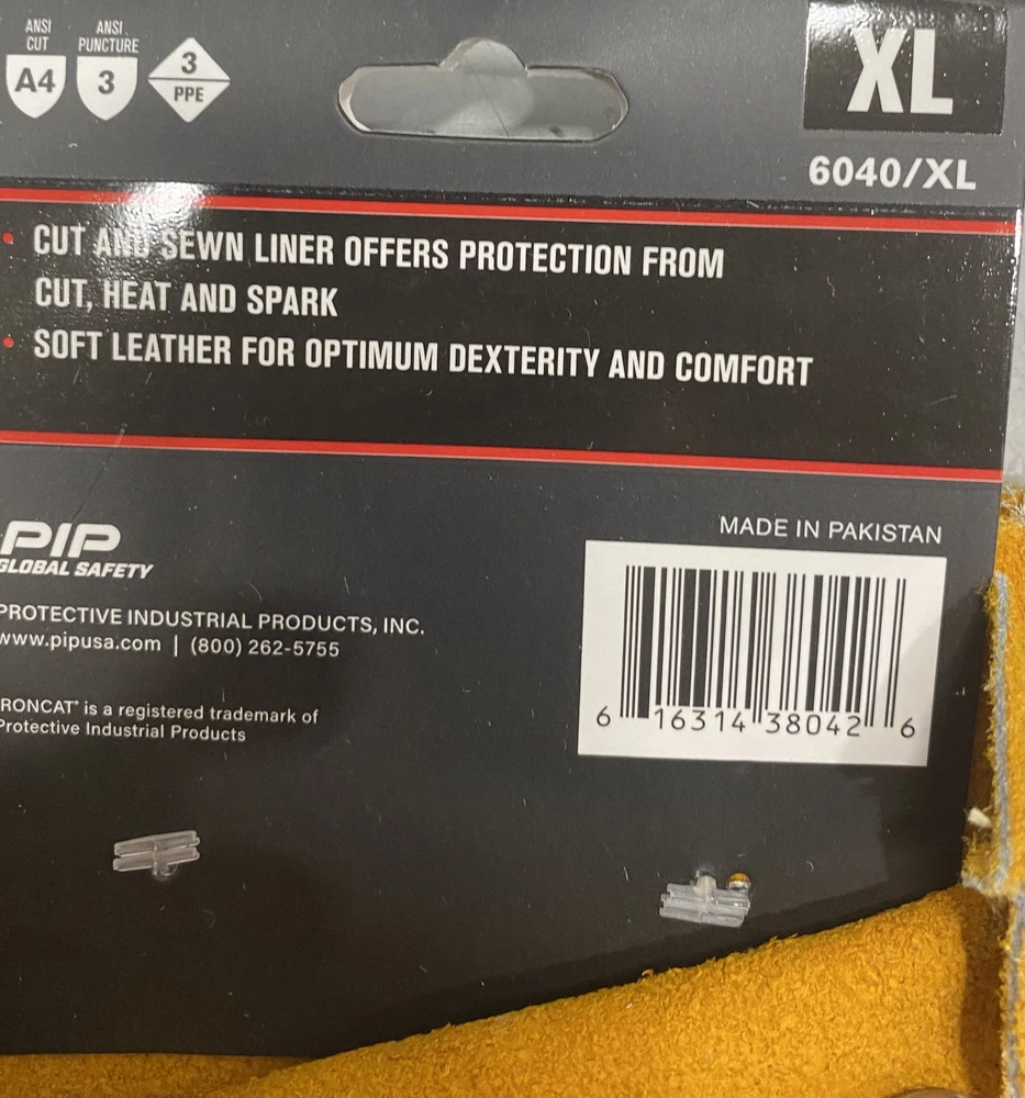 Material: Leather Glove Size: XL+ Seller Notes: “New other - Items Show General Wear From Previous Transit & Warehouse Storage.” MPN: 6040/XL Model: Ironcat Leather Cut Resistant Gloves Brand: Ironcat Country of Origin: Pakistan